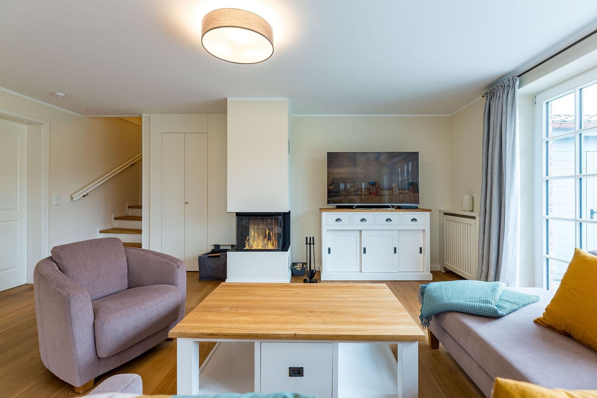 Wir begrüßen Sie in Ihrem Ferienhaus „Friesenblüte“. Die große und modern eingerichtete Haushälfte bietet ausreichend Platz für sechs Personen. Neben dem großen Schlafraum im zweiten Obergeschoss haben Sie auch eine eigene Sauna und im Erdgeschoss einen tollen Kamin. Im Sommer genießen Sie das Frühstück auf der Terrasse und in der dunklen Jahreszeit ist ein Feuer im Kamin genau das richtige um im Urlaub zu entspannen. Die Randlage in Wyk ist perfekt um mit wenigen Schritten in der Stadt oder auch an der Promenade und am Strand zu sein.