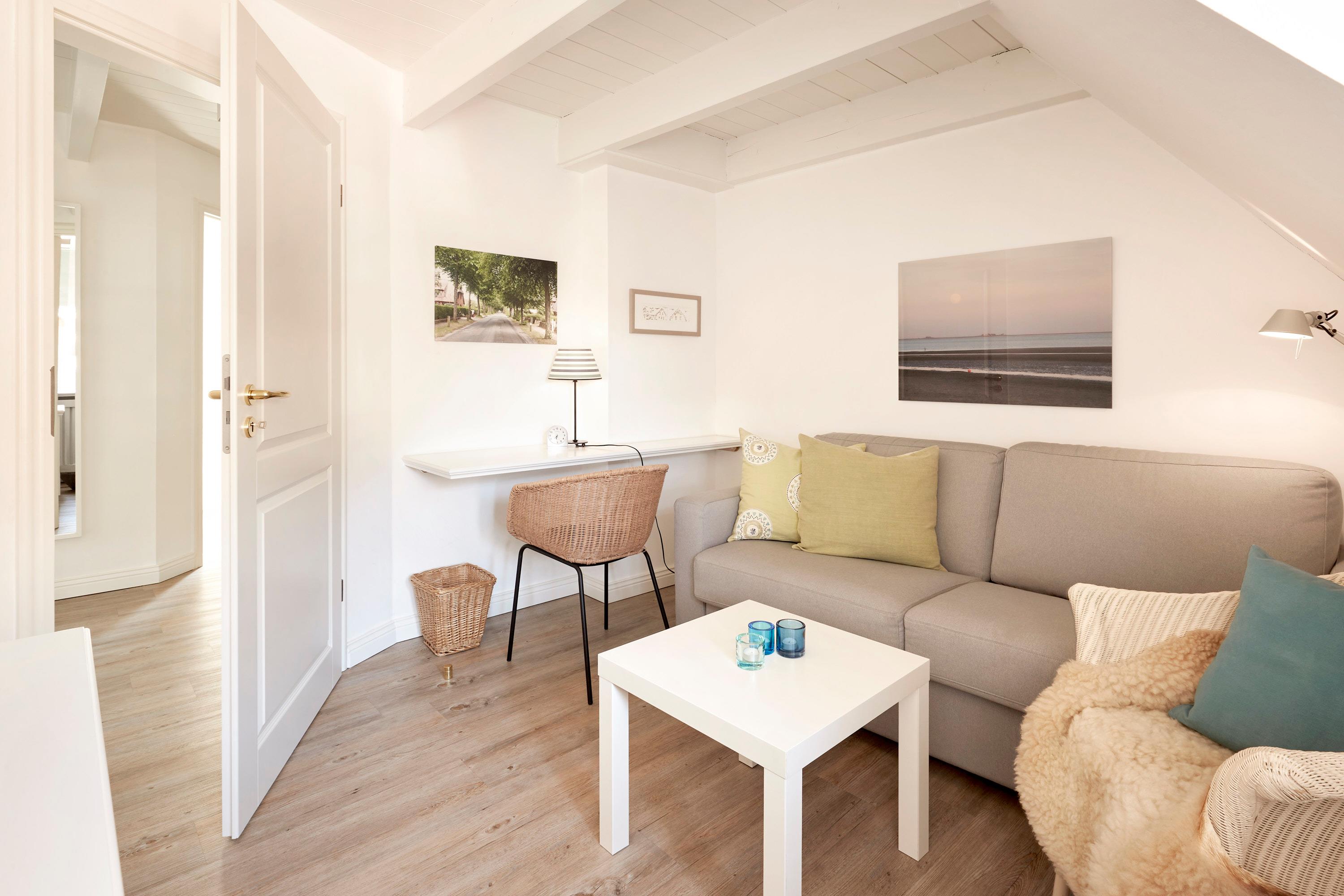 In sehr ruhiger Lage, aber unmittelbarer Nähe zum Wyker Südstrand und in direkter Nachbarschaft zu den Flächen des alten Golfplatzes auf dem Gelände des ehemaligen Kaiserhofes ist die „Residenz am alten Golfplatz“ entstanden. Mit nur wenigen.Schritten gelangen Sie zum Strand und zur Promenade, welche Sie ins Herz von Wyk führt. Die Innenstadt mit ihren Cafés, Restaurants und Einkaufsmöglichkeiten ist schnell und bequem zu erreichen. Das Doppelhaus ist mit einem traditionellen Friesenwall umgeben. Bei der Innenausstattung wurde an alles gedacht. Es gibt einen großzügigen Wohn- Essbereich mit Kaminofen im EG, ein zweites kleines Wohnzimmer im OG . Ein großer Garten, zwei Terrassenpätze und ein Strandkorb runden das Bild ab. Hier genießen Sie die schönsten Tage des Jahres.