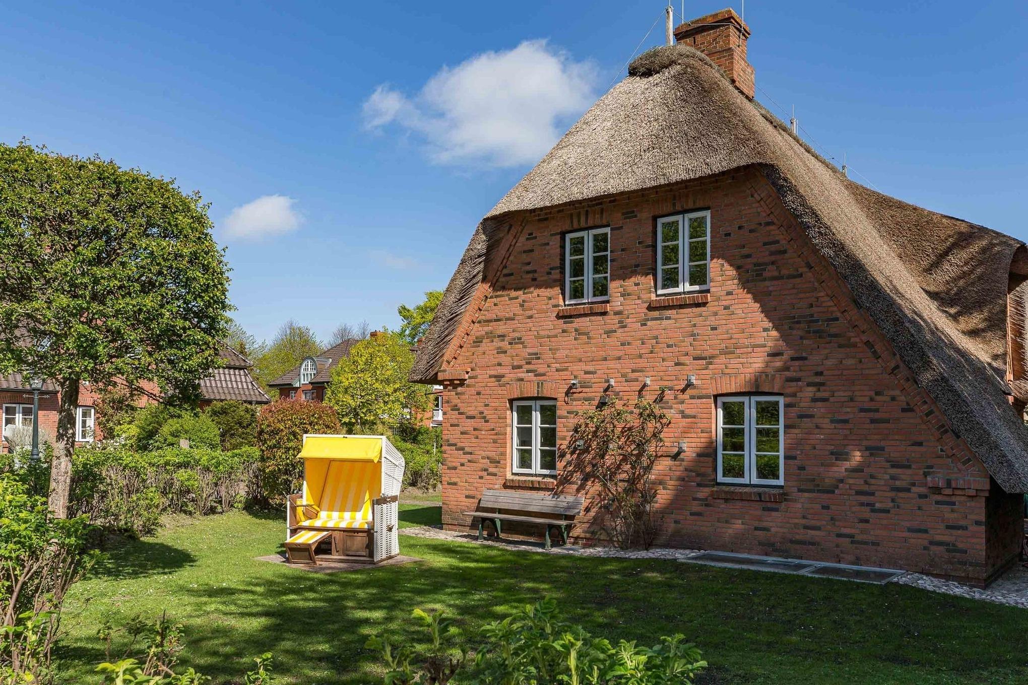 Diese Endhaushälfte unter Reet läßt für Gäste kaum Wünsche offen. Das tiefgezogene Reet und der für die Insel Föhr so typische Baustil gibt einem das Gefühl in einem der ältesten Häuser der Insel zu wohnen. Dabei muss auf keinen Komfort verzichtet werden. Die moderne Enrichtung bietet mit vielen ausgesuchten Details eine Menge, damit Ihre Urlaubswünsche in Erfüllung gehen. Sie wohnen direkt am alten Kurkpark und spüren in Ihrem Garten den Wind vom Meer wenn er durch die Blätter und Äste der mächtigen Zedern und Düneneichen streicht. Der Strand liegt in nur 100 Meter Entfernung. Wem es im gemütlichen Strandkorb am Haus denn doch einmal ein wenig zu langweilig wird, ist in etwa 15 Gehminuten im Trubel der kleinen Stadt von Wyk. Ein Haus zum Verlieben! **** Sterne