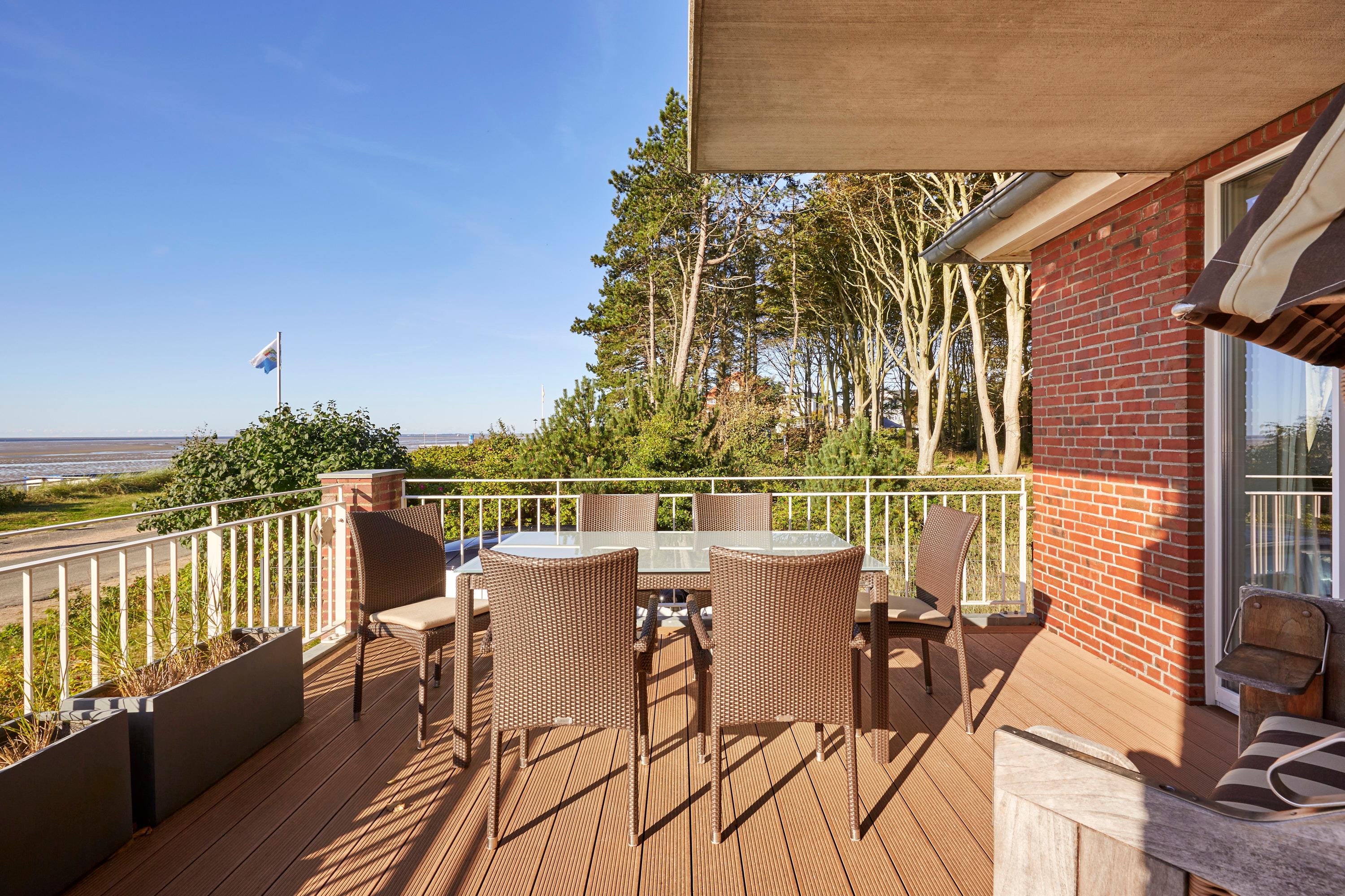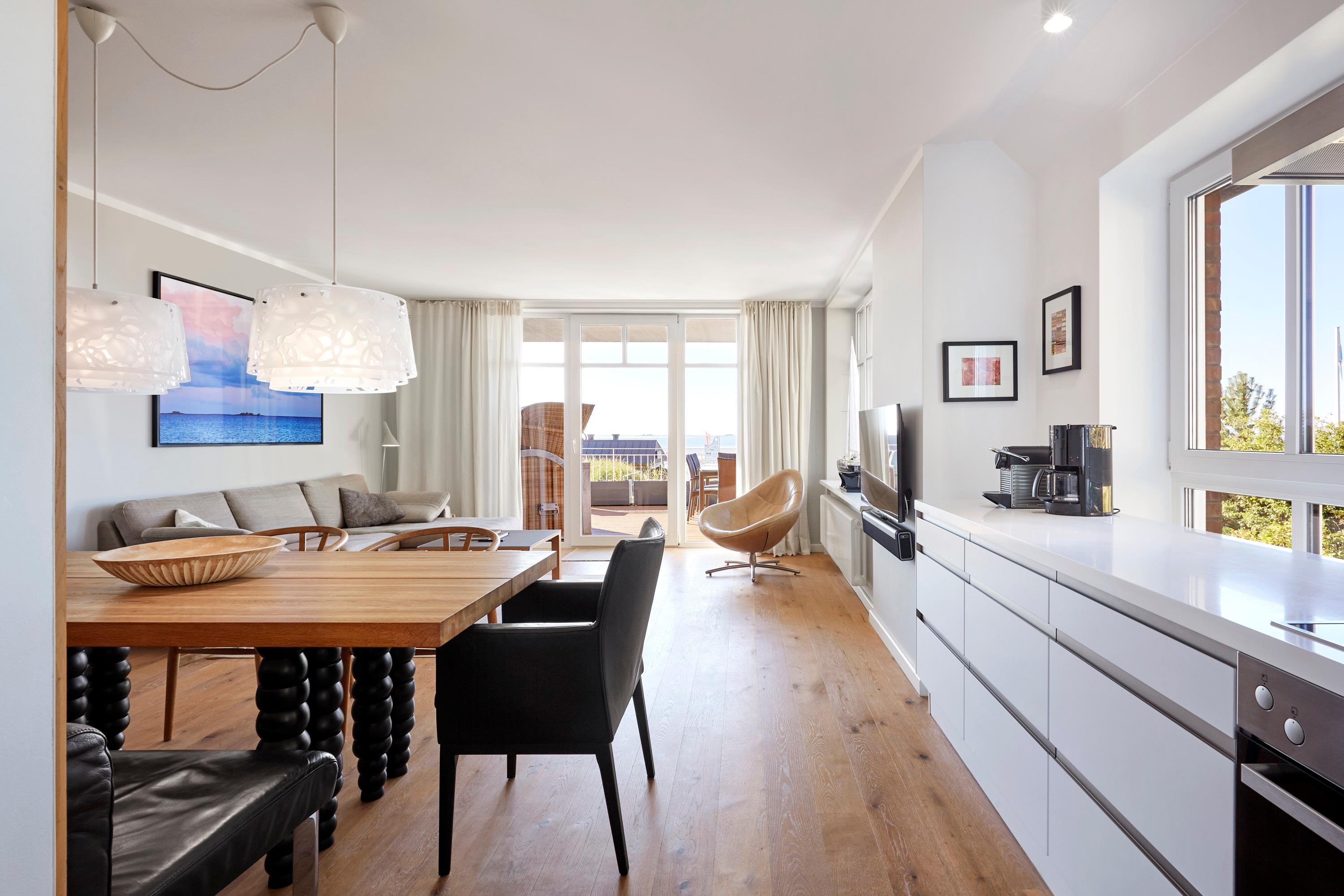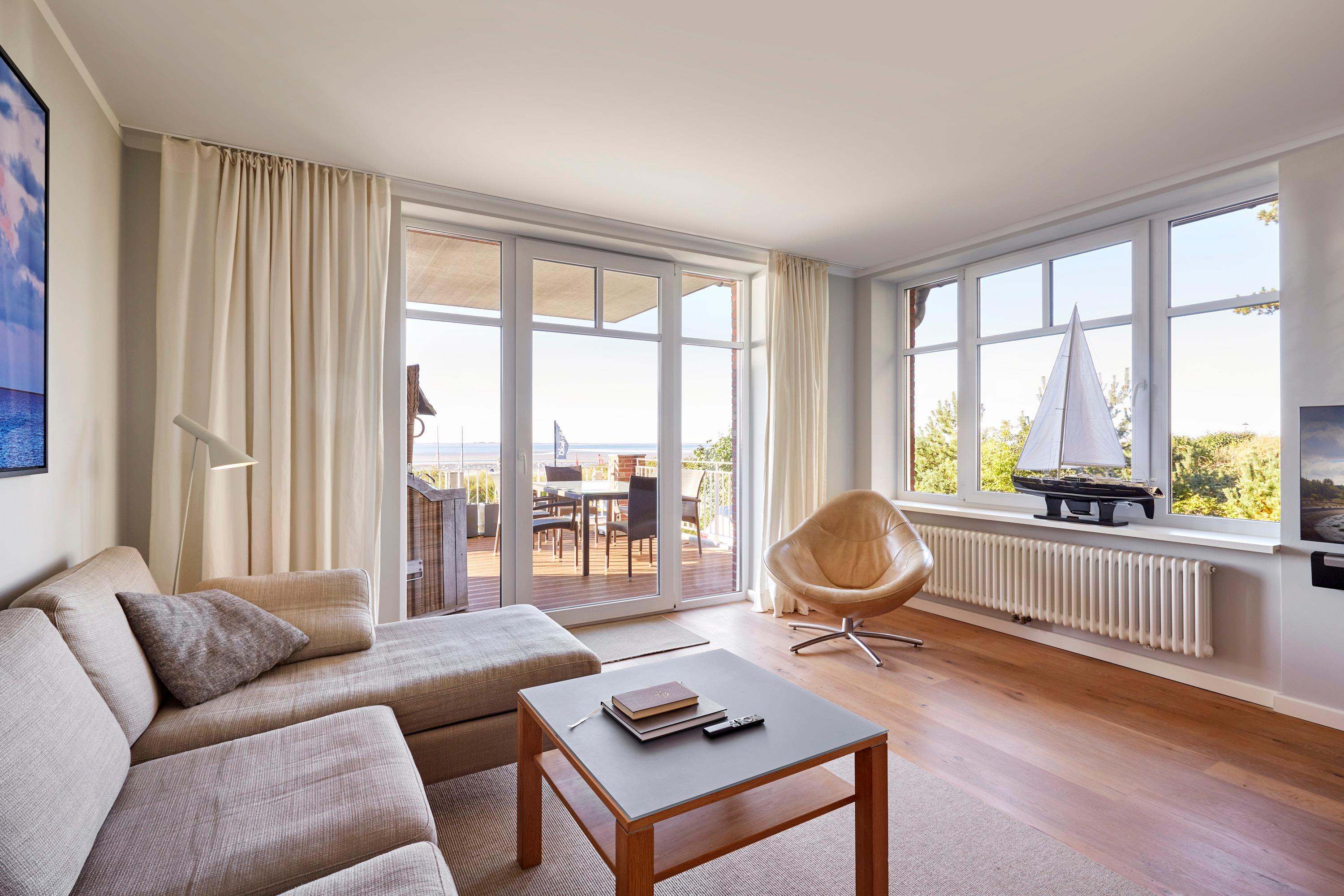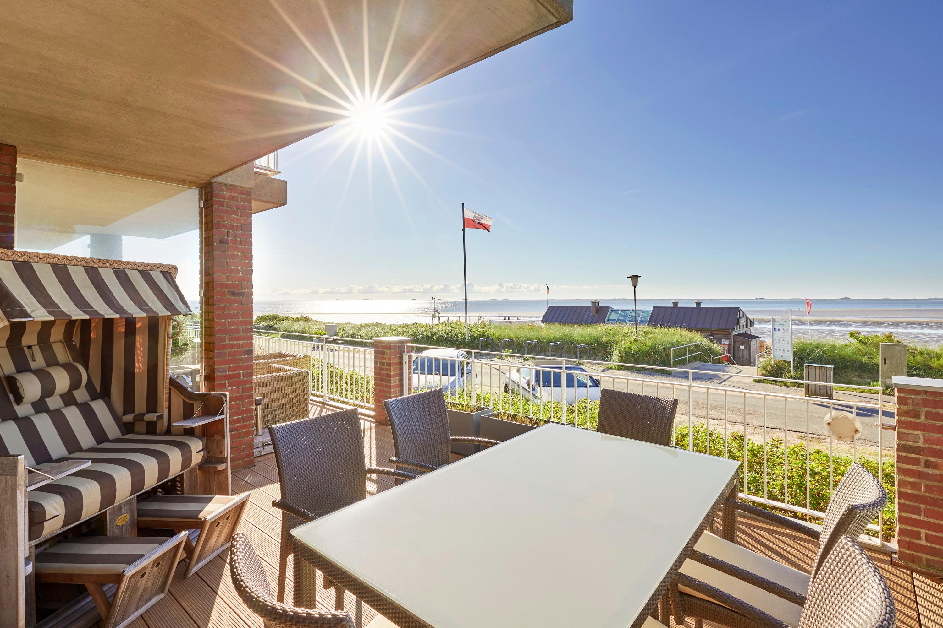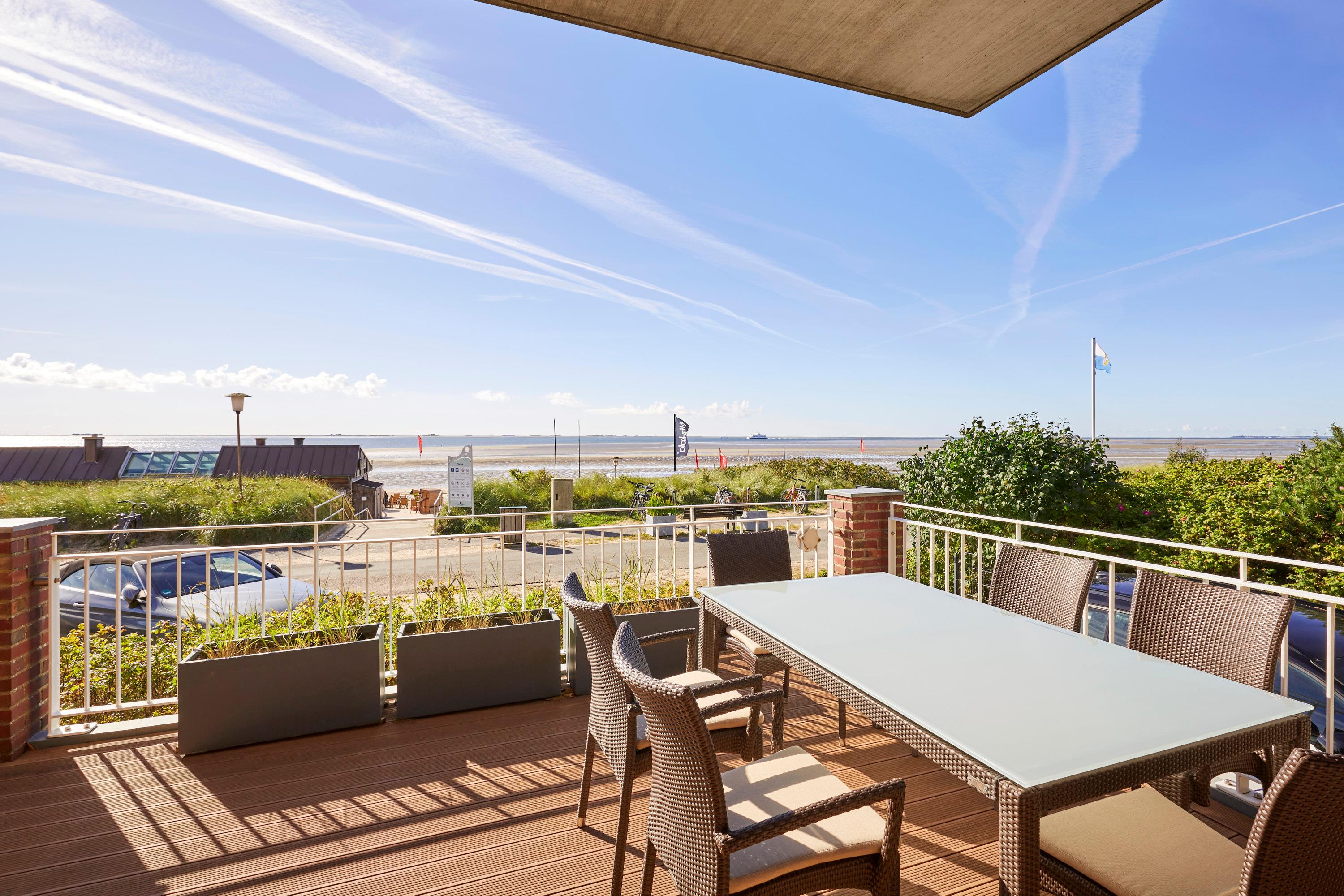 Wohnen Sie in der ersten Reihe im Haus am Meer" - ein Gebäude mit historischer Fassade. Die Wohnung 1 liegt im Erdgeschoss und Souterrain, ist sehr exklusiv und hochwertig ausgestattet und mit modernster Technik versehen. Genießen Sie von hier den Blick auf die Nordsee und die Halligen. Unvergessliche Momentaufnahmen werden Sie aus dem Urlaub mit nach hause nehmen. Auf der teilweise überdachten Terrasse genießen Sie die Meeresbrise im eigenen Strandkorb. Mit wenigen Schritten befinden Sie sich auf der Promenade, die Sie ins Herz von Wyk führt. Hier laden Geschäfte zum Bummeln ein, Cafes und Restaurants verwöhnen Sie mit kulinarischen Köstlichkeiten.