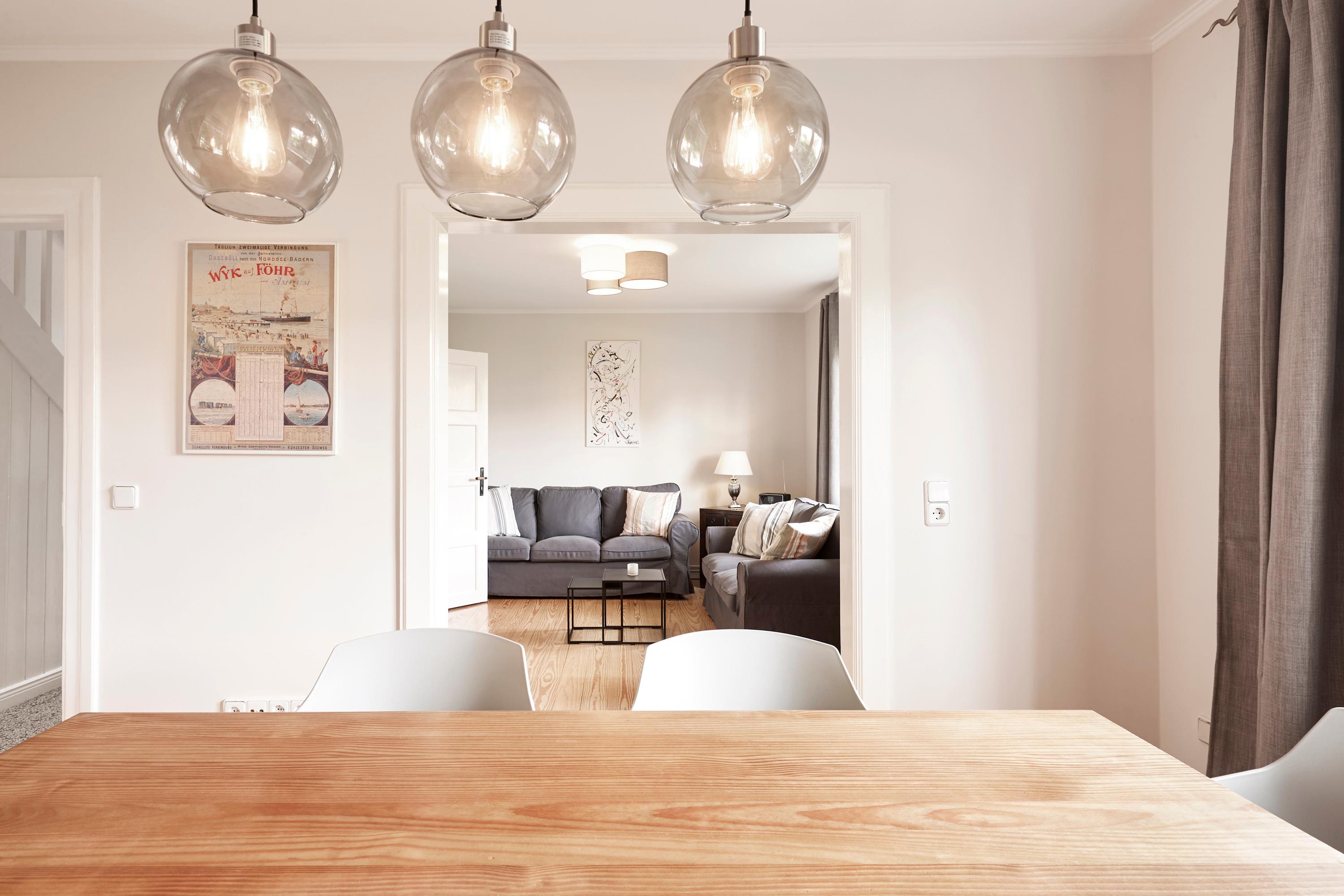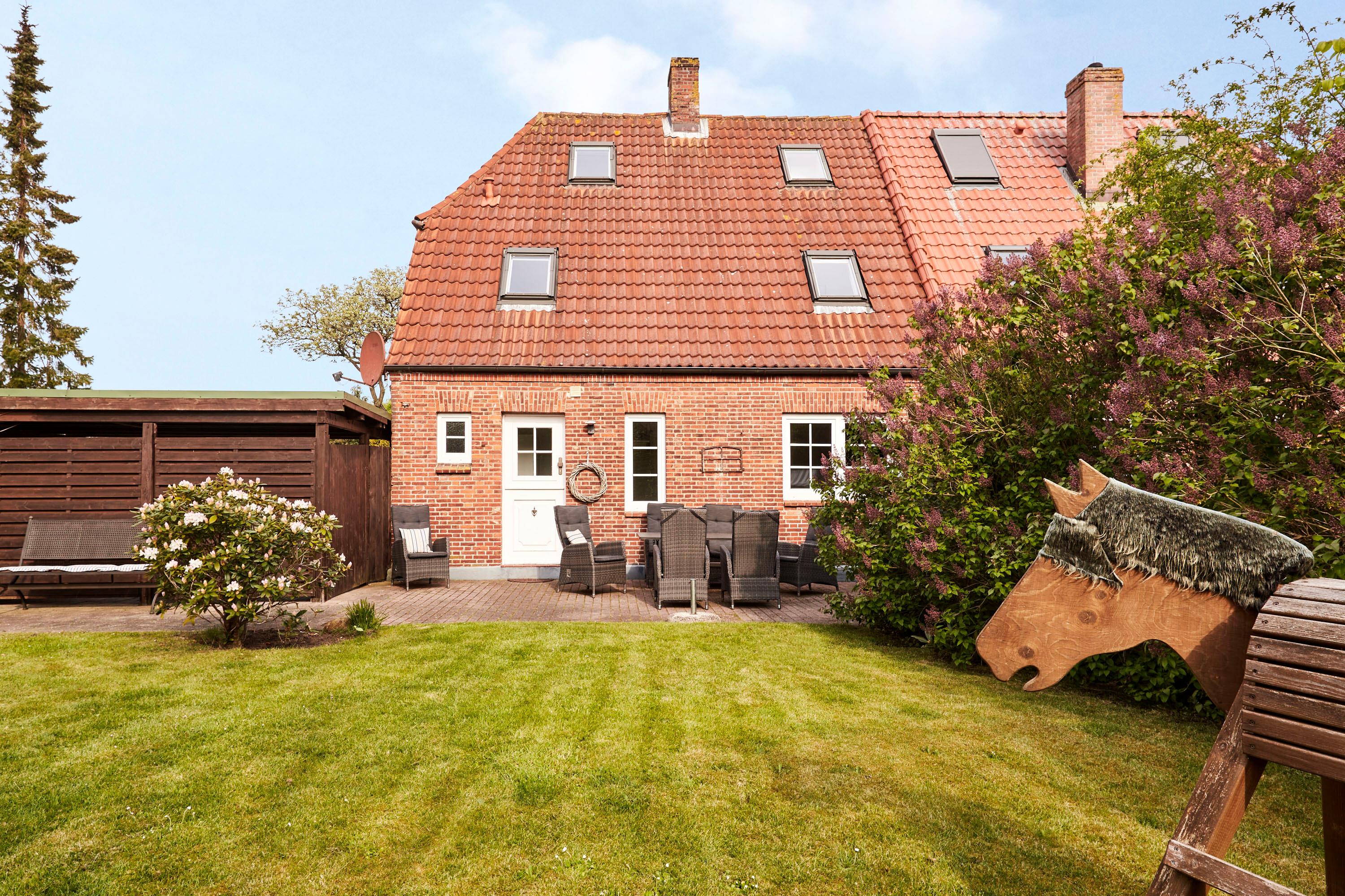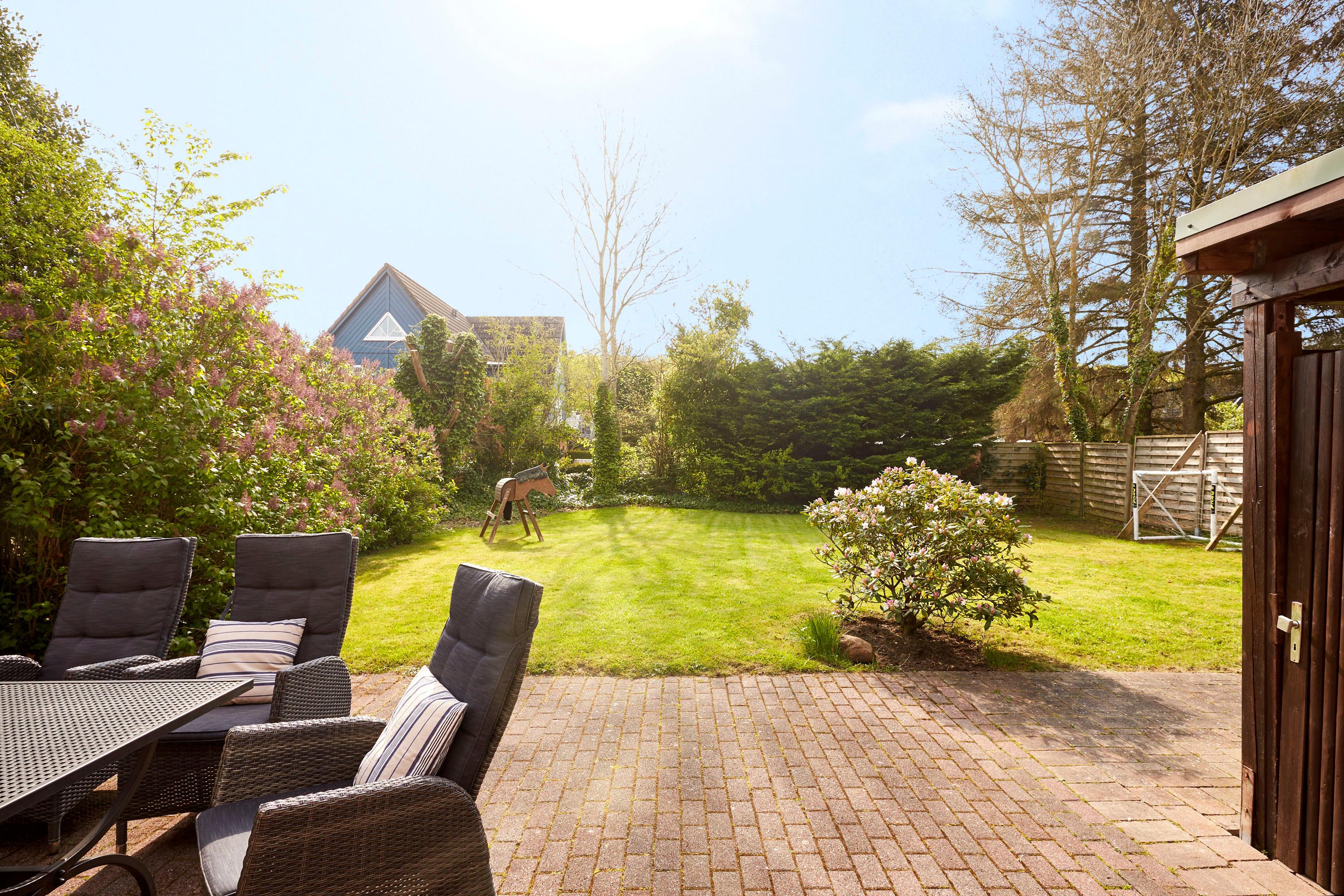 Das Haus liegt auf der Carolinenhöhe, dem höchsten Punkt der Insel. Viel merkt man von dieser Höhe jedoch nicht, aber vielleicht ließ sich der wunderschöne, abgeschlossene Garten deshalb so herrlich anlegen. Hier können Ihre Kinder so richtig toben und spielen. Sie haben dabei trotzdem ausreichend Platz, um in Ruhe ein Buch im Strandkorb oder auf der Rolliege zu lesen. In direkter Nachbarschaft liegt der alteingewachsene Garten des Friesenmuseums. Im Inneren erwartet Sie ein gemütliches Zuhause für die ganze Familie. Außerdem sind Sie in nur wenigen Gehminuten am Strand und in der kleinen Innenstadt von Wyk. Herzlich Willkommen.