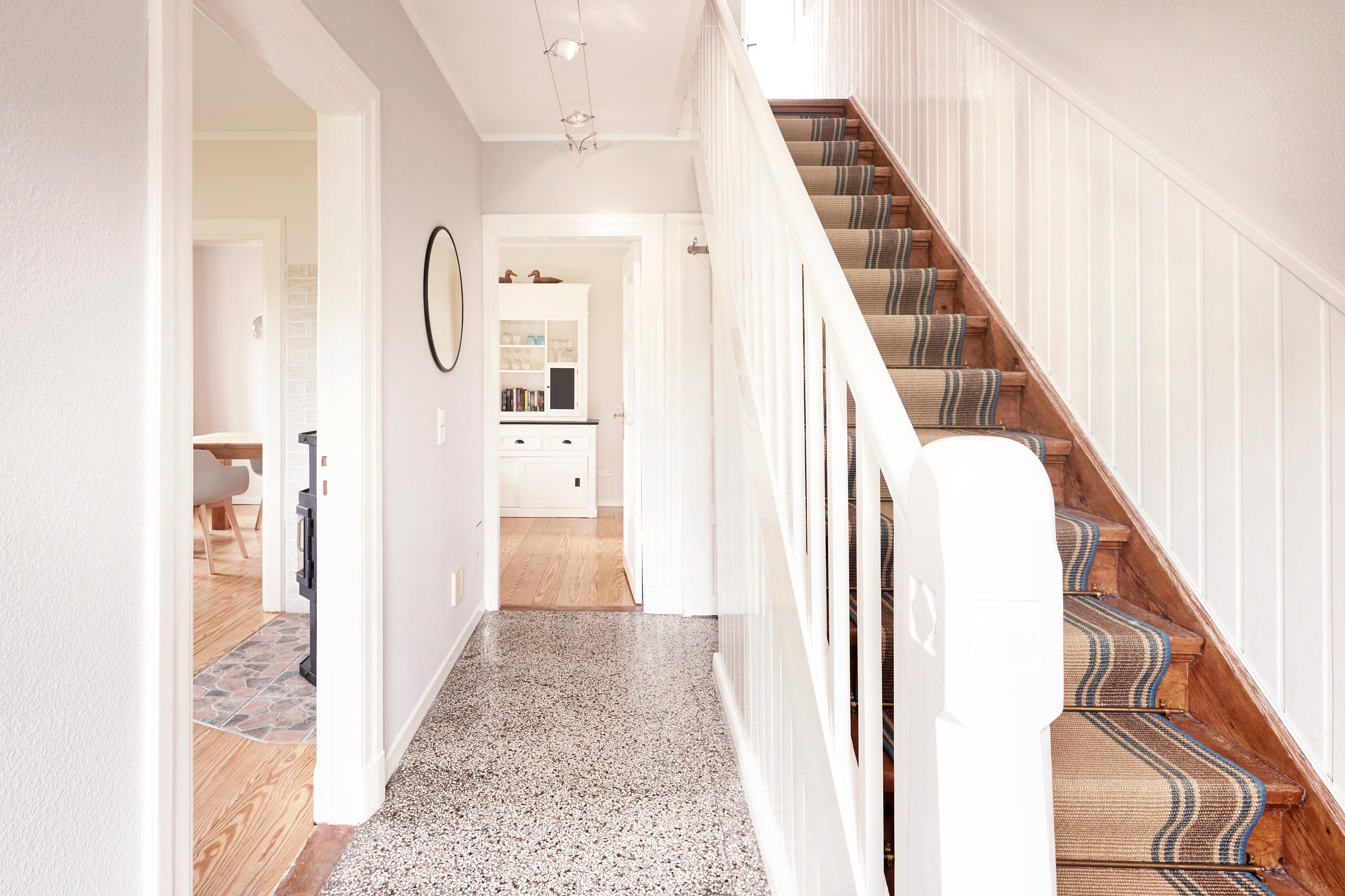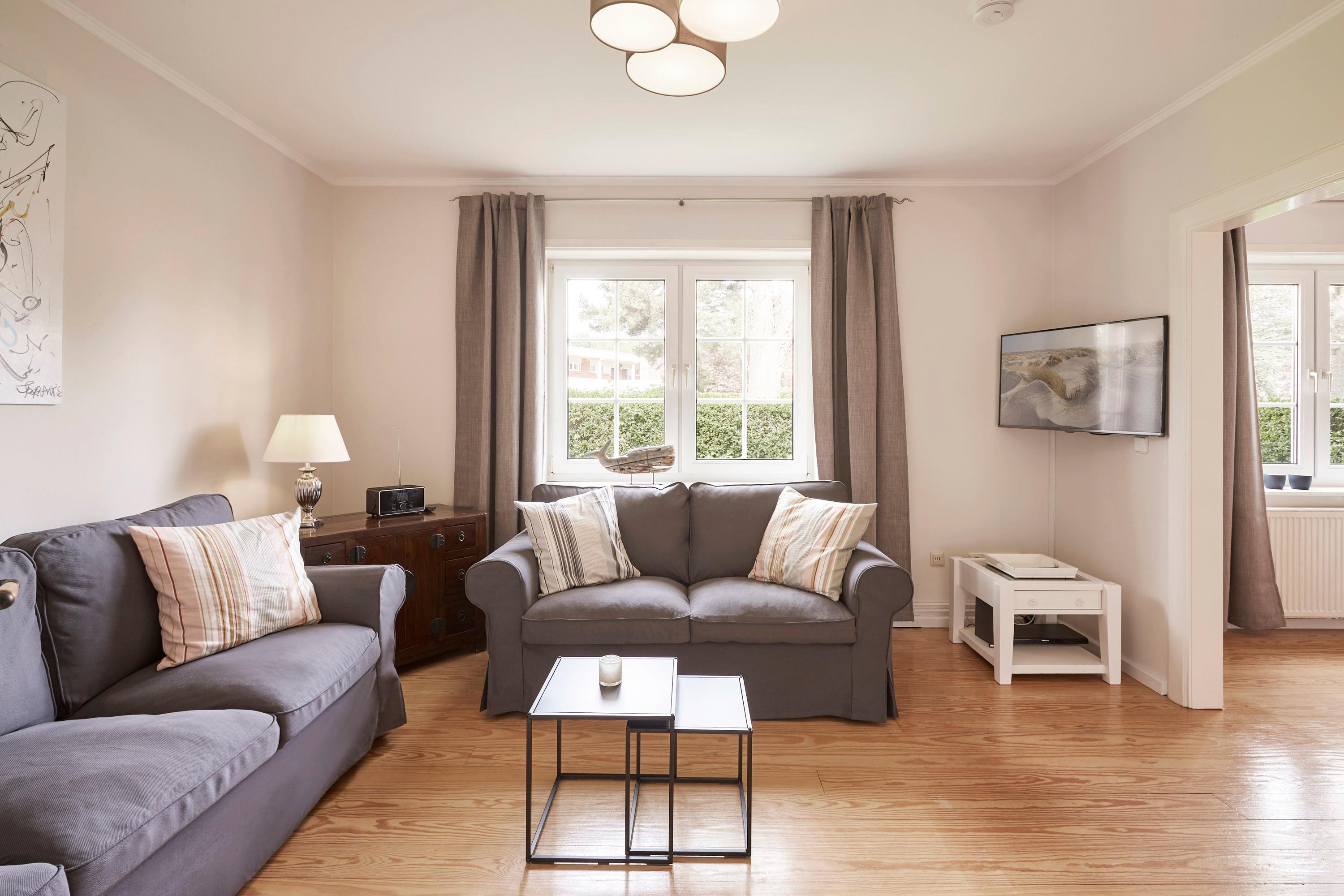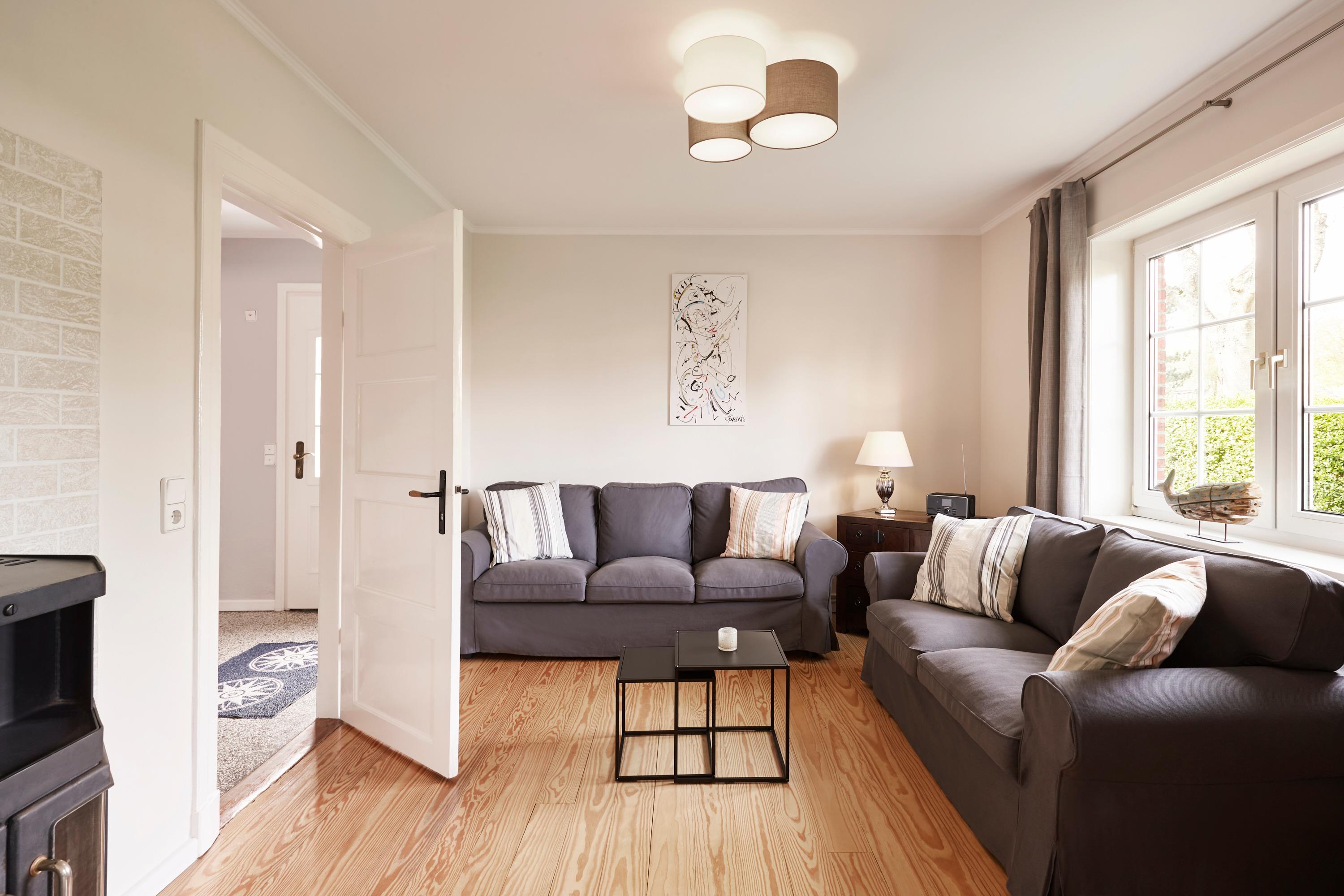 Das Haus liegt auf der Carolinenhöhe, dem höchsten Punkt der Insel. Viel merkt man von dieser Höhe jedoch nicht, aber vielleicht ließ sich der wunderschöne, abgeschlossene Garten deshalb so herrlich anlegen. Hier können Ihre Kinder so richtig toben und spielen. Sie haben dabei trotzdem ausreichend Platz, um in Ruhe ein Buch im Strandkorb oder auf der Rolliege zu lesen. In direkter Nachbarschaft liegt der alteingewachsene Garten des Friesenmuseums. Im Inneren erwartet Sie ein gemütliches Zuhause für die ganze Familie. Außerdem sind Sie in nur wenigen Gehminuten am Strand und in der kleinen Innenstadt von Wyk. Herzlich Willkommen.
