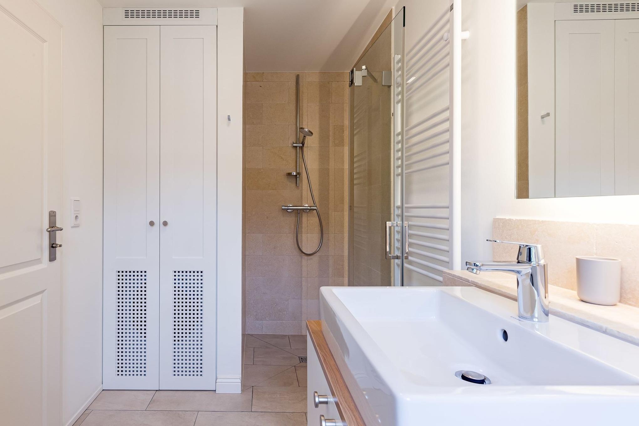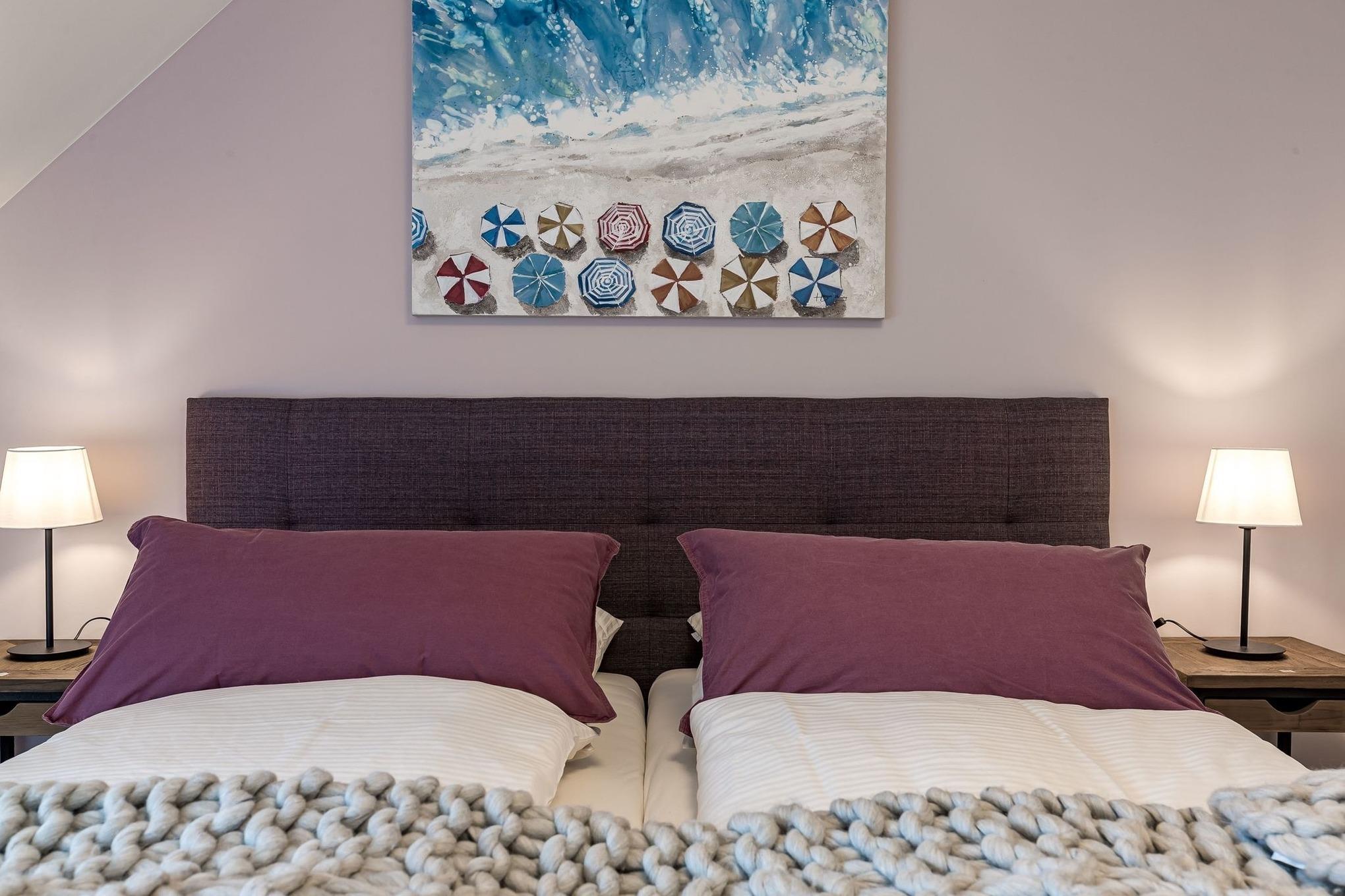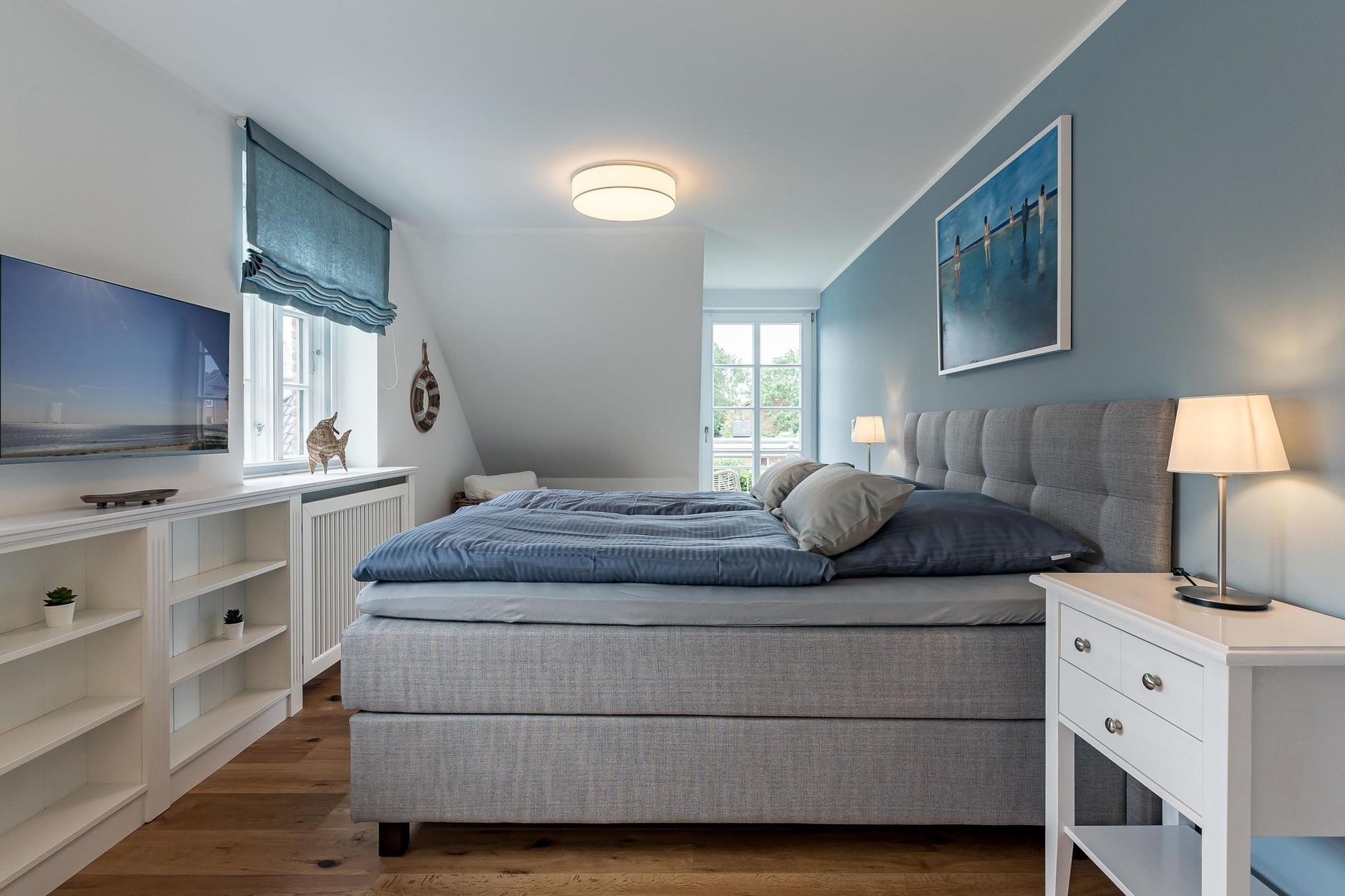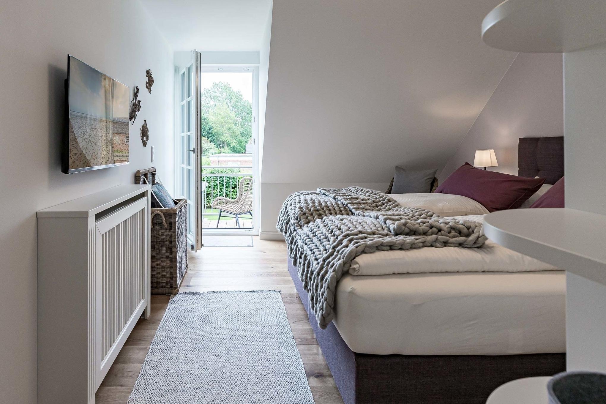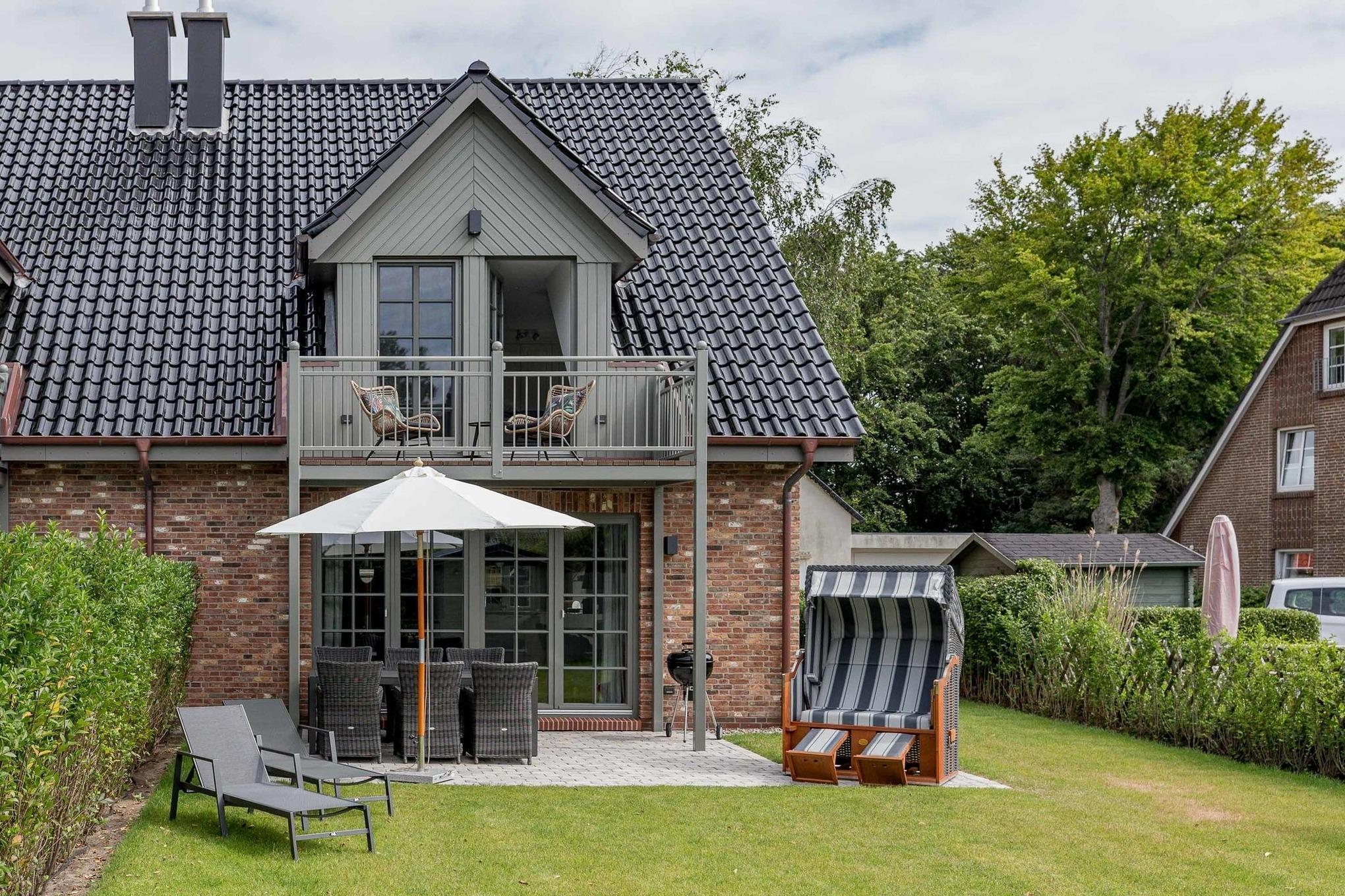 Schönes Doppelhaus in moderner Architektur wartet im Grünstreifen in Wyk auf Ihren Besuch. Klare Formen und Farben sorgen für eine ruhige und entspannte Atmosphäre. Die ganze Familie findet ausreichend Platz im Haus. Gemütliche Abende vor dem Kamin mit Wellness in der eigenen Sauna gehören in den kalten Monaten genauso dazu wie die Stunden im eigenen Strandkorb im Garten und dem Frühstück auf der Terrasse. Der Weg zum Strand ist in wenigen Minuten zu Fuß zu meistern und das bunte Leben in Wyk liegt genauso nahe. Wir freuen uns auf Sie!