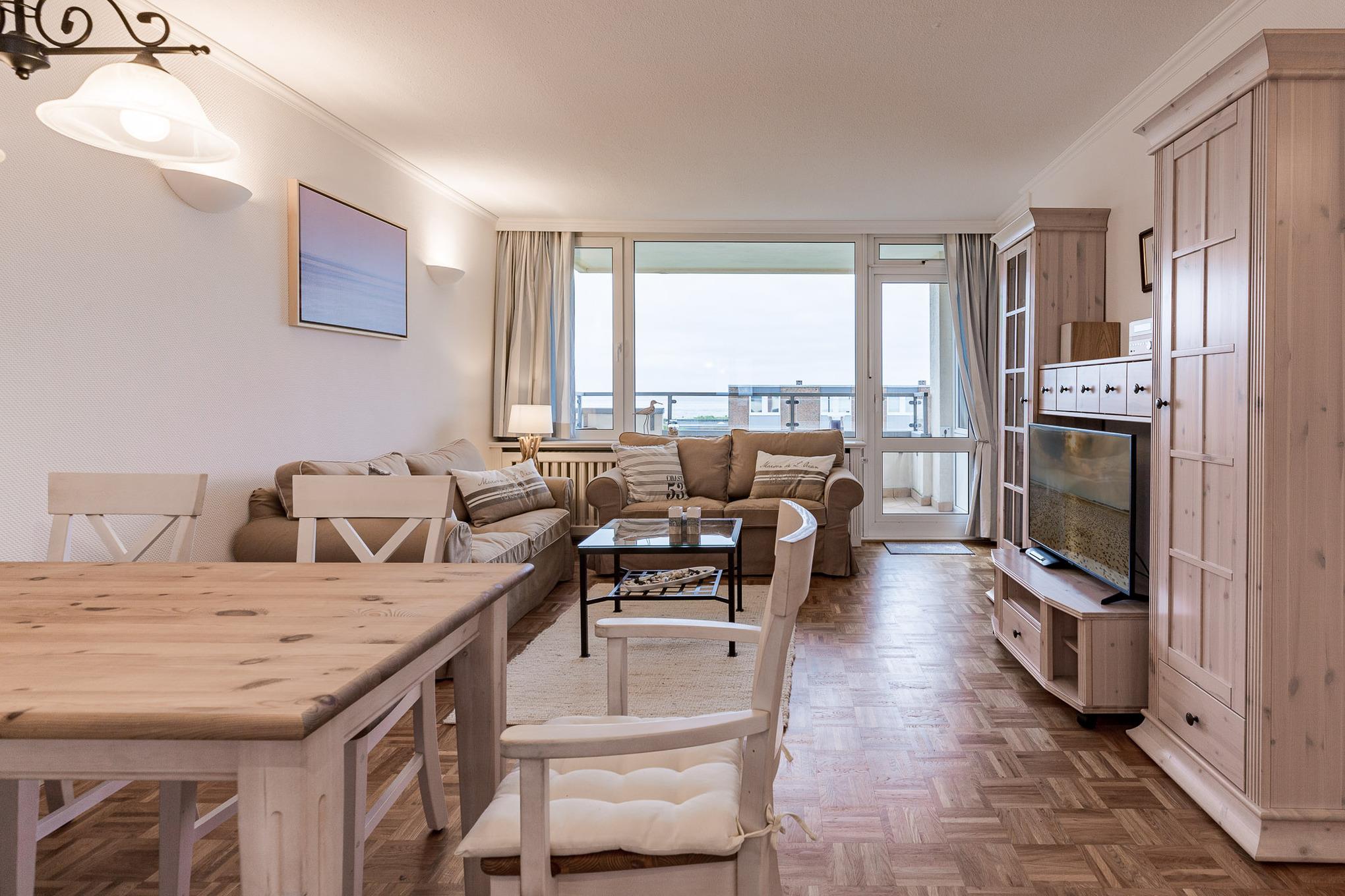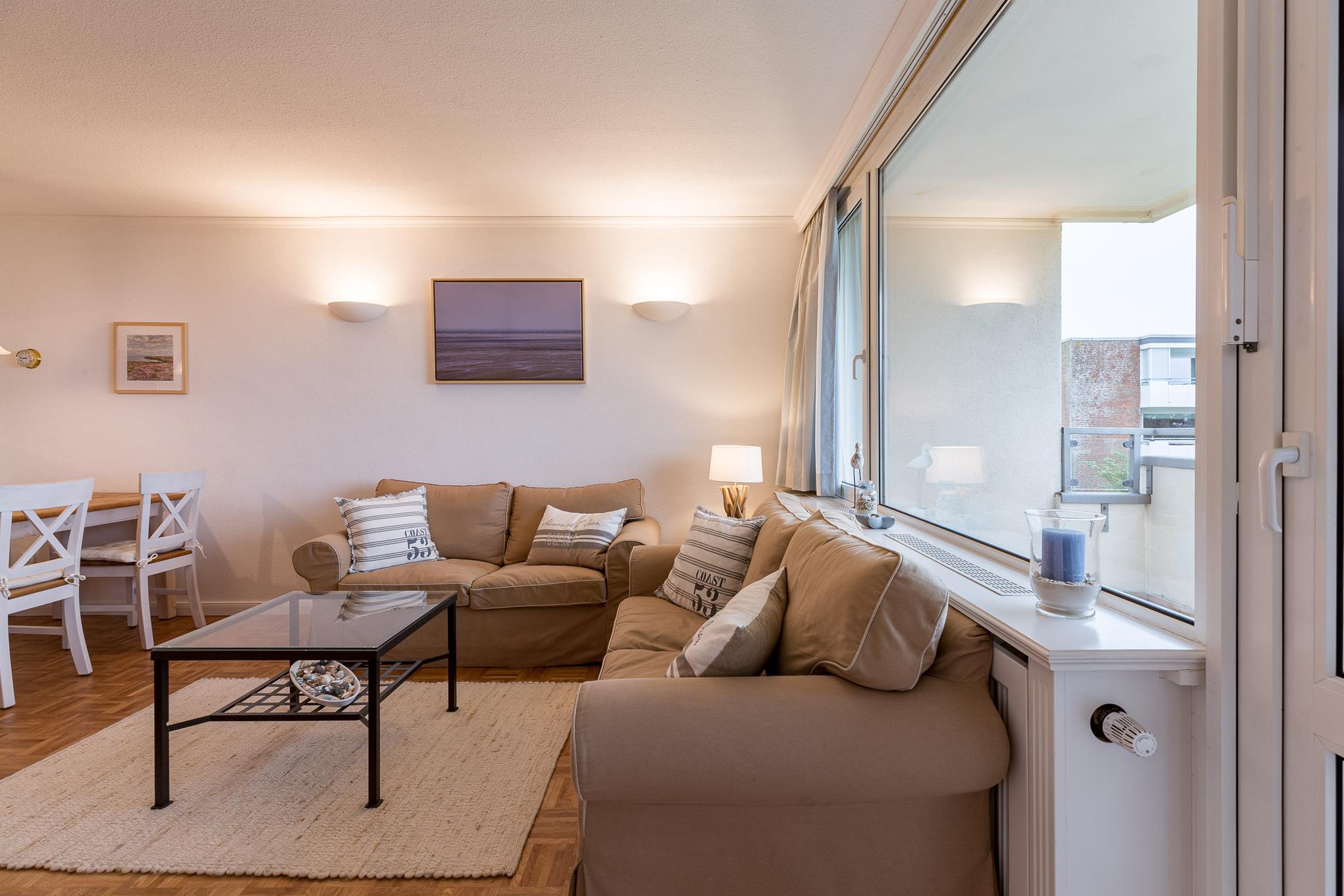 Das Haus Uthlande befindet sich in einer gehobenen Ferienanlage am Rande von Wyk. Mit Blick auf die Nordsee, dem gegenüberliegenden Golfplatz und dem nahen Freizeitflughafen bietet die Wohnung mit dem Sandstrand vor der Tür, einer Wassersportschule in Laufnähe, sowie den traditionellen Reetdachhäusern auf eigenen Warften in Greveling, ein schönes Freizeitangebot. Die Wohnung befindet sich in der ersten Etage und wurde mit viele Liebe zum Detail eingerichtet. Durchdachte Tischlereinbauten und ein modernes Bad lassen keine Wünsche offen. Genießen Sie den traumhaften Blick über die Nordsee, an stürmischen Tagen von der gemütlichen Essbank aus, oder lassen Sie sich auf dem überdachten Balkon schon beim Frühstück von der Sonne kitzeln.