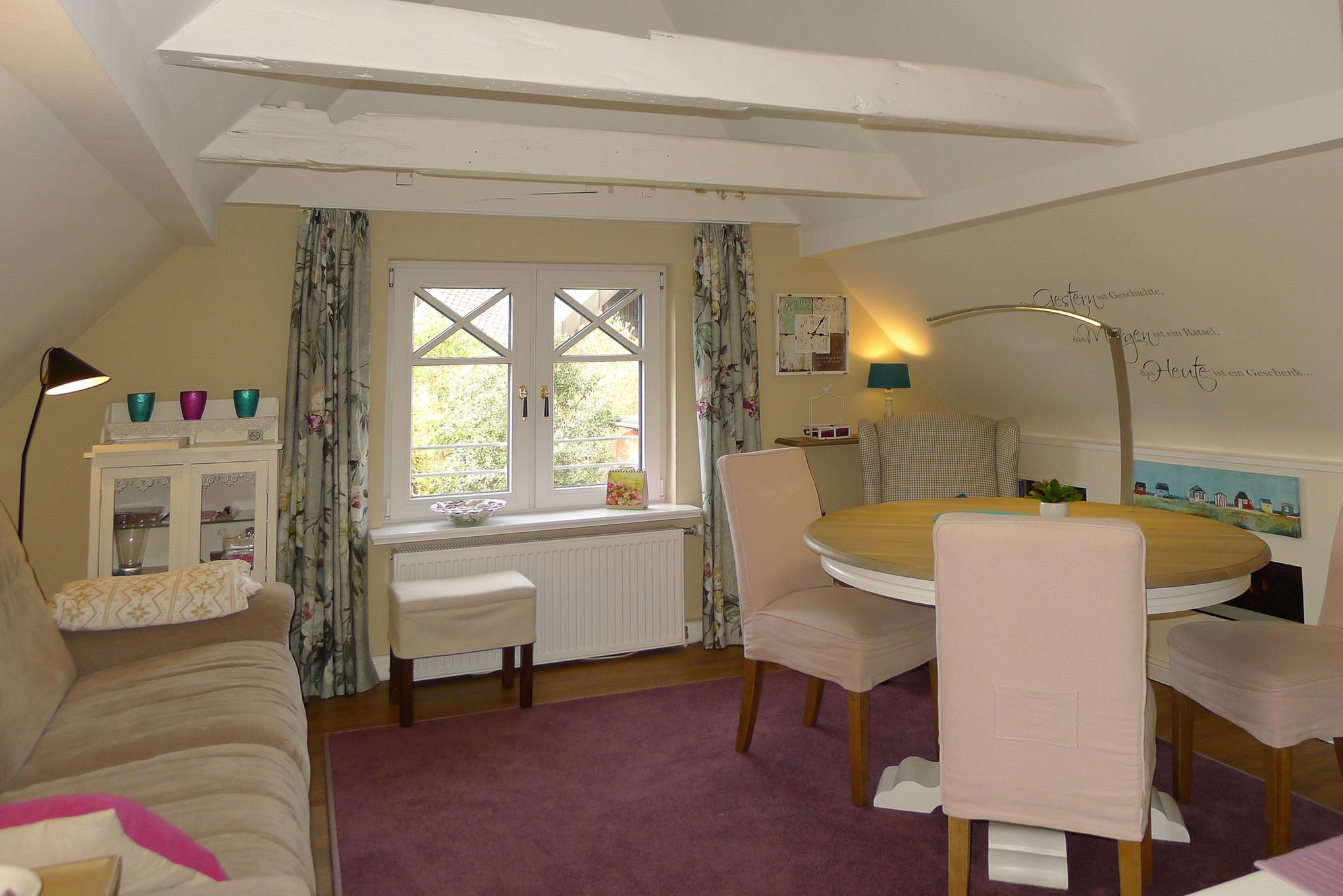 Erleben Sie Ihr persönliches ?„Inselglück?“ mitten in Wyk, in dieser liebevoll und hochwertig eingerichteten Wohnung. Mit nur wenigen Schritten holen Sie morgen die Frühstücksbrötchen vom Bäcker, ein paar Schritte weiter lockt schon der Strand und das Meer. Der Sandwall mit seinen Geschäften, Cafes und Restaurants ?- alles wartet von Ihnen entdeckt zu werden. Die Wohnung, mit separatem Eingang, wird Sie begeistern. Ein besonderes Highlight ist sicherlich der große Balkon mit 25 qm. Von hier haben Sie einen traumhaften Blick über die Dächer und Gärten. Morgens starten Sie den Tag schon mit einem Frühstück auf dem Balkon und am Abend können sie den Sonnenuntergang beobachten. Sollte das Wetter mal nicht für ?„open Air?“ geeignet sein, machen Sie den knisternden Elektro-Kamin an, fahren das Sofa in die bequeme Liegeposition und relaxen einfach. Eine ?„rund-um?“ Wohlfühloase für jede Jahreszeit.