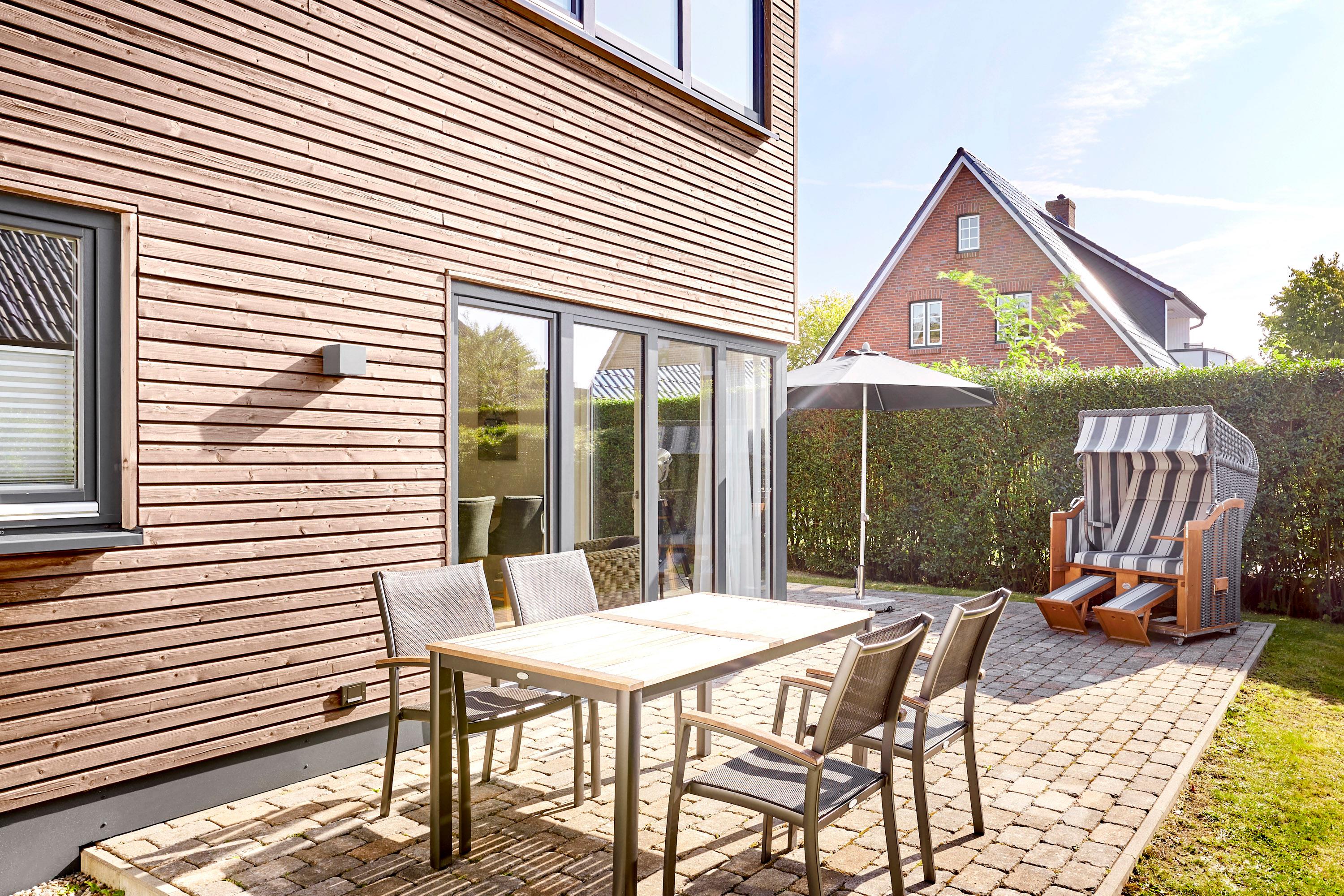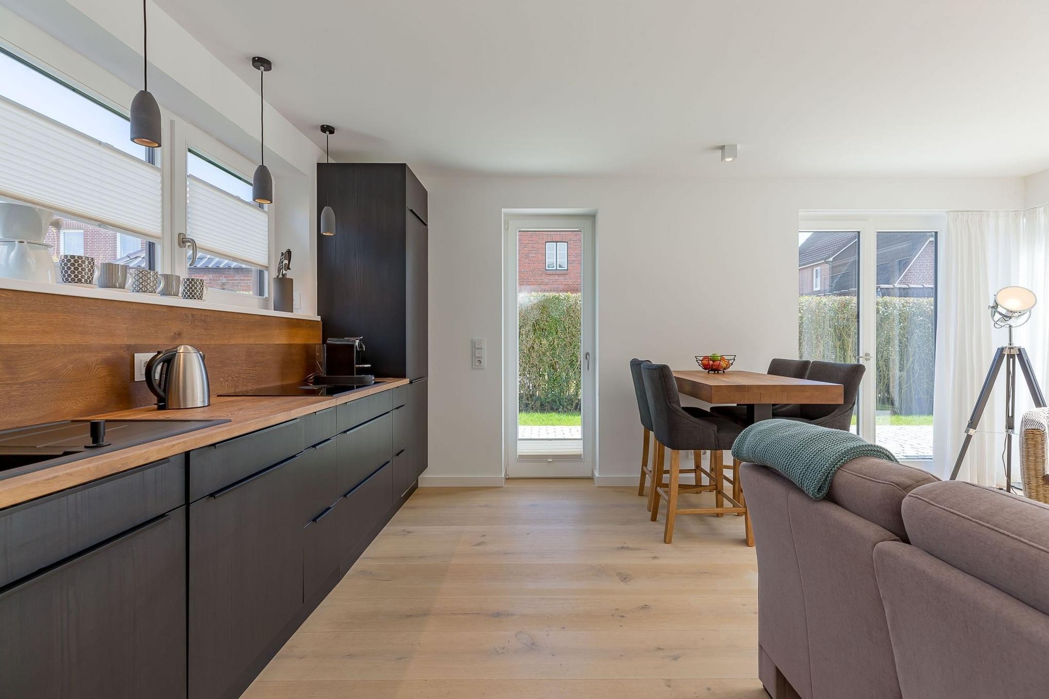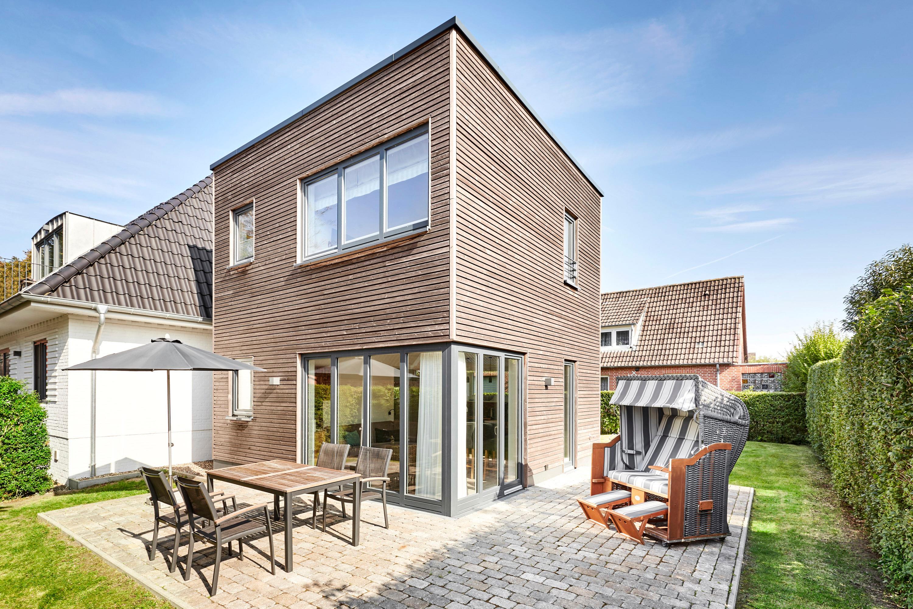 Modernes Ferienhaus KUBUS mit Garten, Südterrasse und exklusiver Designer-Küche in Wyk auf Föhr.
