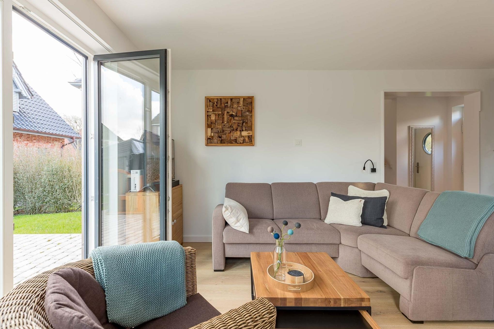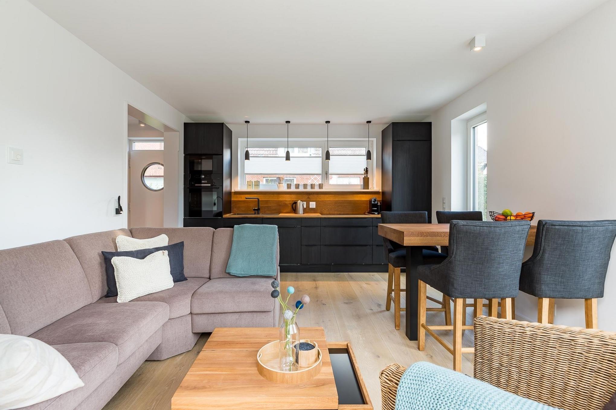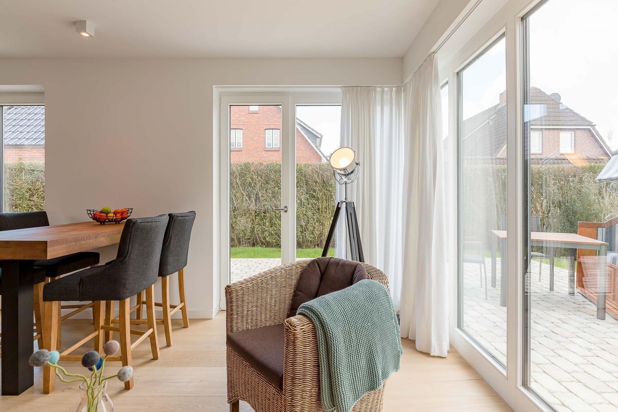 Modernes Ferienhaus KUBUS mit Garten, Südterrasse und exklusiver Designer-Küche in Wyk auf Föhr.