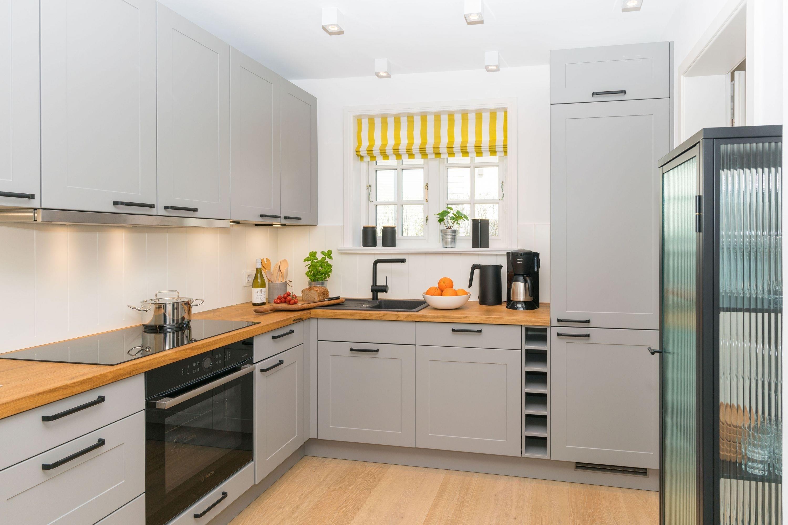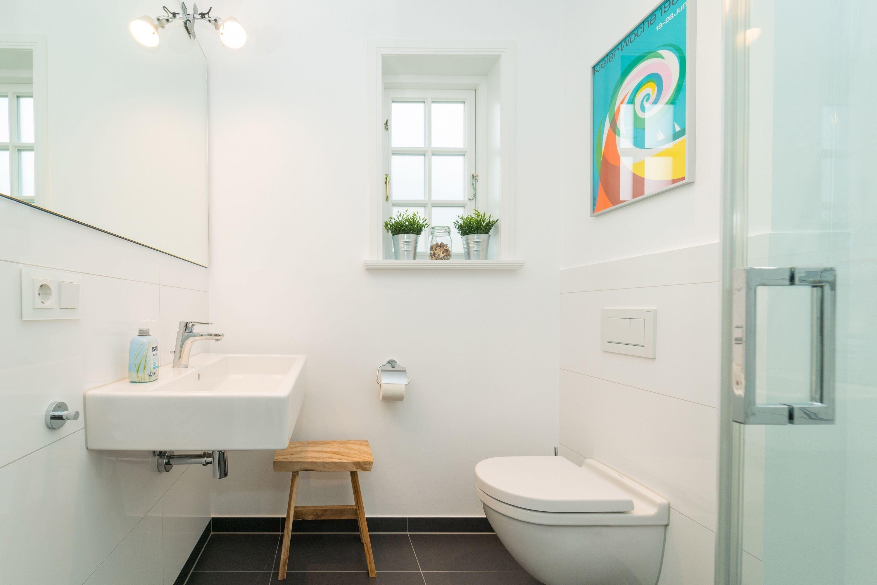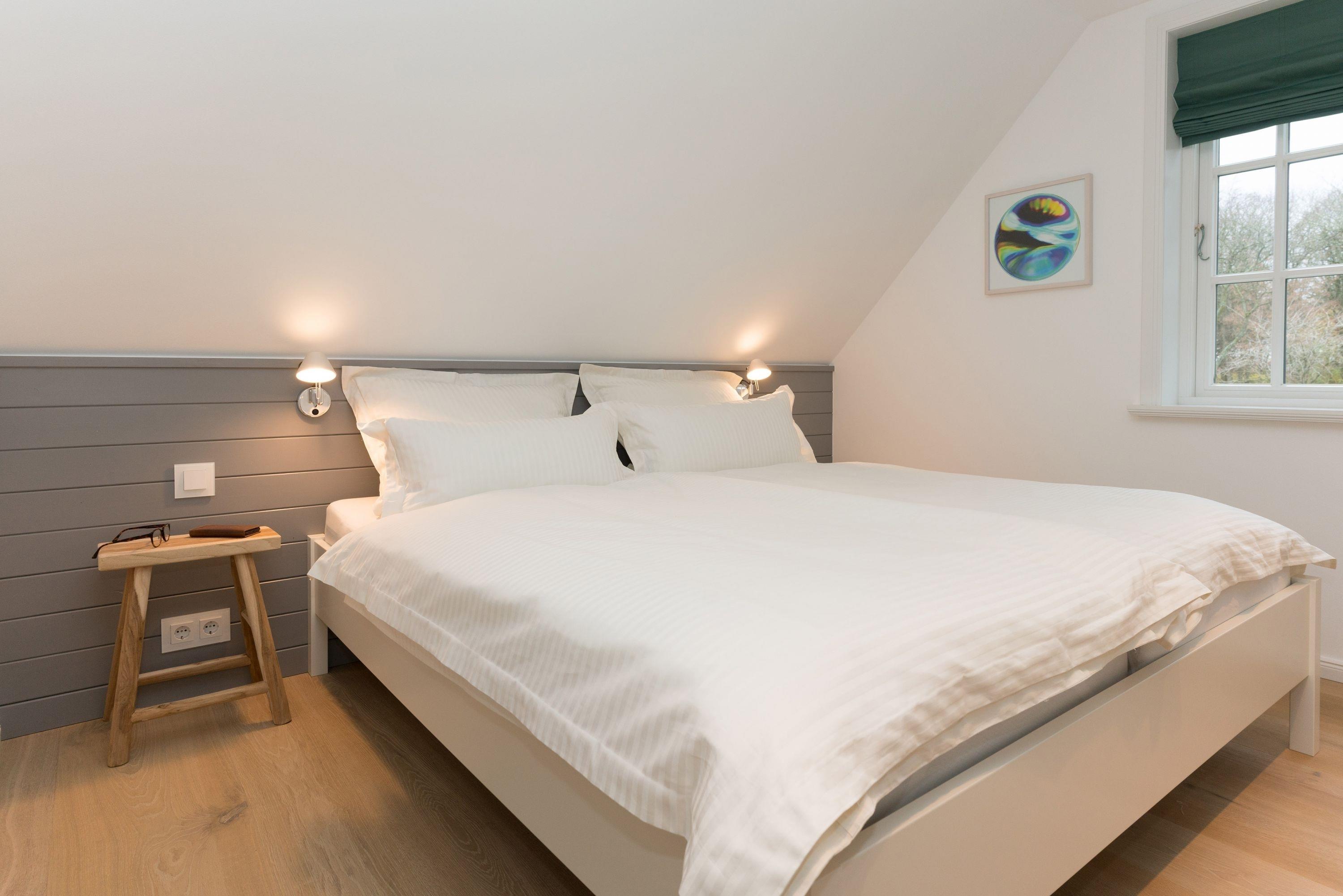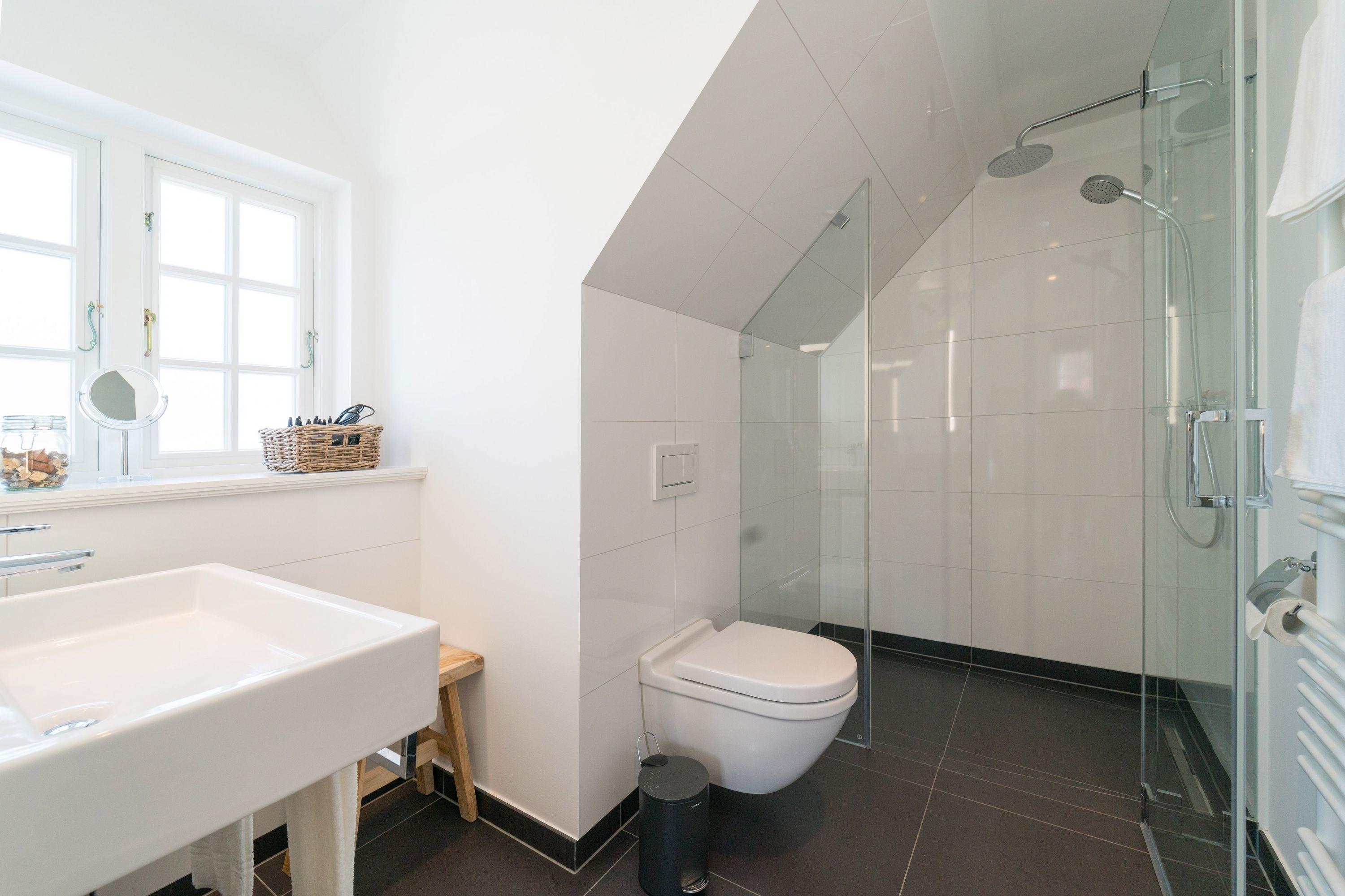 Ferienhaus "Leichte Brise" Meer, Sonne und immer eine leichte Brise - das ist Föhr und das ist die ruhig und zentral gelegene "Leichte Brise“ in Wyk. Moderne, klare Linien, nordische Leichtigkeit, massive Eichendielen und Designklassiker auf 105 qm über 3 Etagen als perfekte Urlaubsbasis für 4 Erwachsene und 1 Kleinkind (bis 3J.). Große Fensterflächen, Artemide und Gubi Leuchten schaffen lichtdurchflutete Räume. Im Erdgeschoss treffen USM Haller und Panton Stühle auf einen alten Eichentisch und eine Küche mit kompletter Ausstattung. Zwei gemütliche Sofas und ein moderner Ohrensessel sind die Relaxgrundlage für Fernsehabende, Lesestunden oder ein gutes Glas Wein am knisternden Kamin. Die Schlafzimmer jeweils mit Bettwäsche in Komfortgröße (155x220) und En-suite Bäder mit großer Dusche, versprechen Erholung im Schlaf. Und falls es im Urlaub doch mal eine E-Mail zu schreiben gibt, finden Sie einen kleinen Arbeitsplatz im Dachgeschoß. Die nach Süden ausgerichtete Terrasse mit großem Tisch und Standkorb schließt die Hausführung ab.