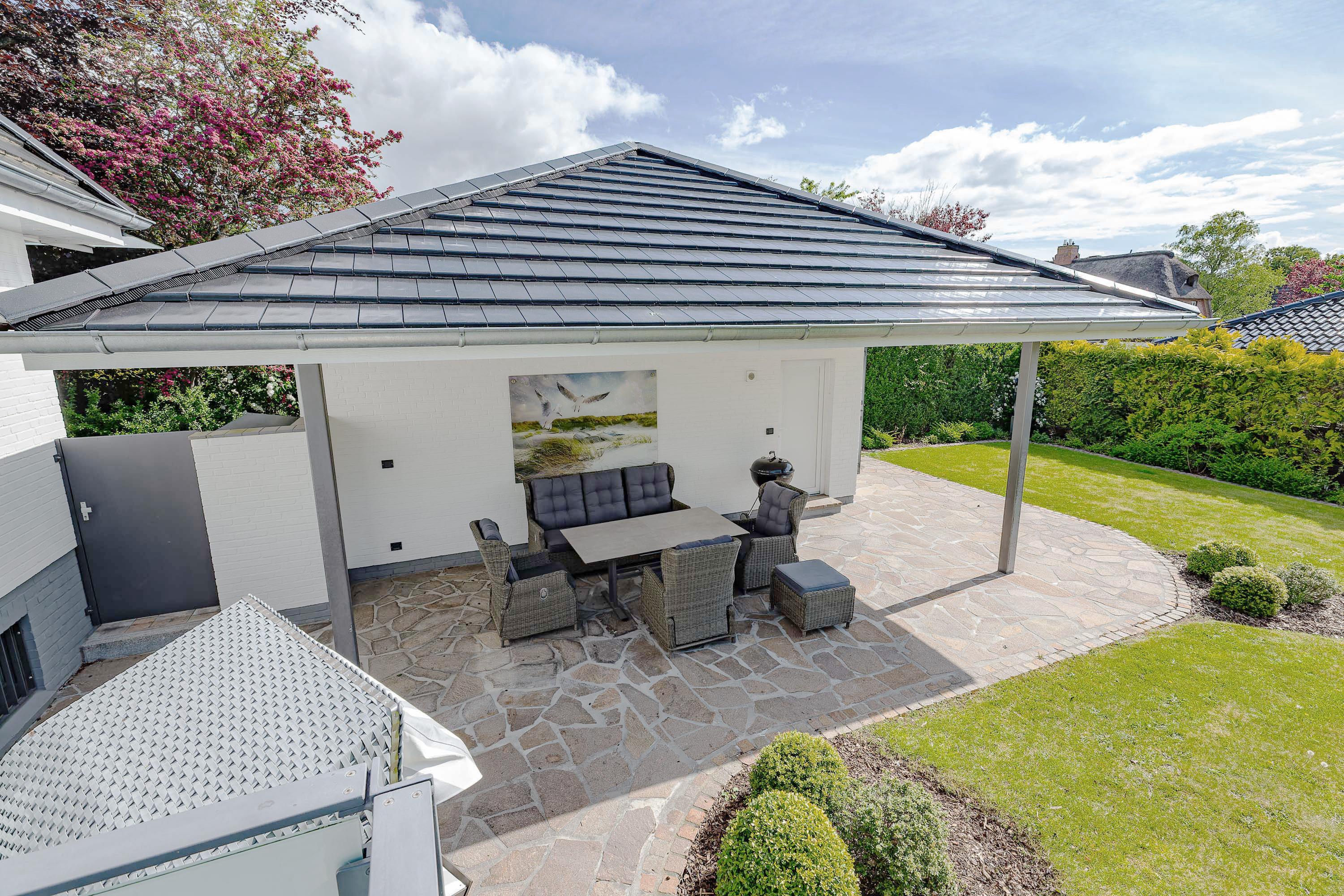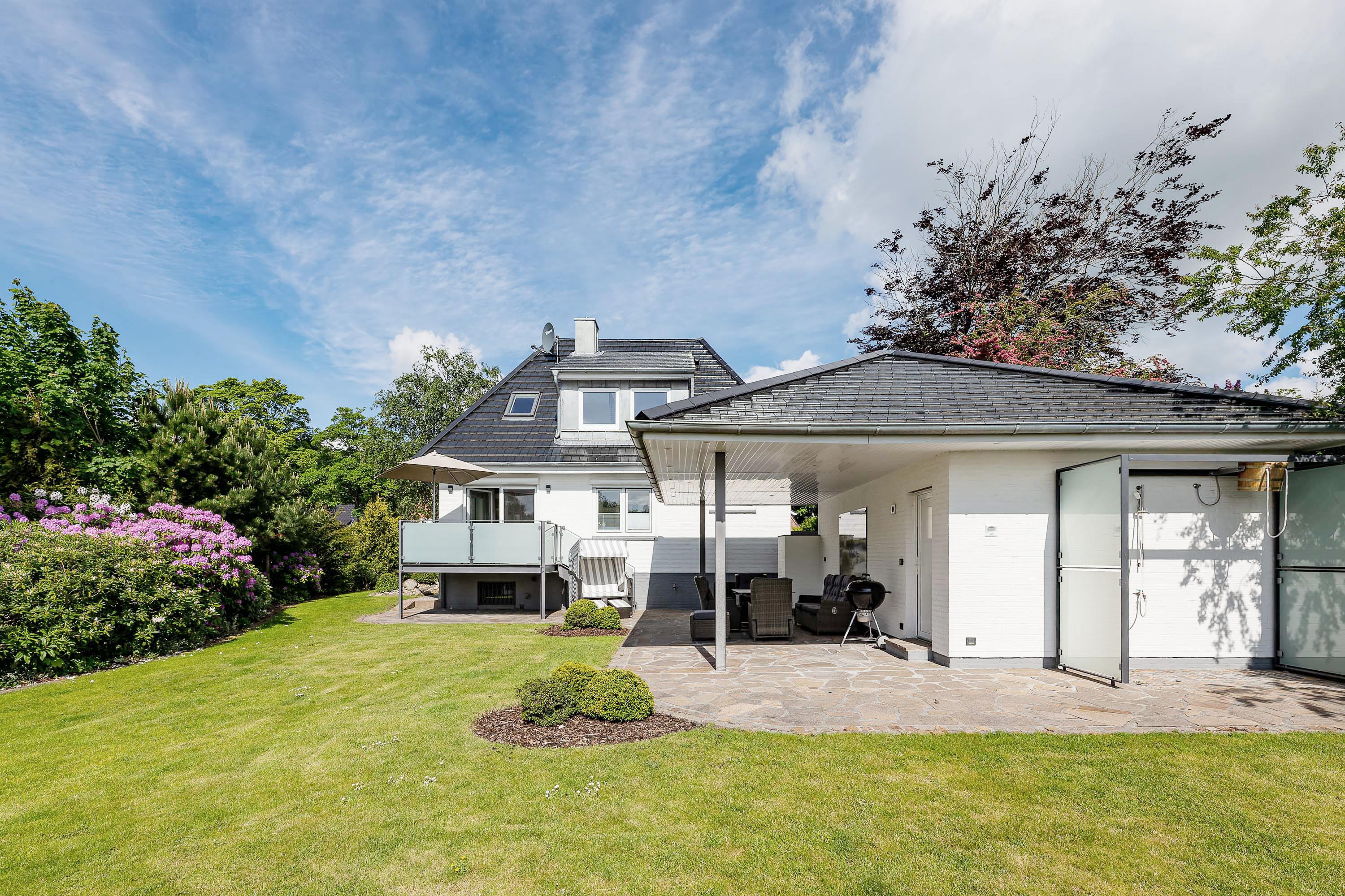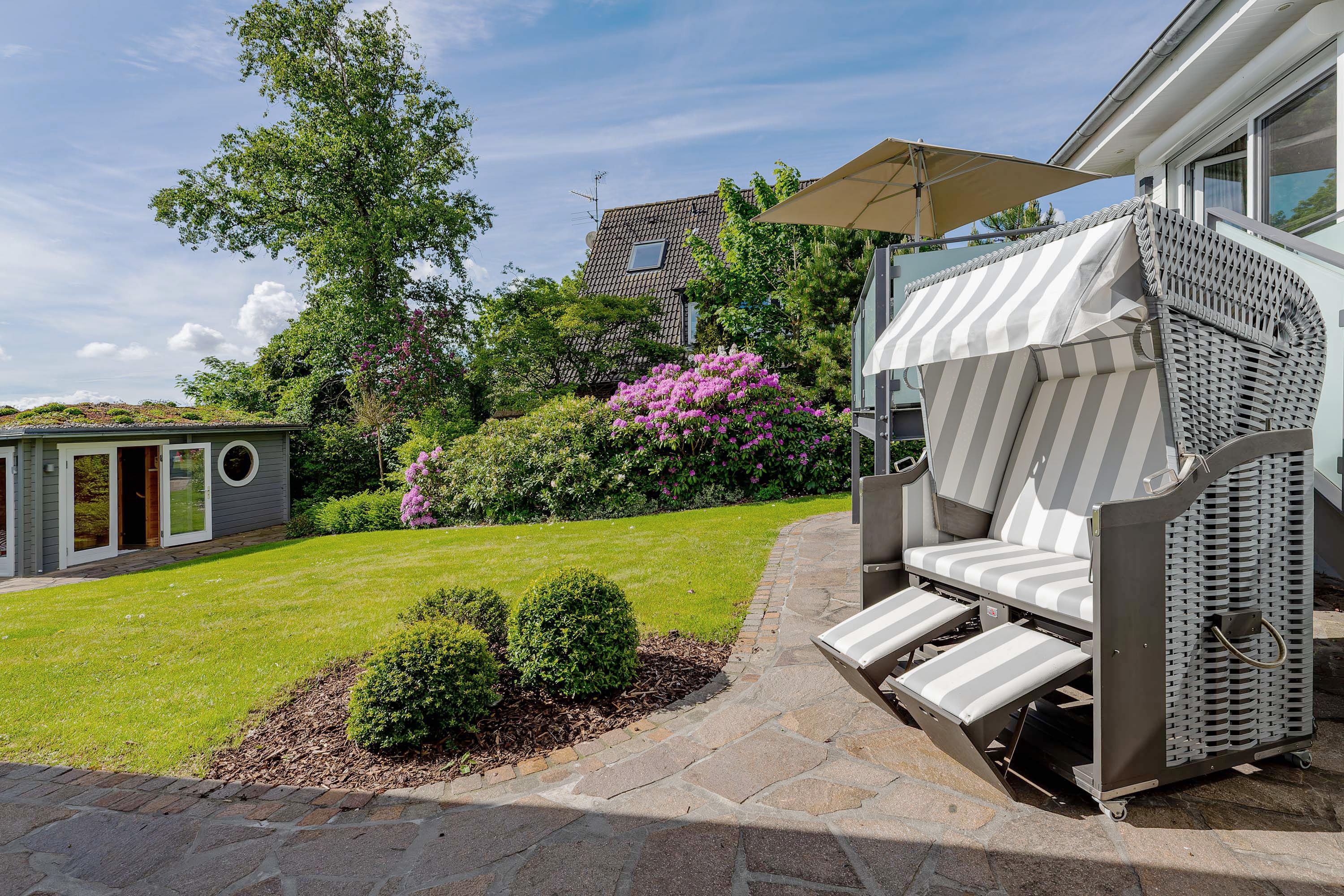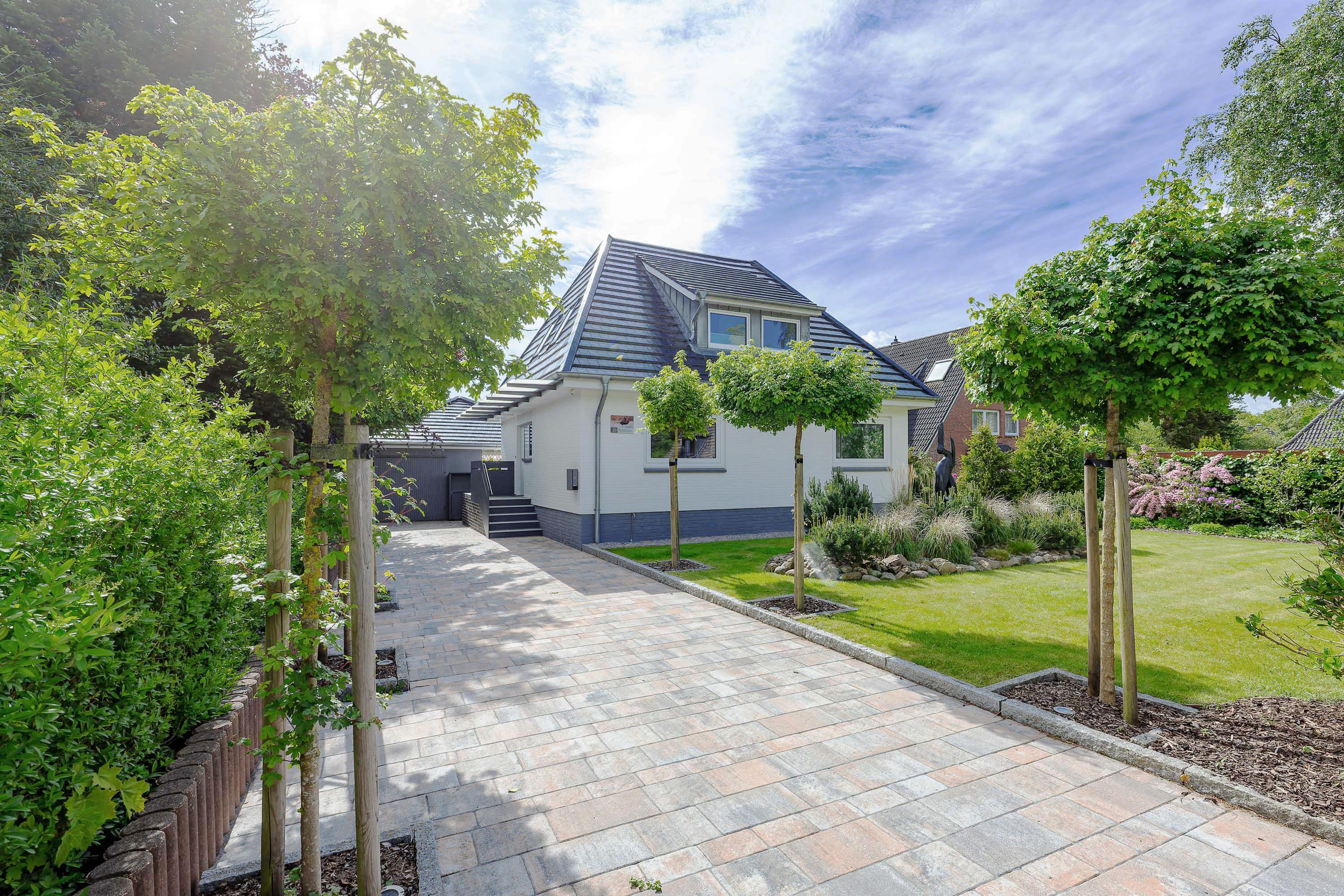 Auf die Insel! An einen schönen Strand, in ein wunderbares Haus! Ferien in einem Einzelhaus mit traumhaftem Garten, 300m zum Meer mit einem der schönsten Strände von Föhr. Was will man Mee(h)r? Treten Sie ein und genießen Sie! Sie spüren sofort, dass das Nikihüs mit seiner hochwertigen Ausstattung und seinen lichtdurchfluteten Räumen ein besonderes Urlaubsparadies ist. Genießen Sie im Strandkorb die ersten Sonnenstrahlen des Tages im Garten oder beim Frühstück auf dem Balkon. Die große überdachte Terrasse lädt mit ihren bequemen Sitzmöbeln zum Nachmittagskaffee oder zum Chillen ein. Für Abwechselung sorgen ein Besuch in der Gartensauna oder eine Runde Tischtennis. Und dies alles umgeben von einem mit Liebe zu Detail und Kunst angelegten Garten. Die behagliche Atmosphäre des Wohn- und Essbereiches im Haus mit einer hervorragend ausgestatteten Küche lädt sowohl zum Kochen als auch zum gemütlichen Essen ein. Für kuschelige Momente sorgt ein elektrisch beheizter Mylin-Kachelofen. Sie finden hier auch bei schlechtem Wetter einen Platz an der Sonne. Einen erholsamen Schlaf garantieren handgefertigte Birkenholzbetten mit elektrischer Verstellung und individuell konfigurierbaren Gesundheitsmatratzen. Lassen Sie abends beim Blick in die Flammen des elektrischen Kamins im Schlafzimmer die Seele baumeln und genießen Sie dabei ihre Lieblingsmusik. Unser persönlicher Tipp: Gesundheitsurlaub auf Föhr - kombiniert mit einer Badekur - das ist Erholung pur!