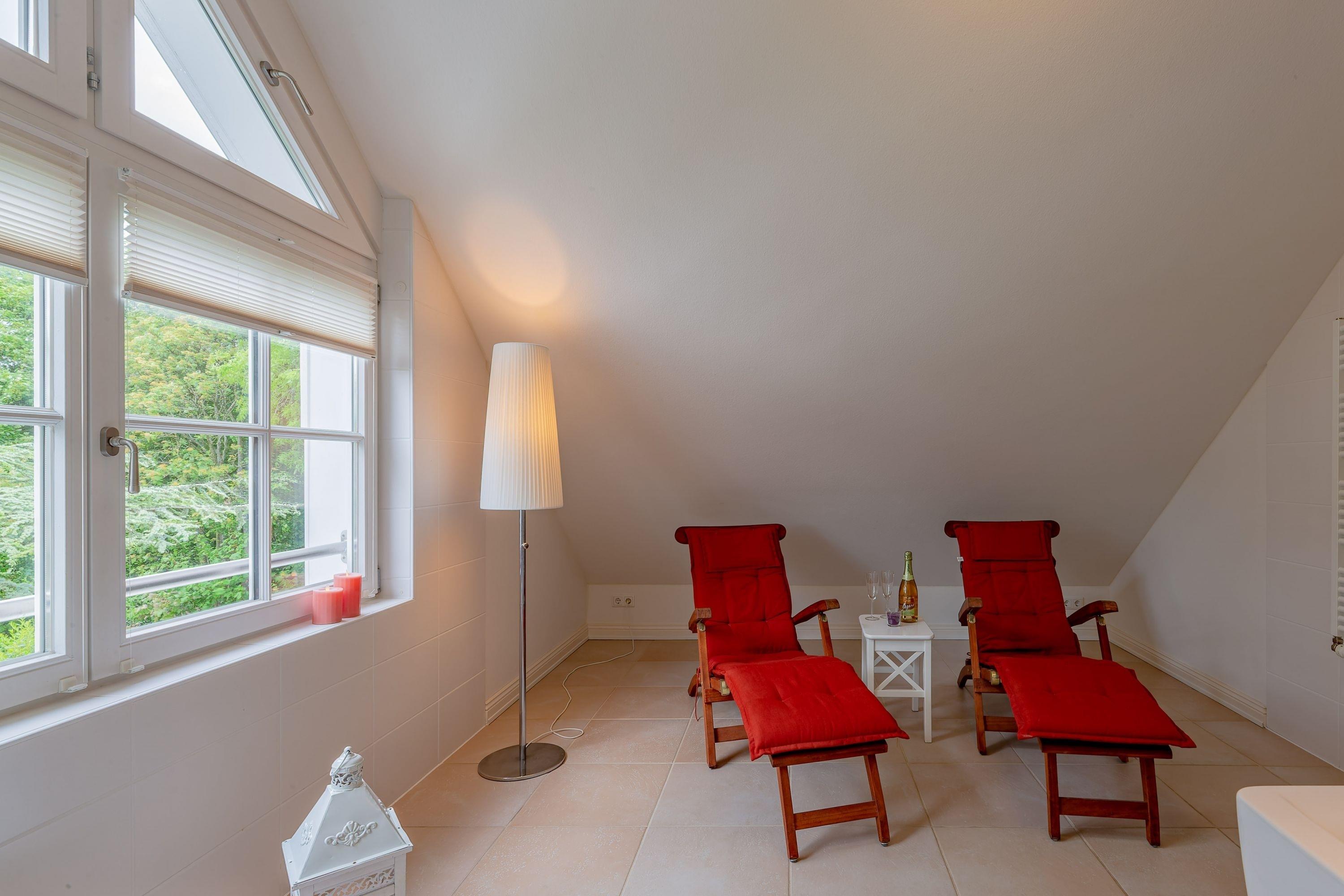 Wir begrüßen Sie ganz herzlich in unserem Haus am Wiesenweg. Das Objekt mit 3 Wohnungen liegt in zentraler Lage am Südstrand von Wyk. In nur wenigen Gehminuten erreichen Sie die Promenade und den Hauptbadestrand. In unmittelbarer Nähe befinden sich die Erholungs- und Einkaufsmöglichkeiten sowie Cafes und Restaurants. Genießen Sie Ihren Urlaub in der exklusiv ausgestatteten Penthouse Wohnung. Hier finden Sie von der Sauna bis zum Kaffeevollautomaten alles was Ihren Urlaub perfekt macht. Von Mai bis September steht Ihnen ein Strandkorb zur Verfügung. Preisersparnis für Sie von 10,00 Euro pro Tag bis 126,00 Euro bei einer Buchung von drei Wochen!