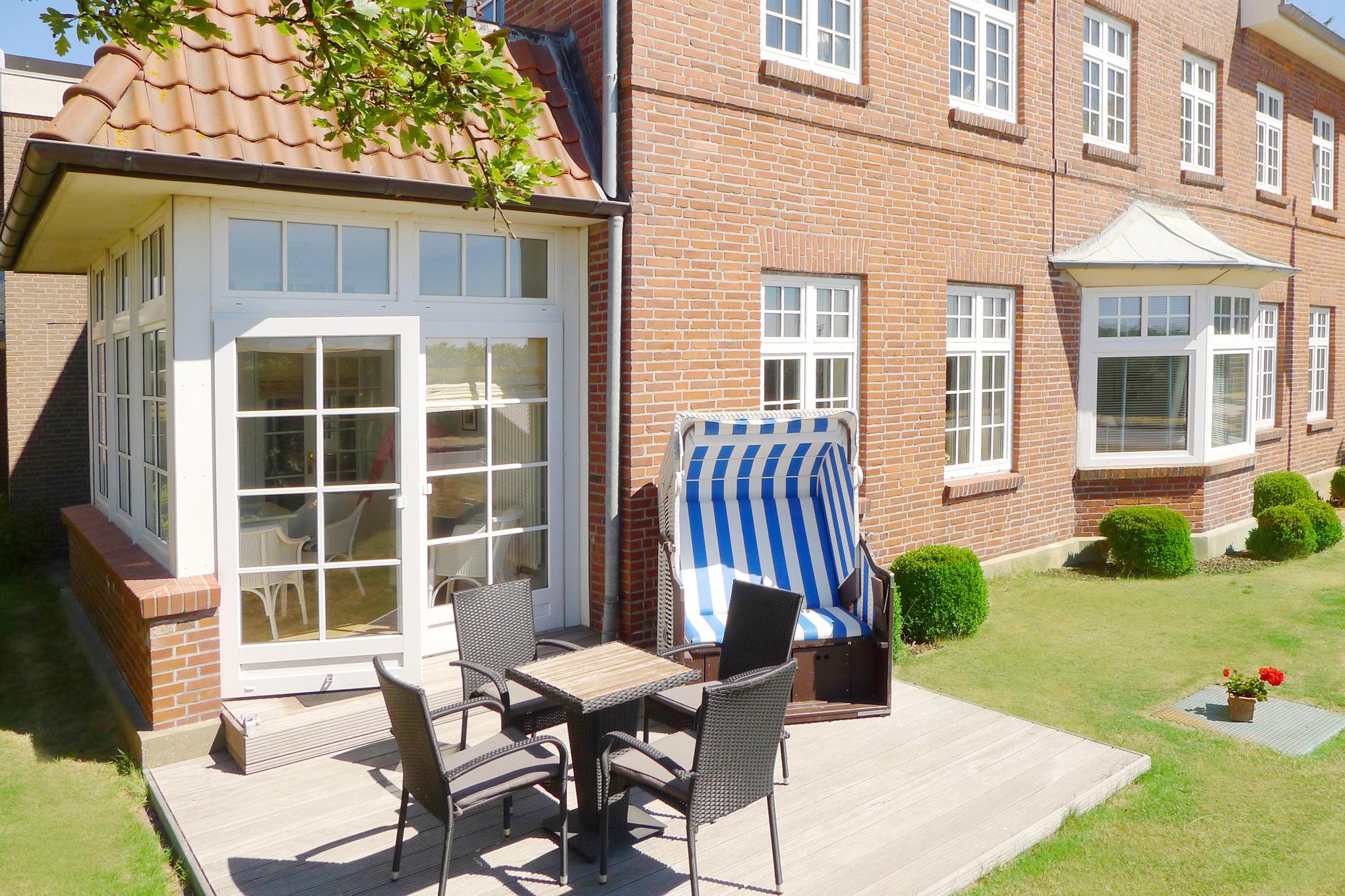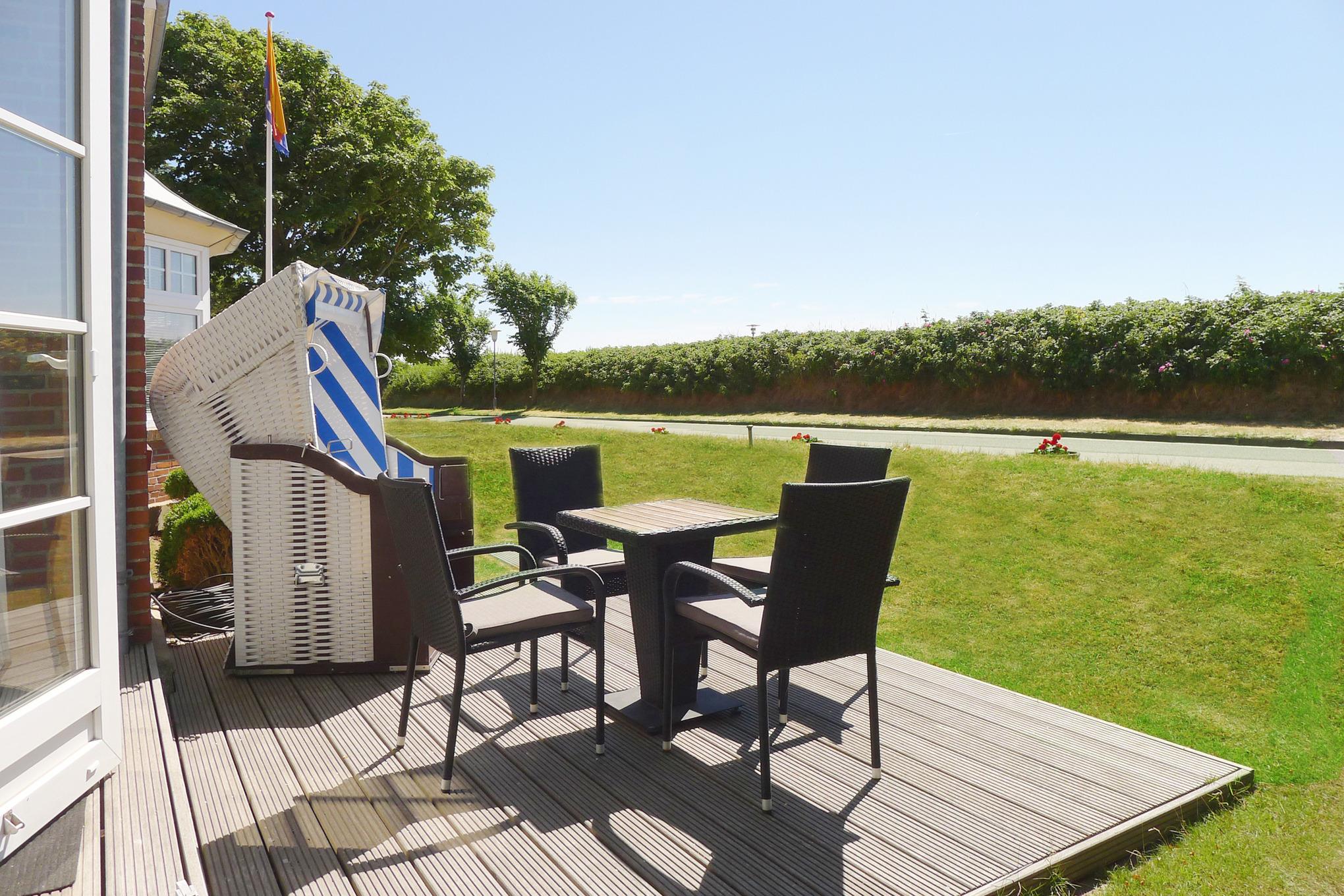 Genießen Sie eine moderne Ferienwohnung mit Terrasse direkt am Wyker Südstrand auf Föhr.