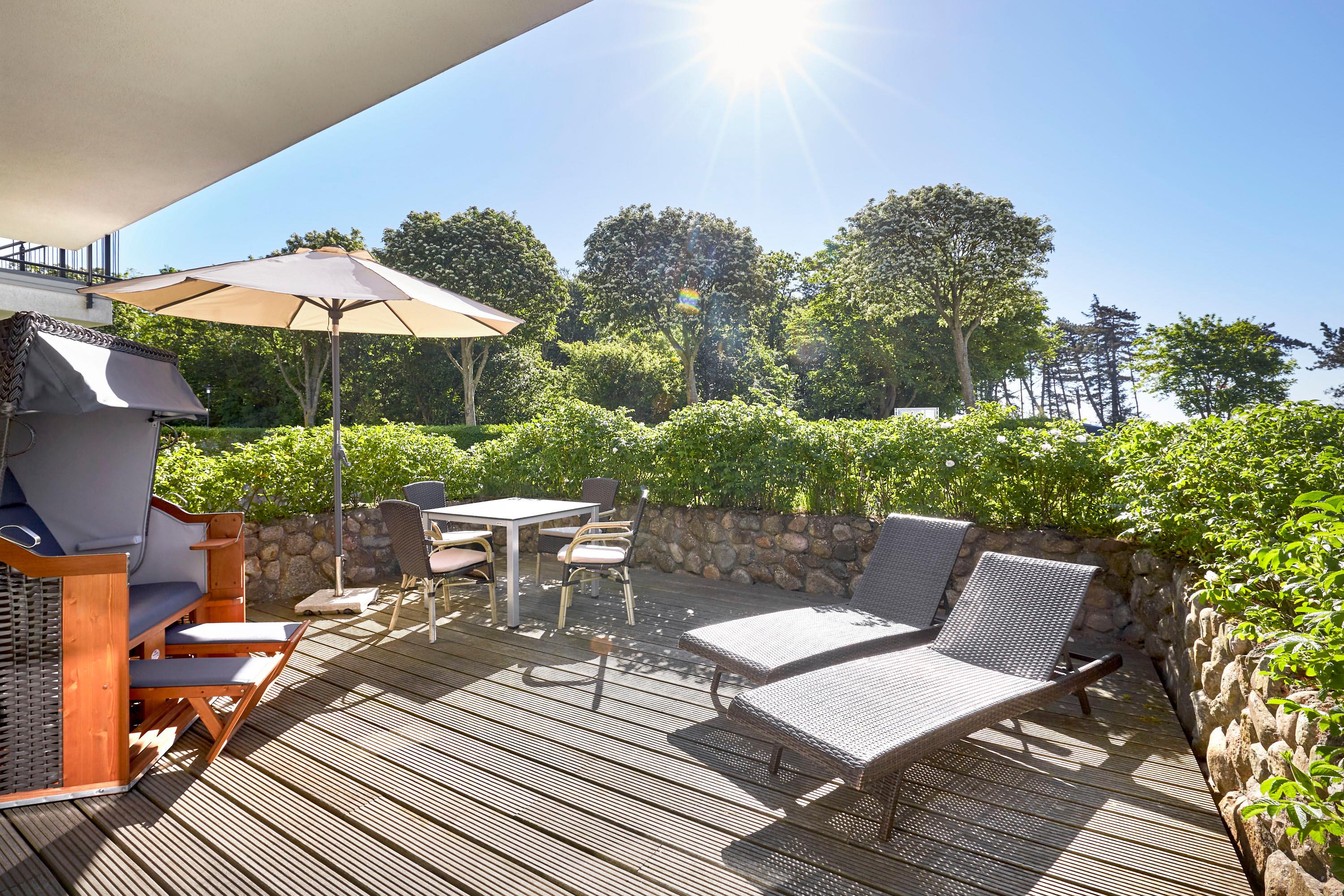 Auf einem wunderbar gelegenen 3.500 qm großem Grundstück, nur wenige Meter vom Strand entfernt, befindet sich die exklusive Wohnanlage Quartier Rothtraut. Hier haben Sie die Nordsee direkt vor der Tür. In der Wohnung 1 im Erdgeschoss werden Sie einen unvergesslichen Urlaub erleben. Zwei Terrassen laden zum Urlaub im Freien ein. Genießen Sie die Sonne schon zum Frühstück! Die Küche mit Kochinsel ist hochmodern eingerichtet, und der Weinkühlschrank bietet Platz für Ihre eigenen Weine. Im Untergeschoss steht Ihnen ein eigener Wellnessbereich mit Sauna und Duschbad zur Verfügung. Genießen Sie zu jeder Jahreszeit einen traumhaften Urlaub auf der Nordseeinsel Föhr.