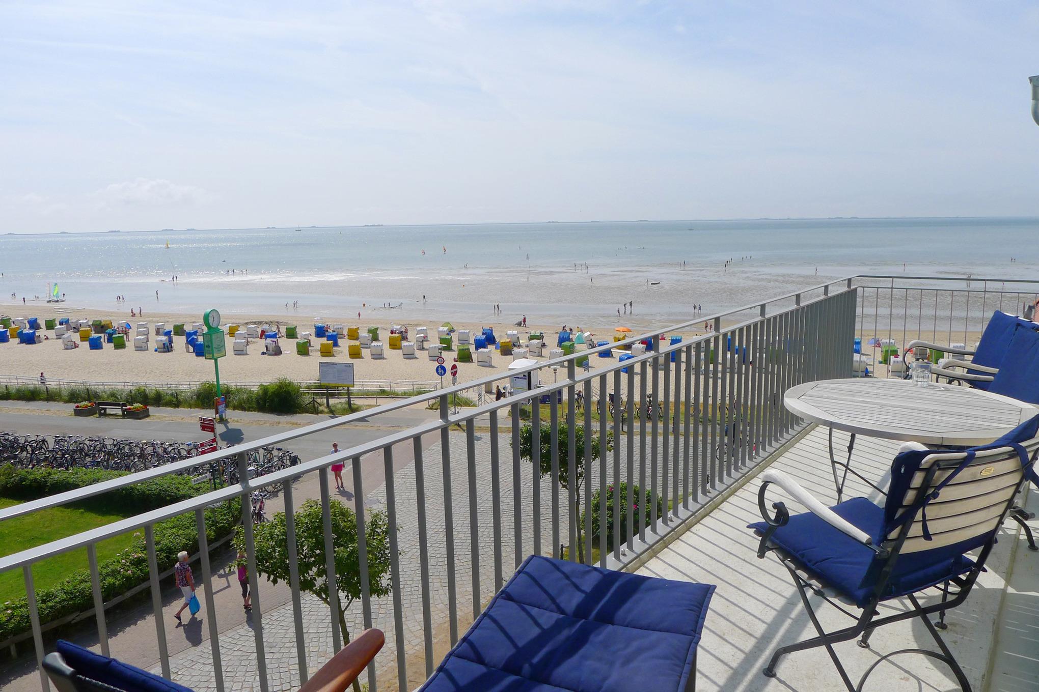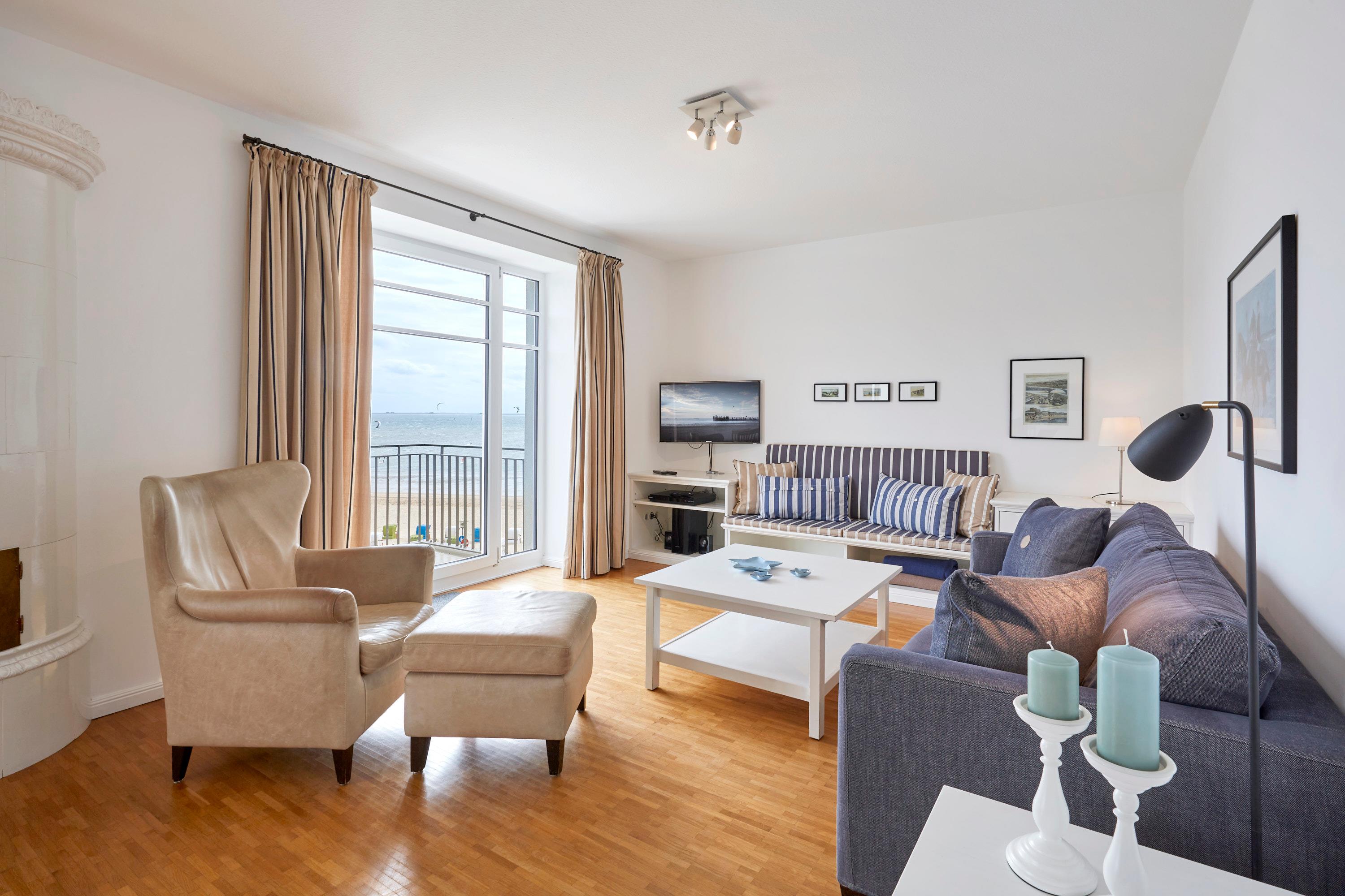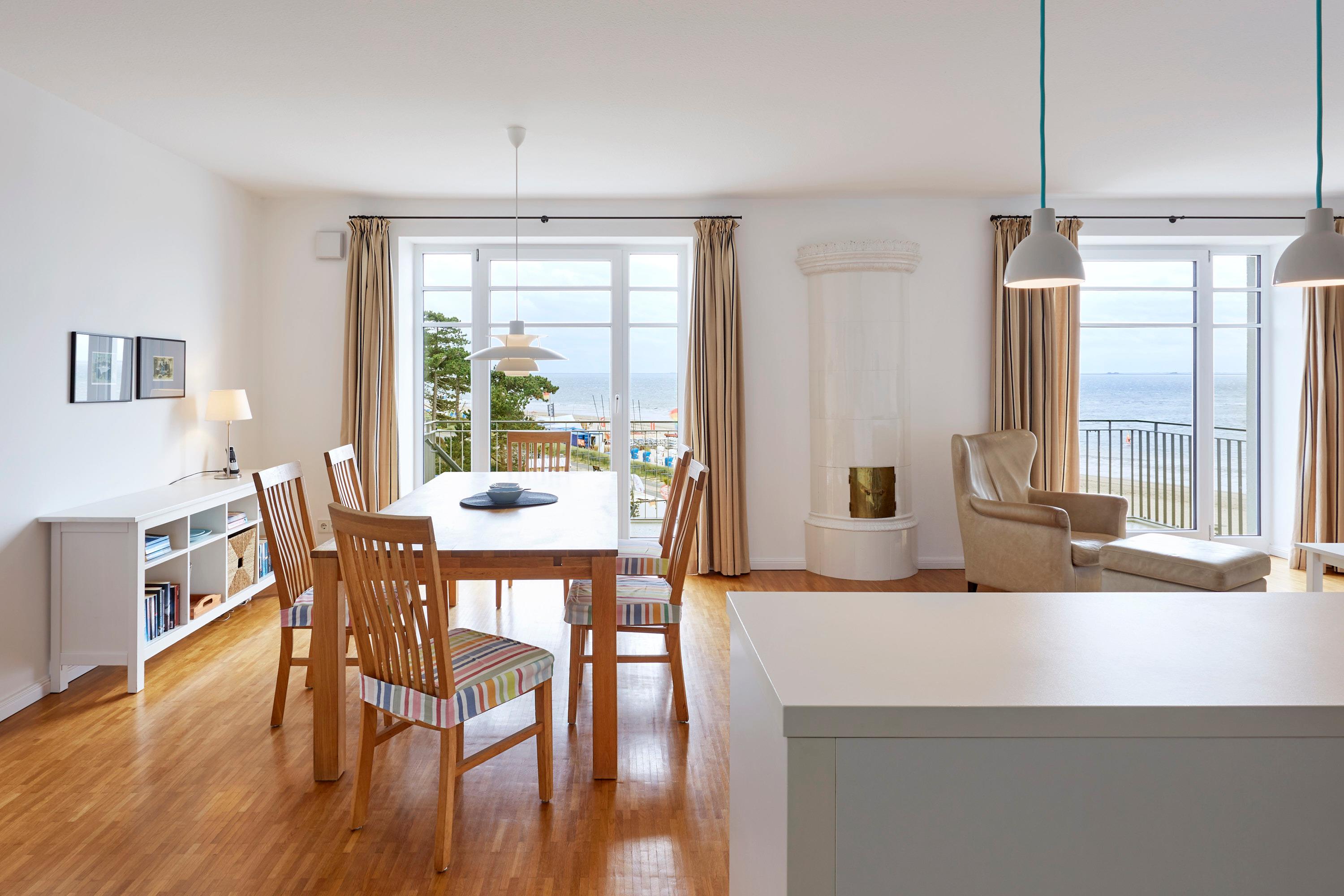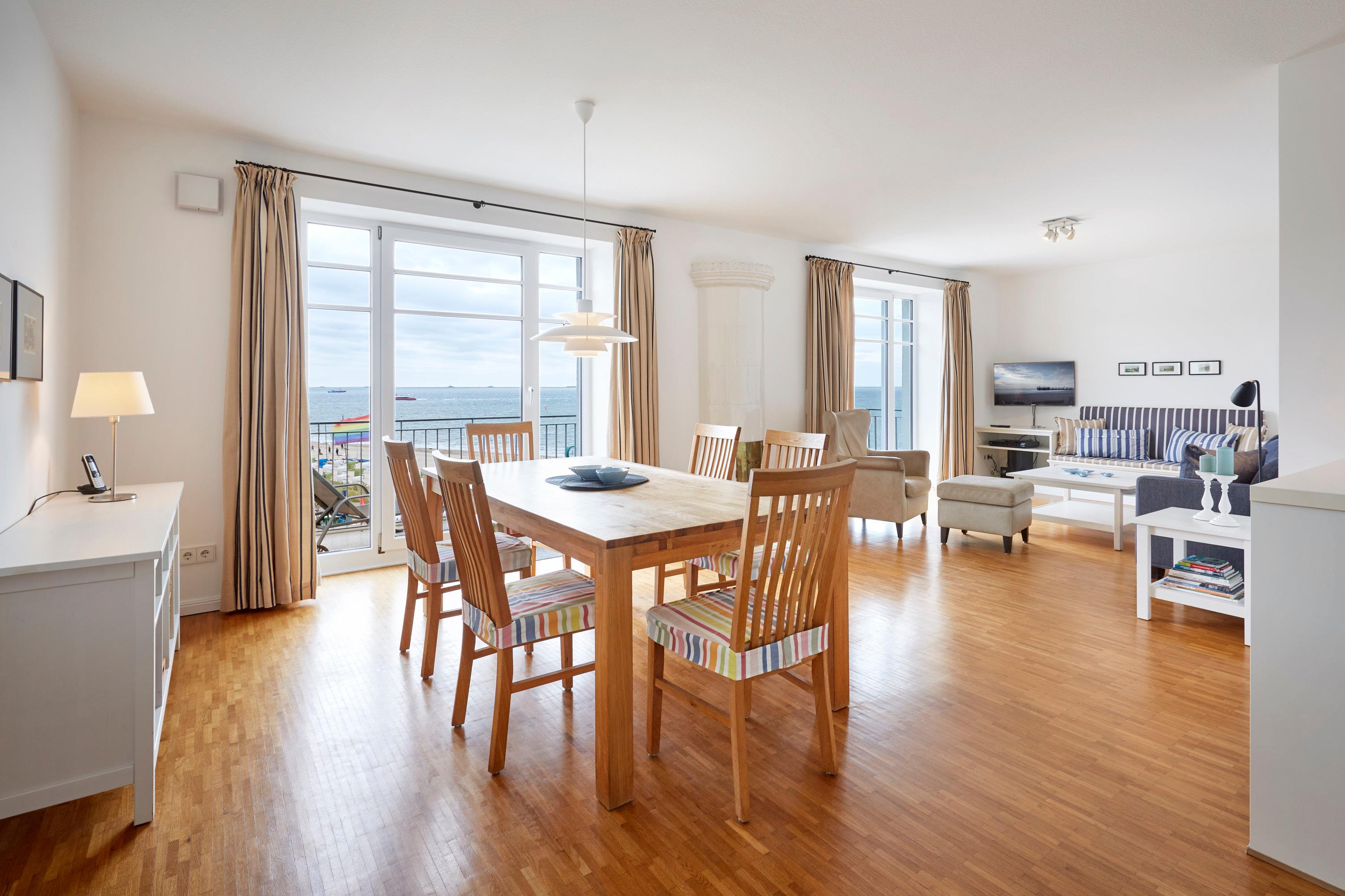 Wir begrüßen Sie im Schloß am Meer", der exklusiven Wohnanlage direkt am Wyker-Südstrand gelegen. Ihre Wohnung liegt im 3 Obergeschoss hinter der historischen Fassade, welche beim Neubau erhalten wurde. Hier haben Sie einen Balkon für sich allein und einen Blick auf die Nordsee und die Halligen. Dieser einzigartige Panoramablick ist unvergesslich. In nur wenigen Schritten befinden Sie sich auf der Promenade, die Sie ins Herz von Wyk führt. Hier laden Geschäfte zum Bummeln ein, Cafes und Restaurants verwöhnen Sie mit kulinarischen Köstlichkeiten."