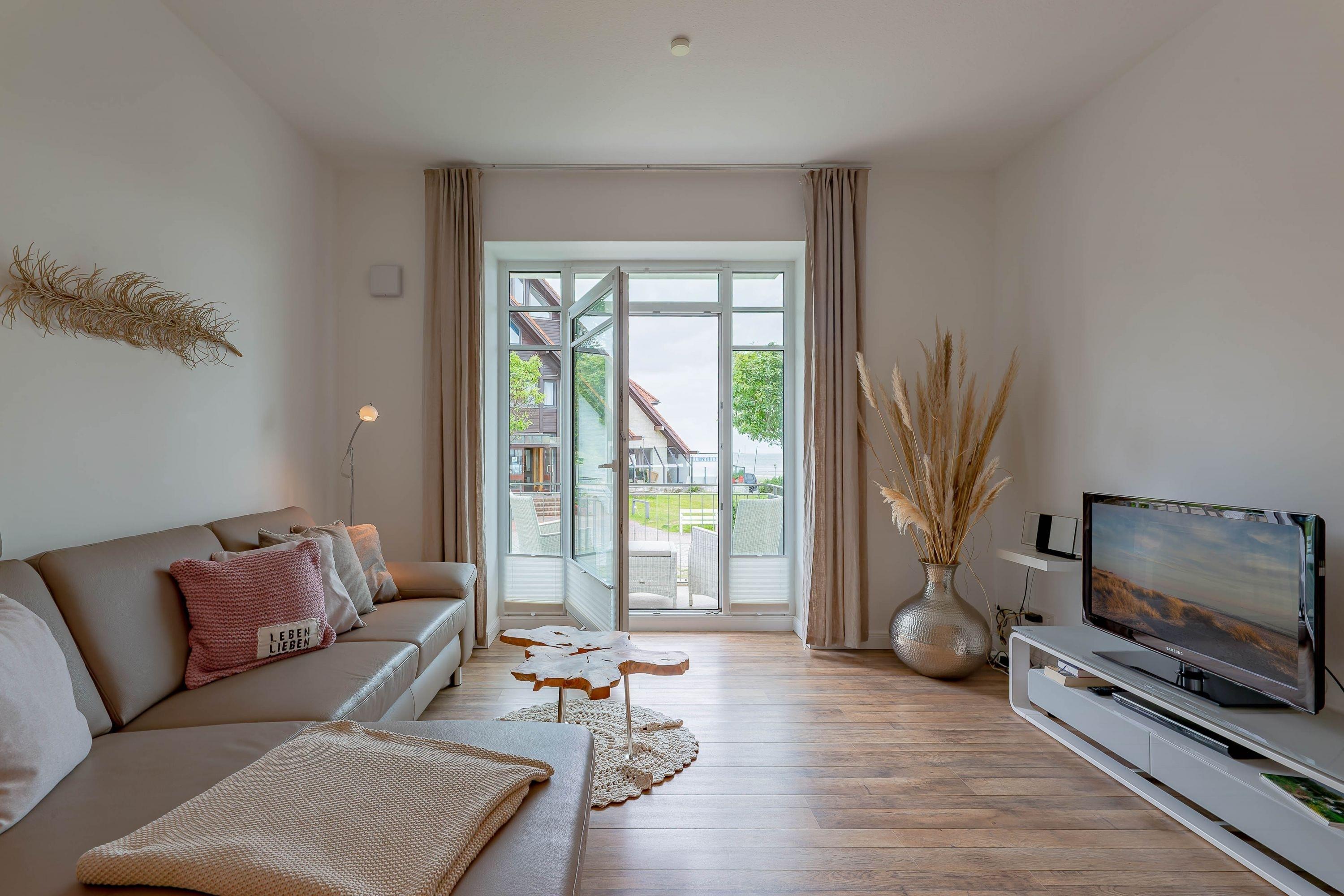 Wir begrüßen Sie im Schloß am Meer, der exklusiven Wohnanlage direkt am Wyker-Südstrand gelegen. Ihre Wohnung liegt im 1.Obergeschoss. Hier haben Sie einen Balkon und den Blick auf die Nordsee und die Halligen. Dieser einzigartige Panoramablick ist unvergesslich. Genießen Sie die Sonne schon beim Frühstück! In nur wenigen Schritten befinden Sie sich auf der Promenade, die Sie ins Herz von Wyk führt. Hier laden Geschäfte zum Bummeln ein, in Cafés und Restaurants werden Sie mit kulinarischen Köstlichkeiten verwöhnt.