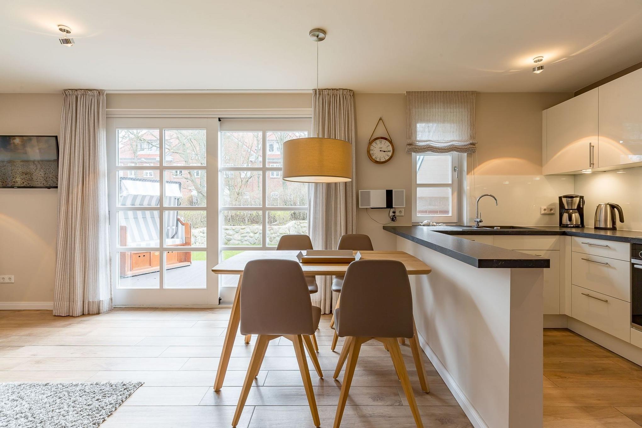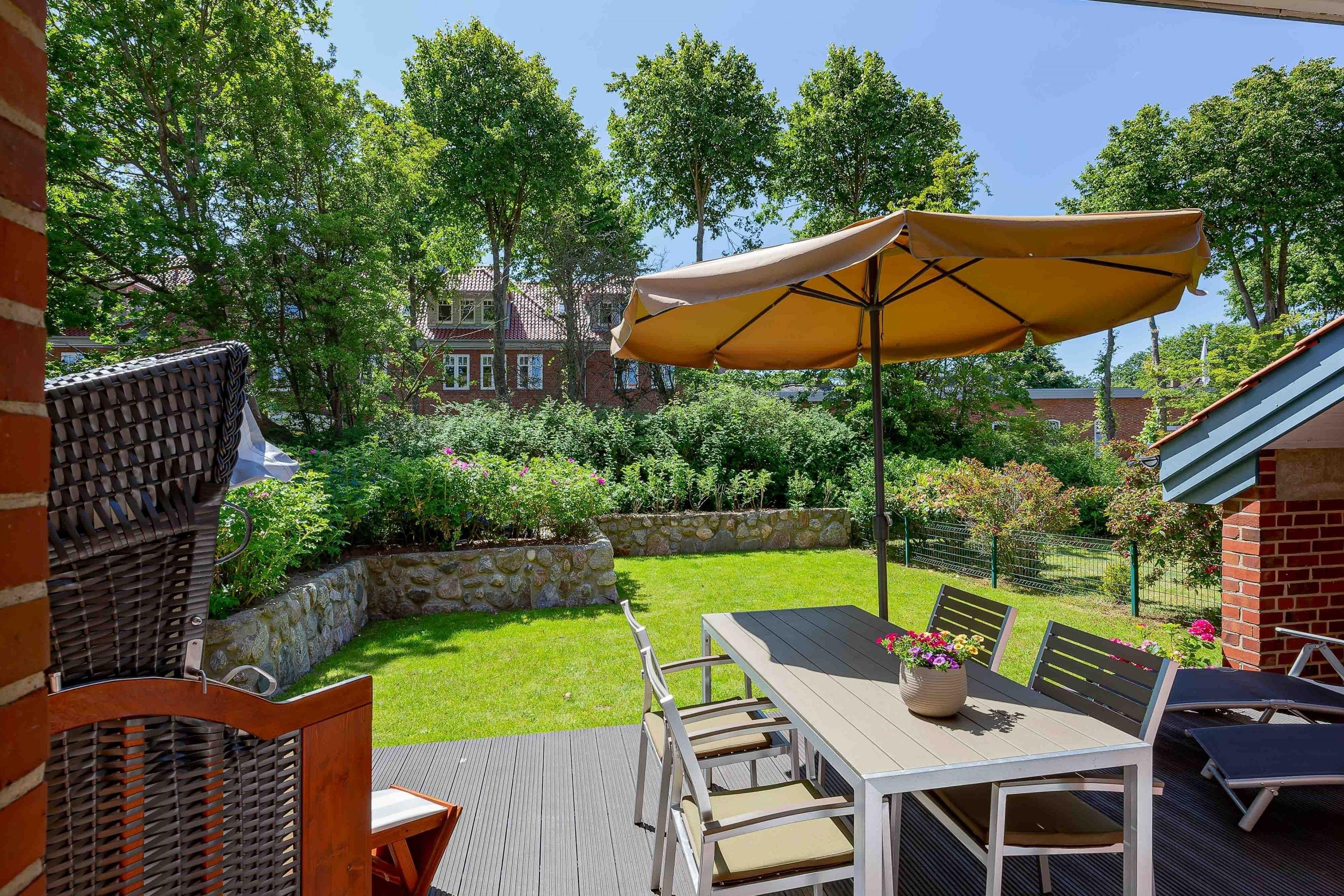 Herzlich Willkommen in Ihrem Urlaubsdomizil. Sie sind ganz in der Nähe des Wyker Südstrand. Ein paar Schritte durch den alten Kurpark und vor Ihnen liegt der Strand und die Strandpromenade. Hier haben Sie alles was ein Nordseeurlaub ausmacht. Meeresrauschen, Möwengeschrei, Sandstrand, eine leichte Brise und dazu der Blick bis zu den Halligen. Strandkörben laden zum Sonnenbaden ein und das Meer zum Abkühlen. In Ihrer modernen und mit viele Liebe zum Detail ausgestatteten Erdgeschoss-Wohnung wird es Ihnen an nichts fehlen. Ob Sie im Sommer auf der Terrasse die Sonnenstrahlen und die Wärme genießen oder in der kühlen Jahreszeit die Sauna Ihr persönlicher Wellnessbereich ist - zu jeder Jahreszeit ist der Aufenthalt lohnenswert. Ein Fahrradverleih, Bäckerei, Bushaltestelle, Restaurants - alles erreichen Sie in wenigen Gehminuten. Bummeln Sie über die Strandpromenade nach Wyk oder starten Sie eine Radtour zu den schönen Inseldörfern.