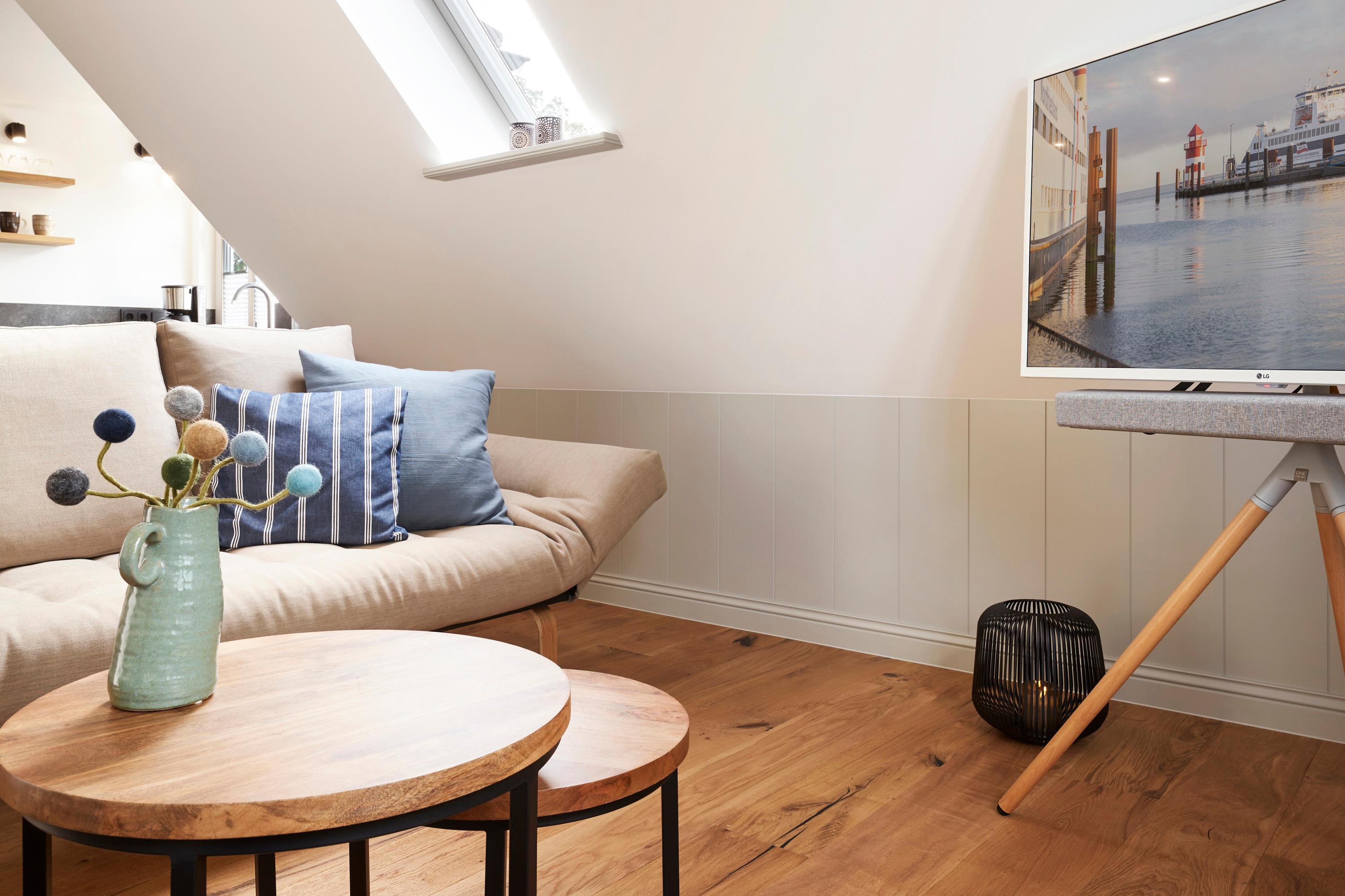 Modernes Studio-Appartement in Wyk auf Föhr, nur 5 Minuten vom Strand entfernt, ideal für erholsame Urlaubstage zu zweit.