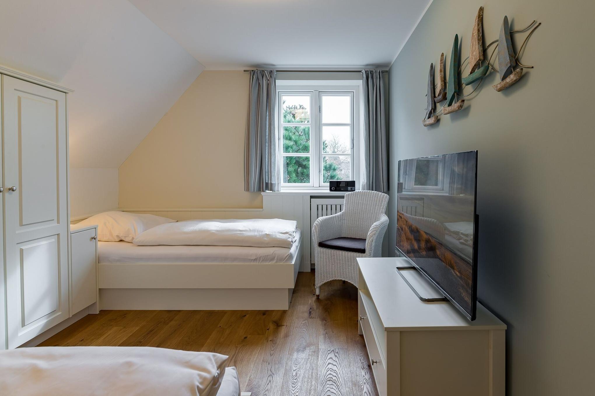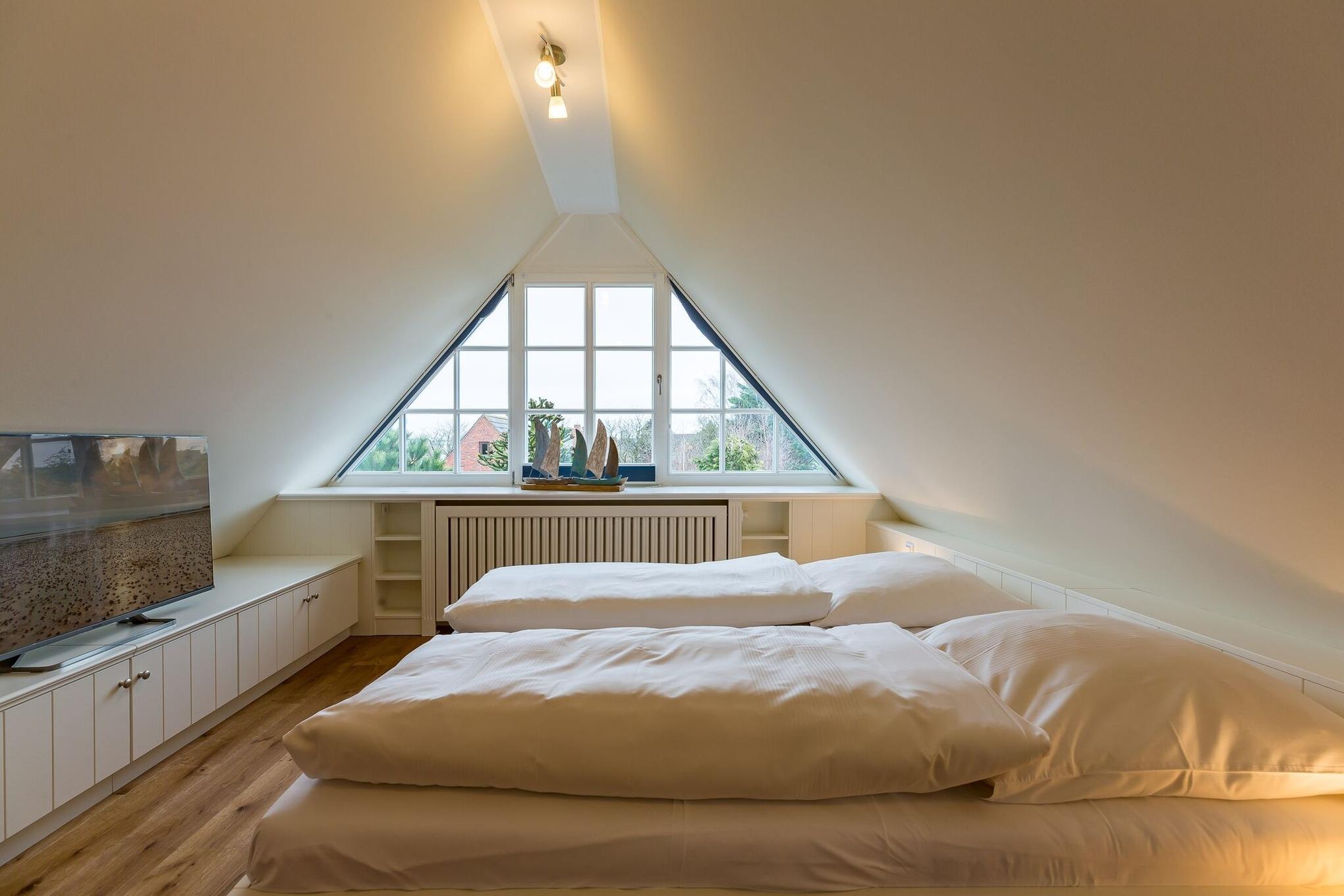 Wir begrüßen Sie in Ihrem Ferienhaus „Wyker Home“. Die große und modern eingerichtete Haushälfte bietet ausreichend Platz für sechs Personen. Das Haus bietet für jede Jahreszeit einen erholsamen Urlaub. Frühjahr und Sommer genießen Sie das Frühstück auf der Terrasse und in der dunklen Jahreszeit ist ein Feuer im Kamin genau das richtige um im Urlaub zu entspannen. Die Randlage in Wyk ist perfekt um mit wenigen Schritten in der Stadt oder auch an der Promenade und am Strand zu sein.