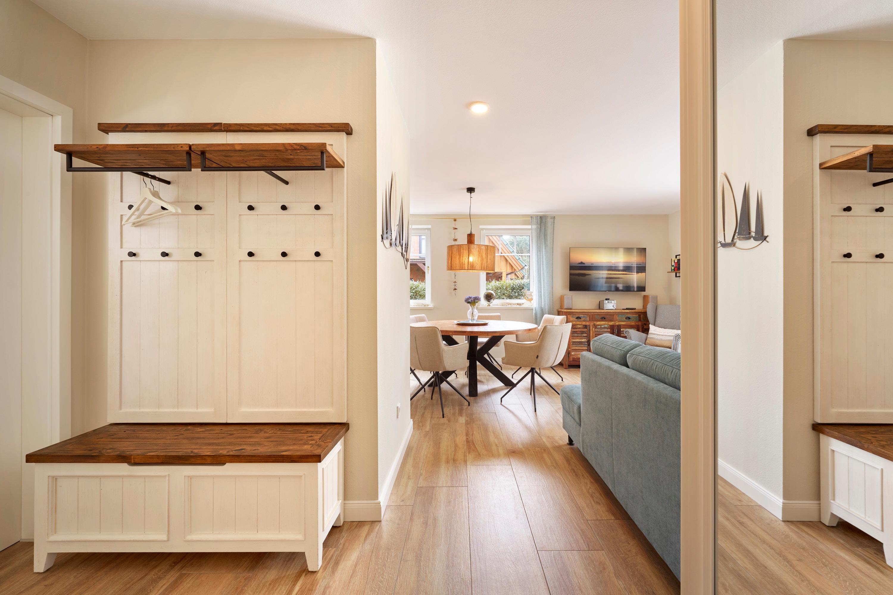 Die neu gebaute Ferienwohnung Sonnendeck verbindet modernes Design mit der warmen Atmosphäre eines norddeutschen Küstenrefugiums. Jedes Detail wurde mit Liebe zum Meer und seiner natürlichen Schönheit gestaltet – helle Farben, natürliche Materialien und eine stilvolle maritim inspirierte Dekoration lassen Sie sofort in den Nordsee-Lifestyle eintauchen.