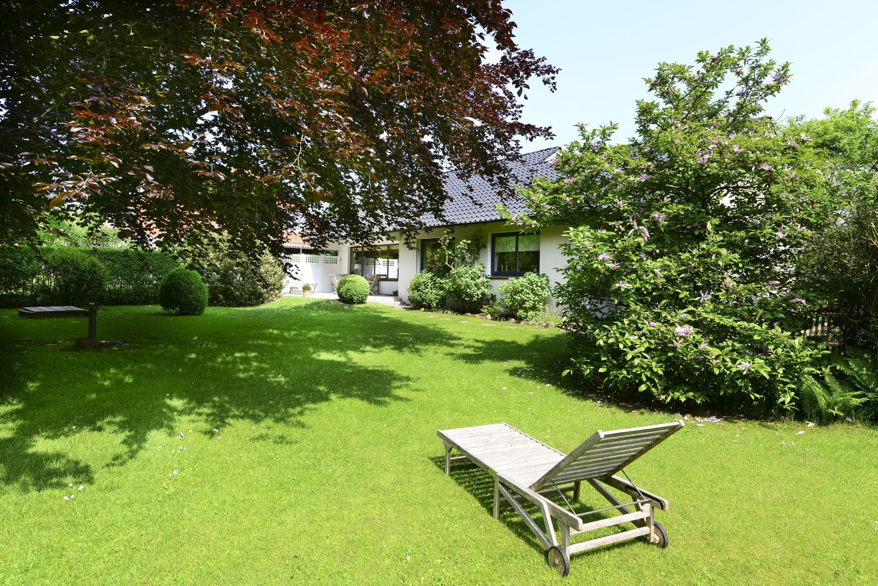 Der Garten ist ein wahres Paradies, das mit seinem alten Baumbestand und den blühenden Hecken einen parkähnlichen Charme versprüht. Die möblierte Holzterrasse lädt dazu ein, den ganzen Nachmittag in der Sonne zu verbringen und den herrlichen Garten zu genießen. Das Grundstück ist komplett eingezäunt, was für zusätzlichen Komfort sorgt.