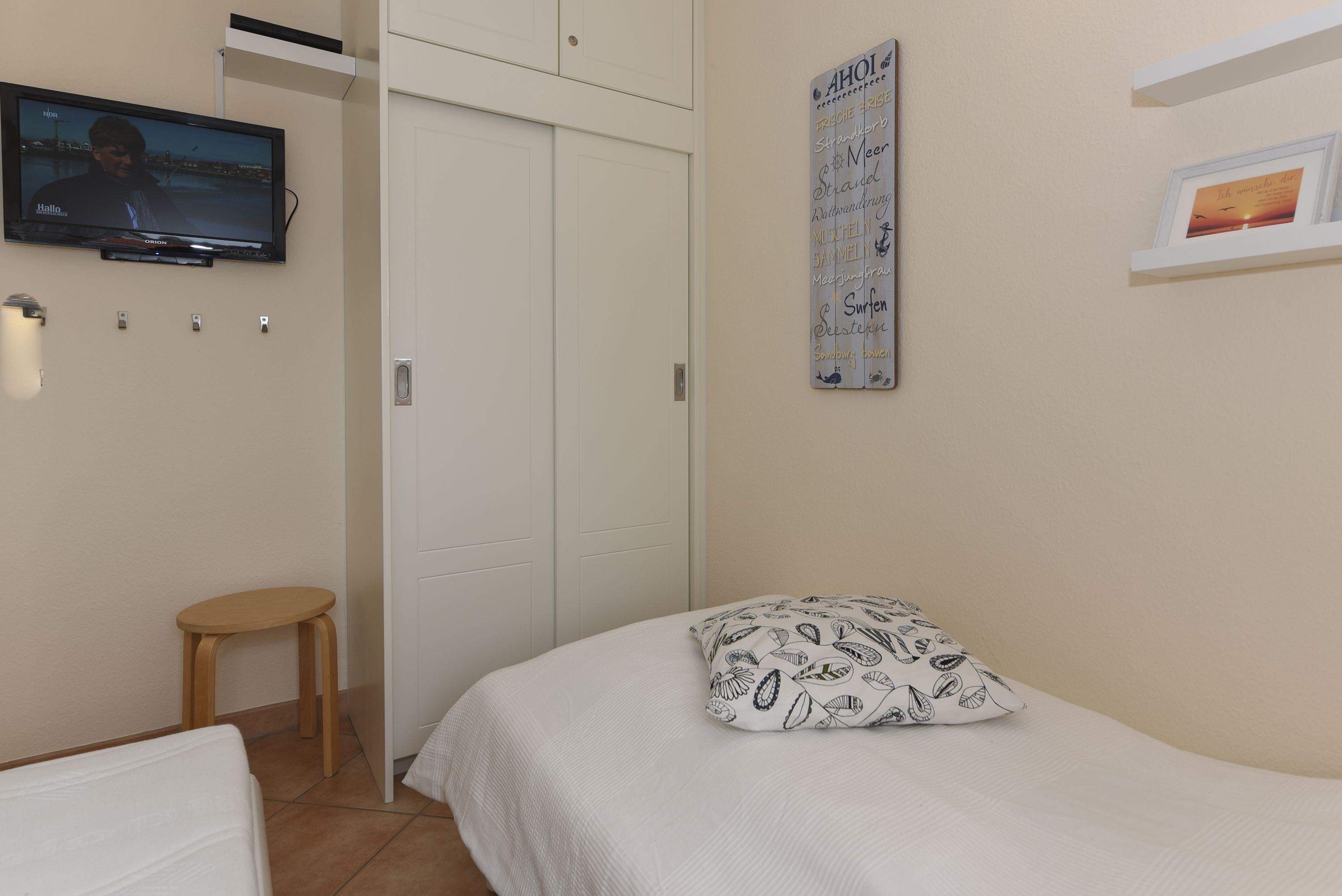 das zweite Schlafzimmer ist mit zwei Einzelbetten ausgestattet und verfügt über einen weiteren TV mit DVD-Player.