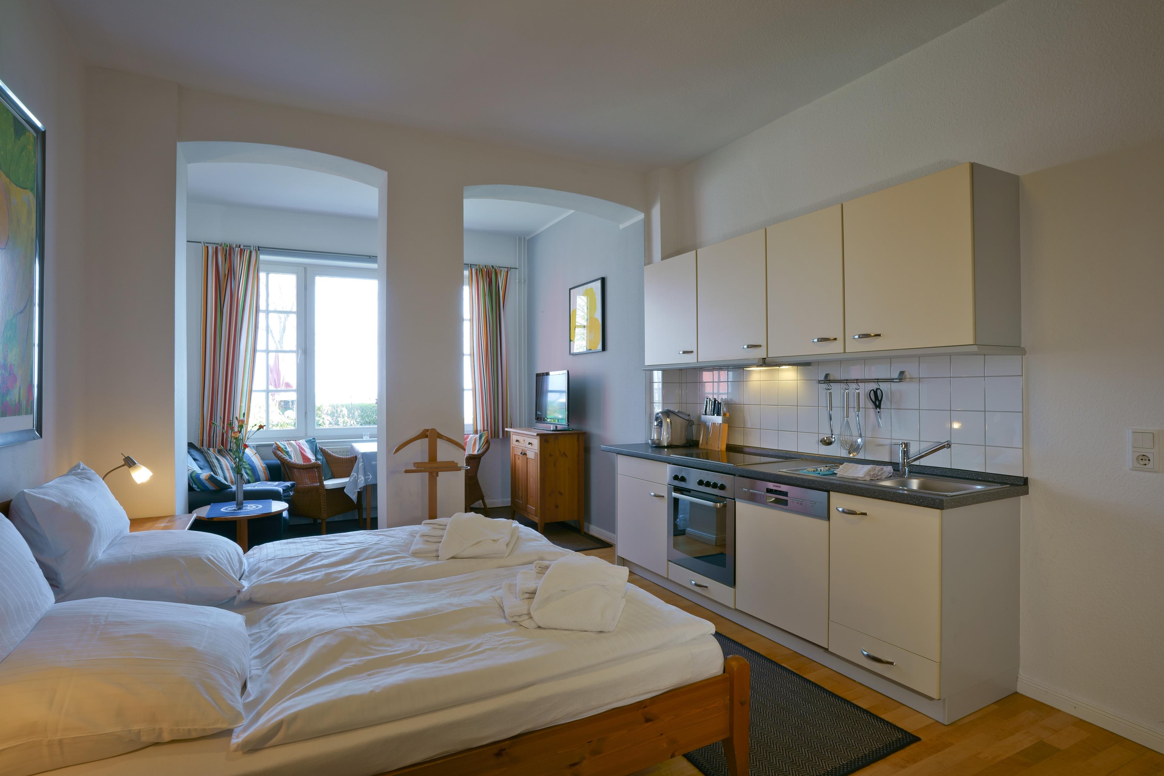 Die charmante Wohnung 01 ist ein 1-Zimmer-Apartment im Erdgeschoss und begeistert mit einer großen Fensterfront, die Ihnen einen traumhaften Meerblick bietet.
