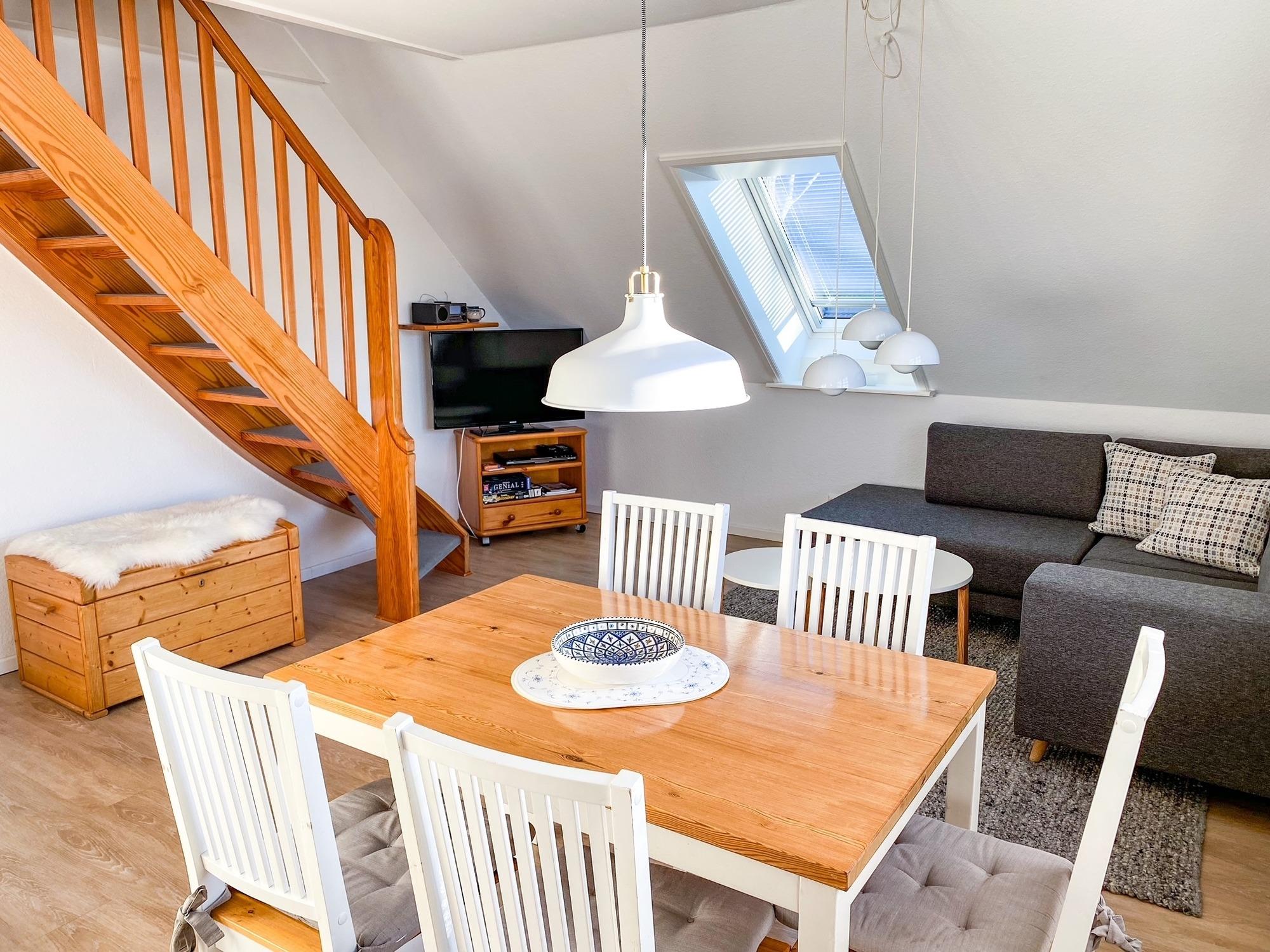 Die Wohnung 04 ist ein einladendes 3-Zimmer-Appartement, welches sich über die erste Etage sowie das Dachgeschoss erstreckt - perfekt für bis zu vier Gäste.