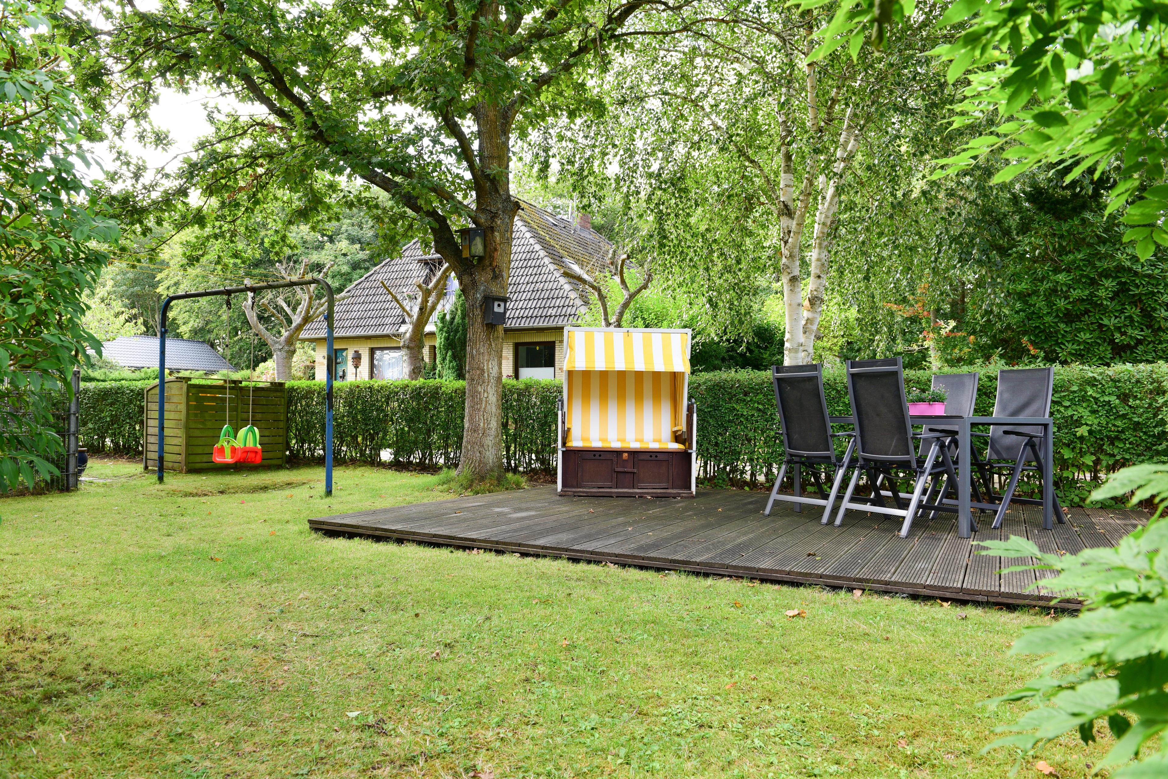 Für entspannte Stunden steht Ihnen in Ihrem eignen Gartenteil mit Terrasse eine Schaukel und Grillmöglichkeiten zur Verfügung.