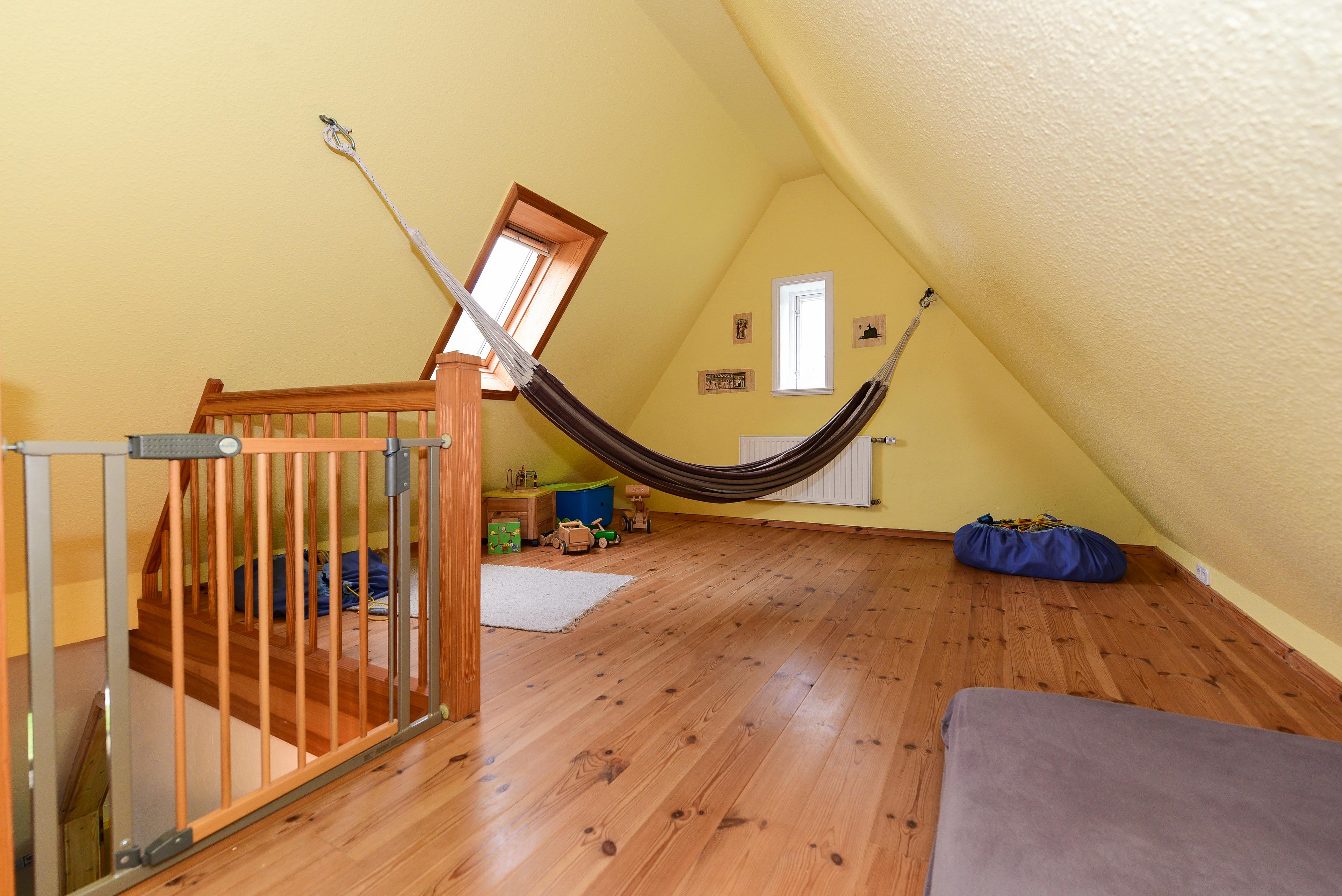 Die Wohnung erstreckt sich bis in den offenen Spitzboden, welcher zu einem Spielparadies ausgebaut wurde.