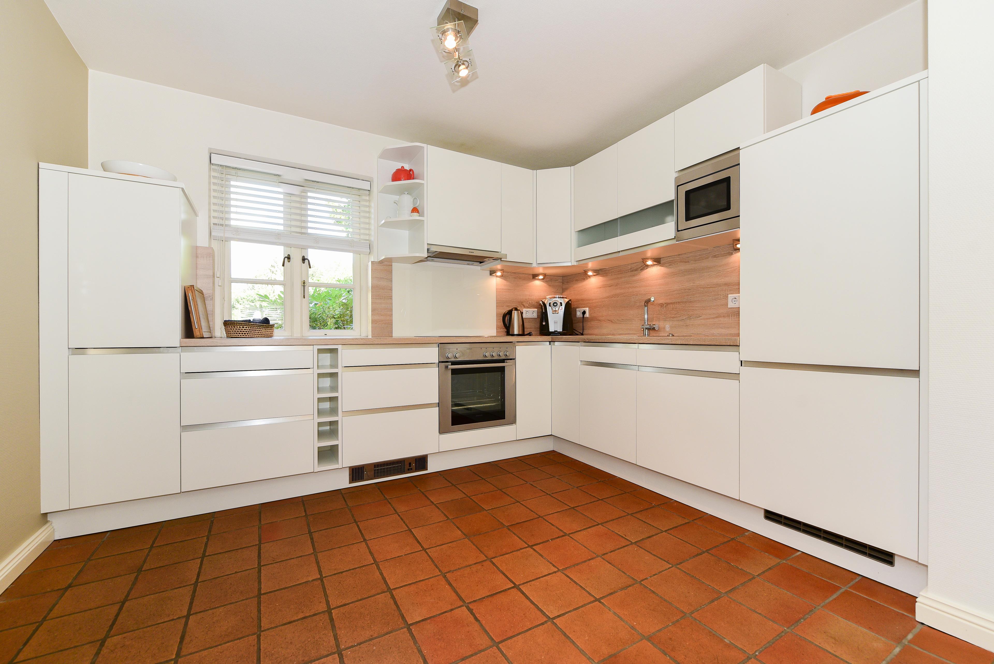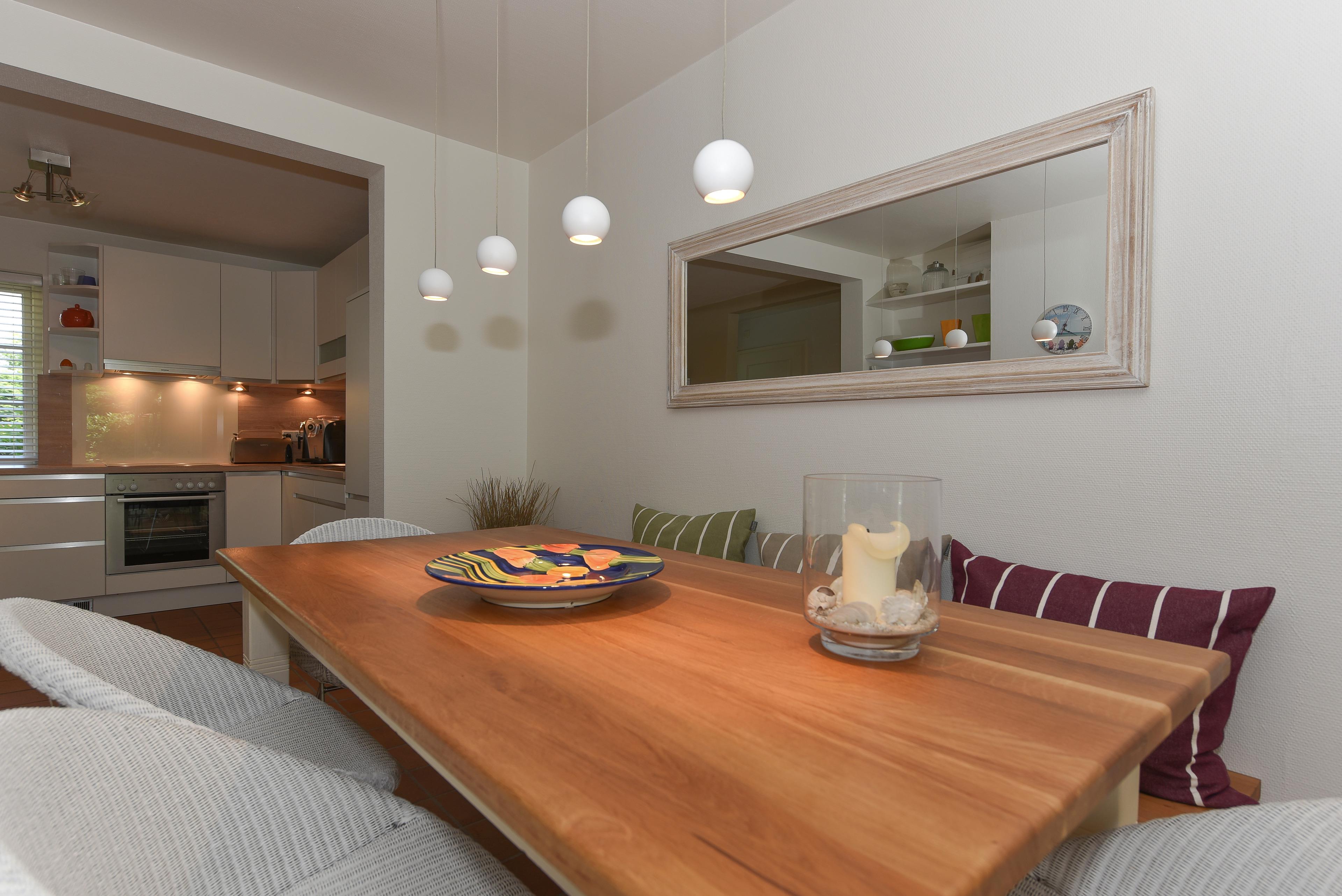 Die angrenzende offene Küche mit modernster Technik lässt keine Wünsche offen und macht das Kochen zum Vergnügen.