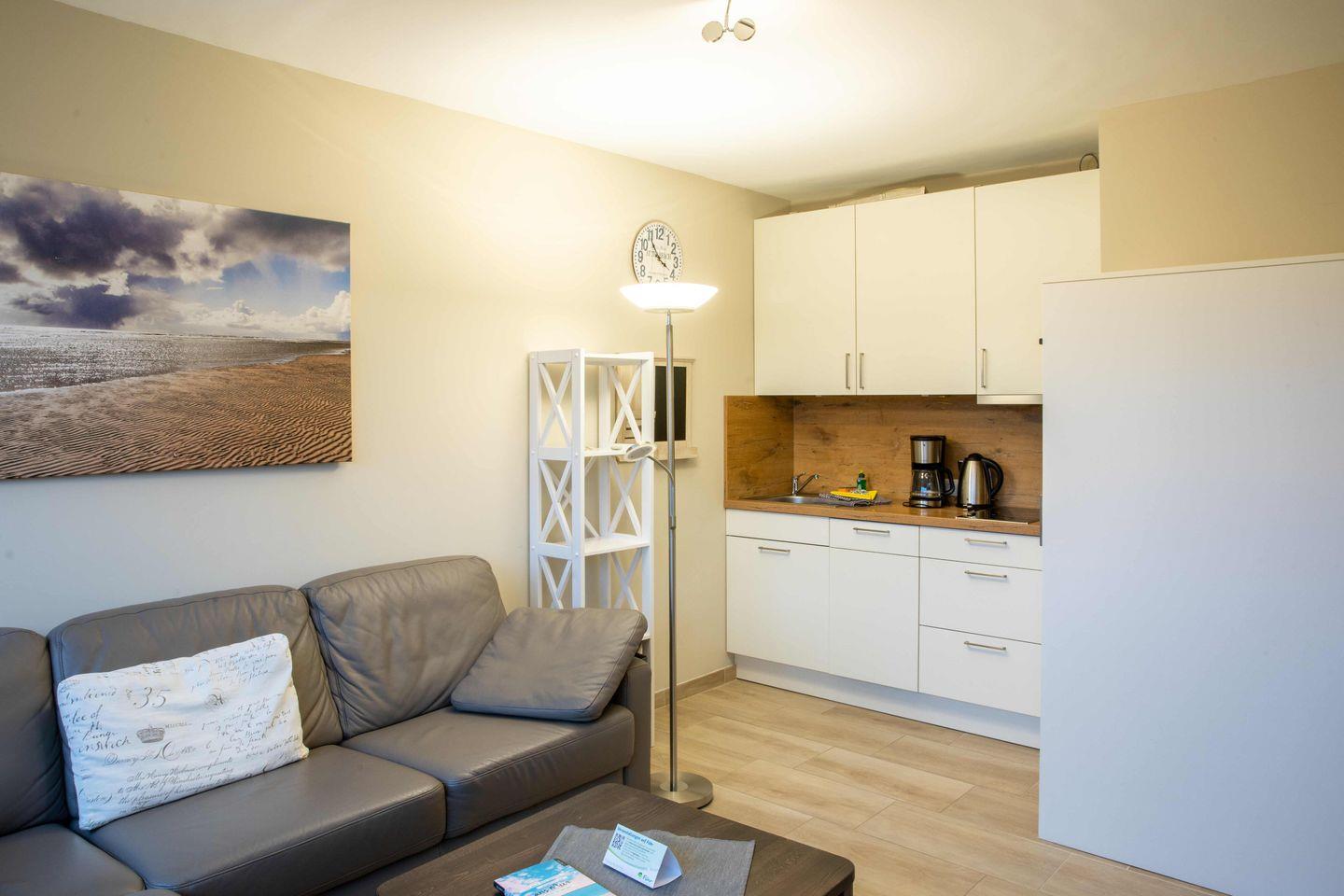 Moderne 2-Zimmer-Ferienwohnung mit Südbalkon und eigenem Strandkorb nahe Wyker Zentrum und Strand.