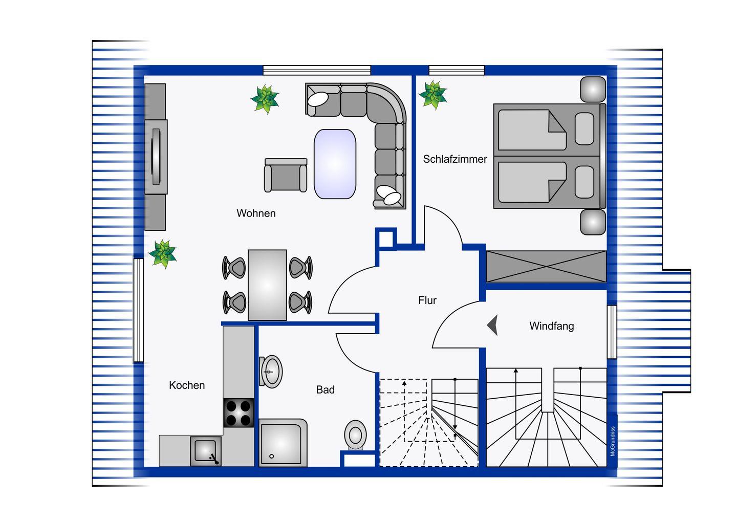 Gemütliche Ferienwohnung Brise in Wyk auf Föhr, nur 300 m vom Südstrand mit kostenlosem Strandkorb, ideal für erholsamen Urlaub.