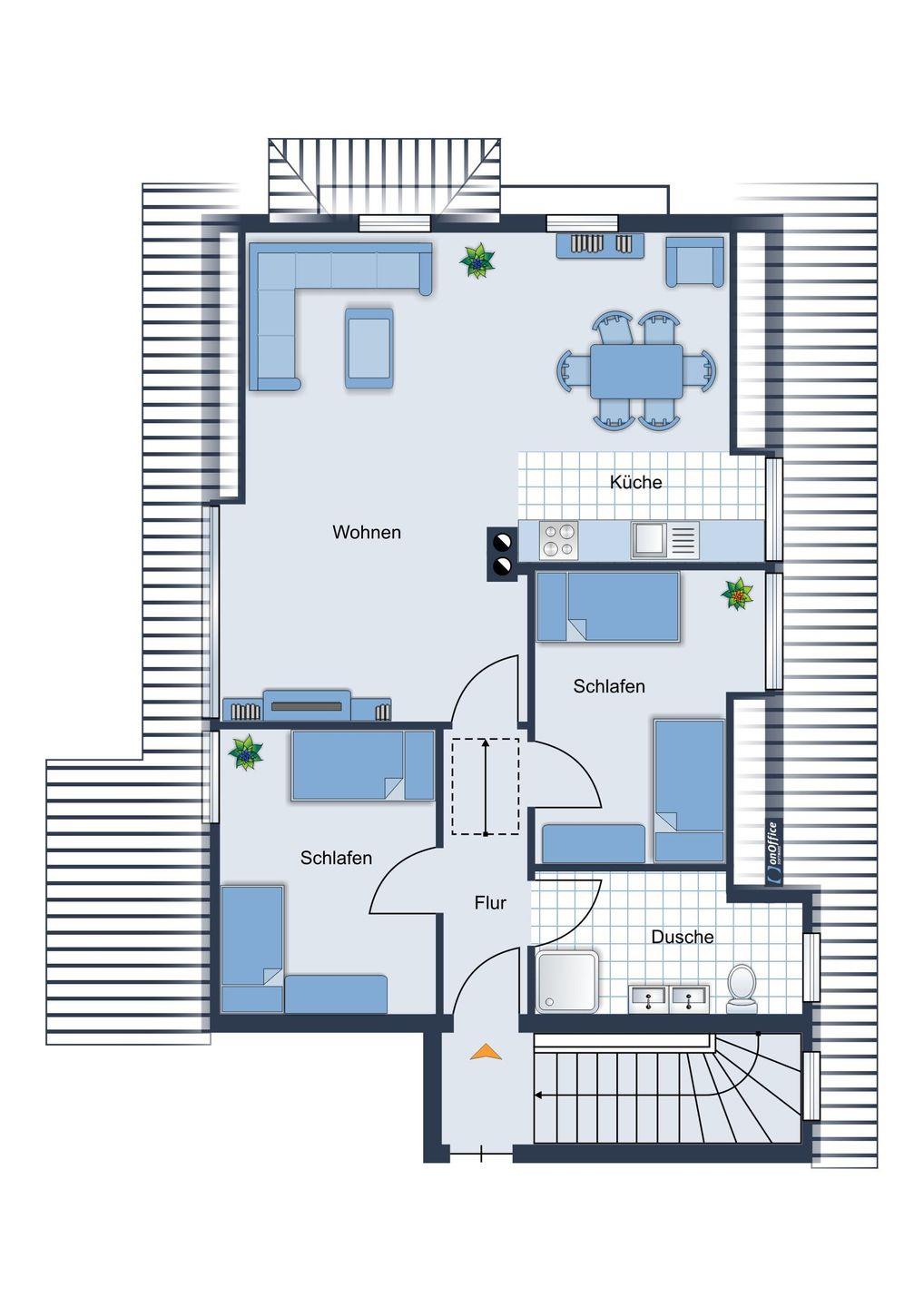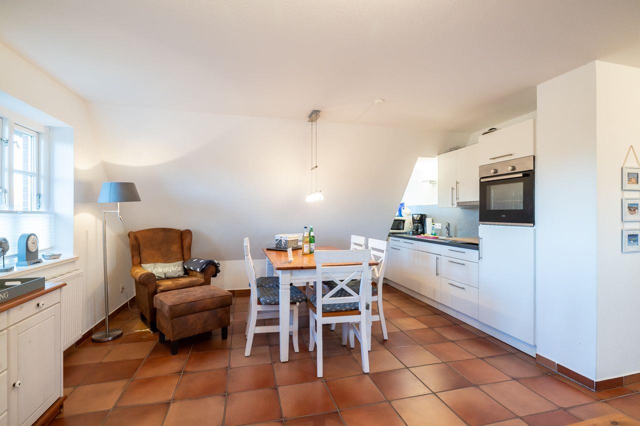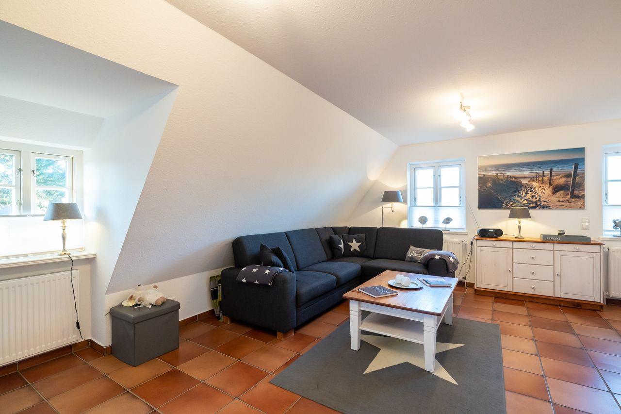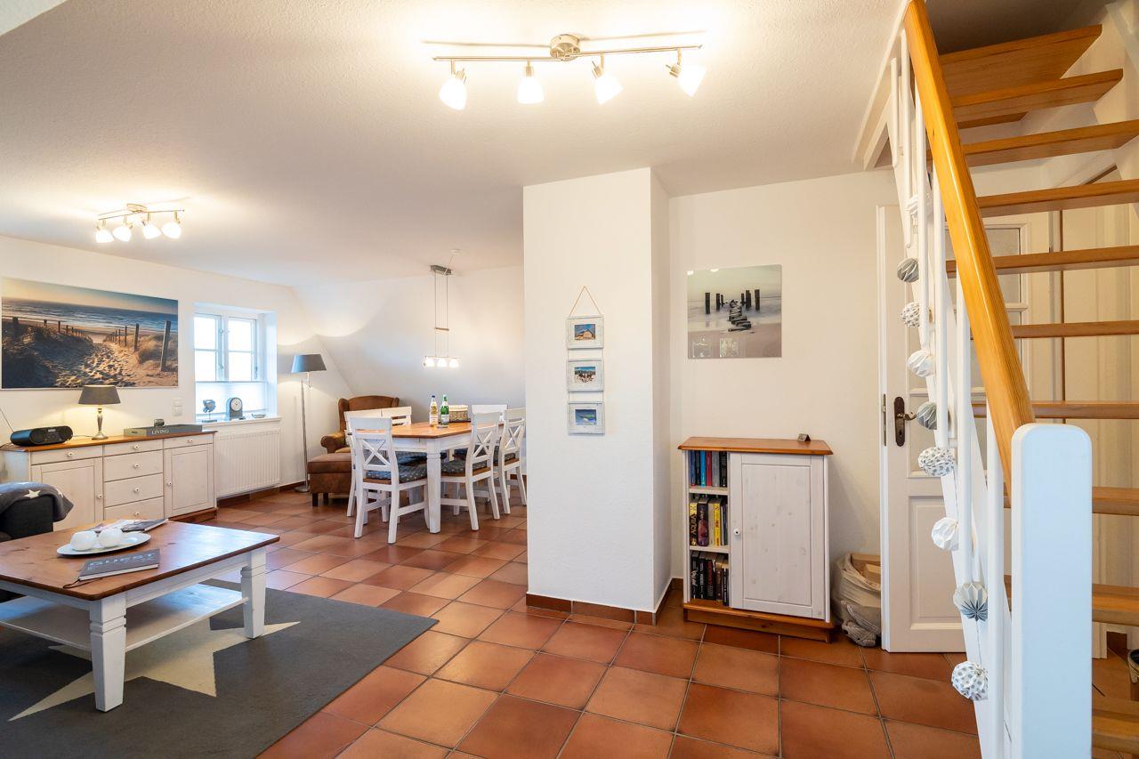 Diese freundliche, helle Ferienwohnung unter Reet liegt zentrumsnah auf einem großen Grundstück in Wyk. Auf der Terrasse können Sie auch in den Abendstunden noch die Sonne genießen. Die 50qm Wohnung liegt im 1. OG und verfügt über zwei Schlafzimmer mit je zwei Einzelbetten, einen offenen Wohn-Essbereich mit angegliederter Küchenzeile, ideal für 4 Personen. Für den perfekten Strandtag steht Ihnen einen Strandkorb im Abschnitt 4, ca. 10 Gehminuten von der Wohnung entfernt, zur Verfügung.
