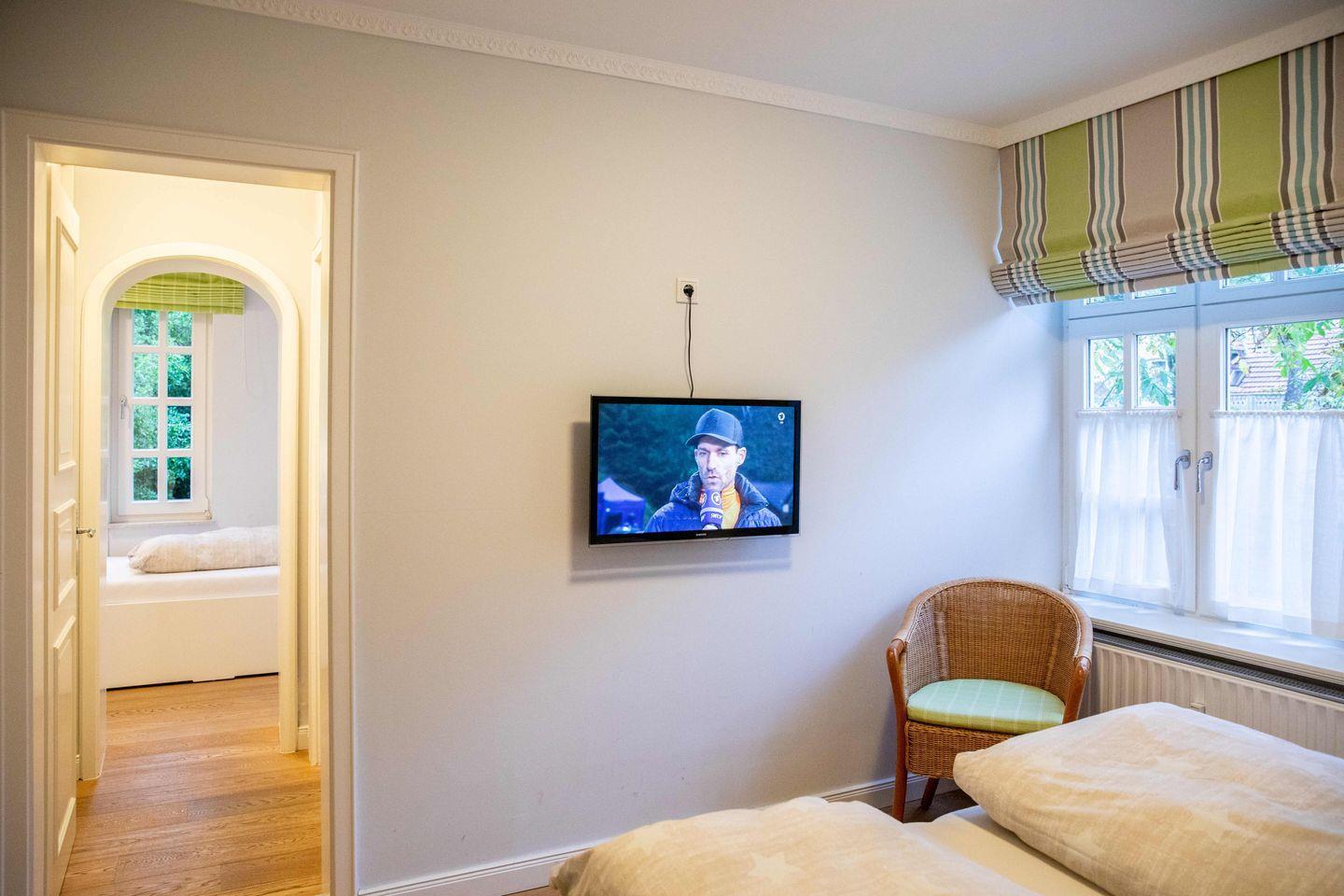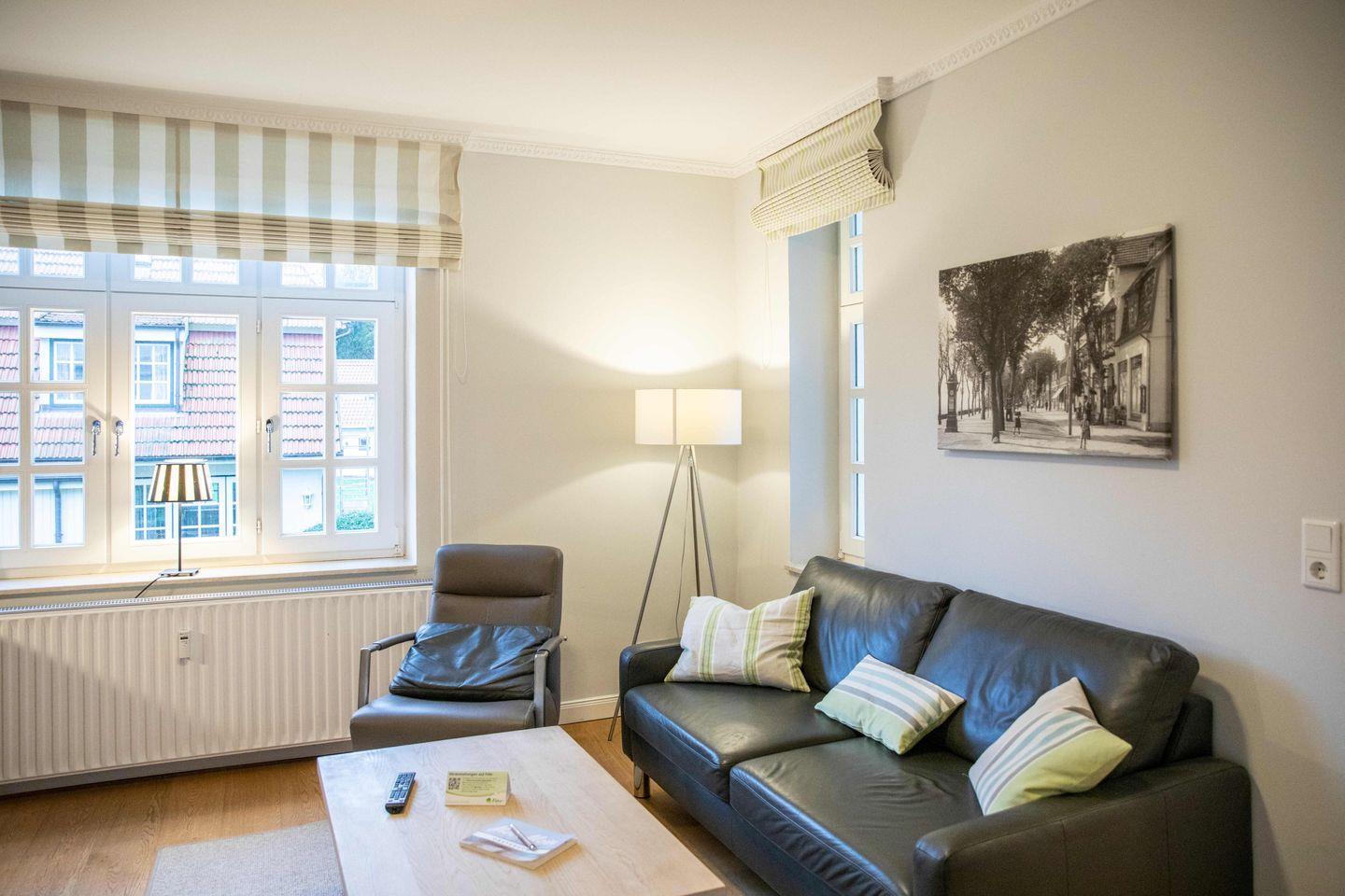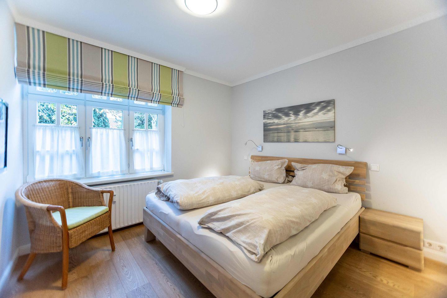 Moderne 3-Zimmer-Wohnung in der schönen Villa Friedericia, einer Jugendstilvilla auf einem ca.1200qm großen Grundstück. Das Objekt liegt im ruhigen Stadtbereich, und der Strand sowie die Promenade sind nur ein paar Meter entfernt. Hier finden Sie auf 54 qm Platz für bis zu 4 Personen. Ein Schlafzimmer mit Doppelbett, ein Schlafzimmer mit einem Einzelbett und einem Bett für Kinder bis zu 15 Jahren stehen für Sie bereit. Die Wohnung ist zusätzlich mit einer Küchenzeile und einem Essbereich ausgestattet. Die Küche ist mit einem Backofen, einer Geschirrspülmaschine und einer Mikrowelle versehen worden. Das Wohnzimmer verfügt über einen Flachbildfernseher und eine Stereoanlage.