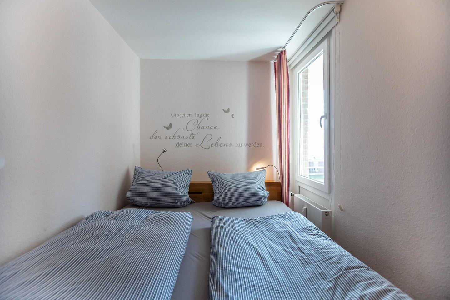 Ein bis vier Personen können hier in gemütlichem und geschmackvollem Ambiente einen erholsamen Urlaub verleben. Der vom Wohnzimmer aus zugängliche überdachte Balkon liegt in Südlage. Vom Schlafzimmer aus haben Sie Zugang zum 2. Balkon. Das Schwimmbad (kostenlos) und die Sauna (gegen Gebühr) im Nachbarhaus Uthlande stehen Ihnen zur Verfügung. Für Ihre Entspannung und den perfekten Strandtag bieten wir Ihnen einen Strandkorb inklusive Strandlaken am Wyker Strand (Abschnitt 28), nur wenige Gehminuten von der Wohnung entfernt.