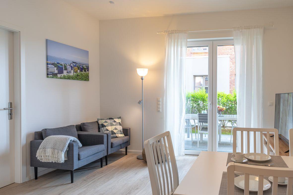 Moderne Ferienwohnung Bahne am Südstrand von Wyk auf Föhr mit Terrasse und kurzer Strandnähe für erholsame Urlaubstage.