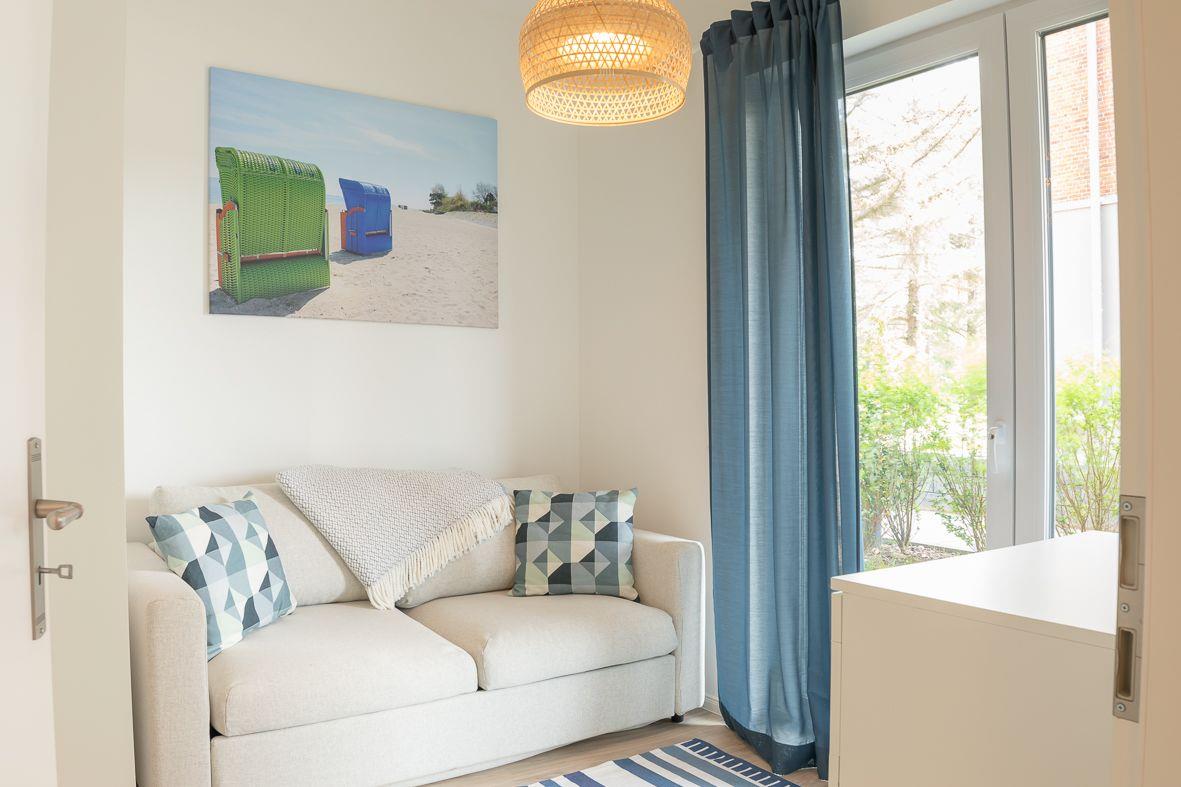 Die helle Ferienwohnung Bahne befindet sich ebenerdig in einem modernen Gebäudekomplex auf einem 1,03h großen, grünen Gelände und lädt zu erholsamen Urlauben ein – perfekt für Paare oder kleine Familien. Sie ist liebevoll skandinavisch eingerichtet und bietet auf 53 m² Platz für bis zu 4 Personen plus Baby. Kurze Wege zum Strand, zur Promenade und zu Restaurants machen sie zur idealen Basis für entspannte Tage. Die gemütliche Terrasse mit kleinem Garten ist schön von einer Hecke eingefriedet.