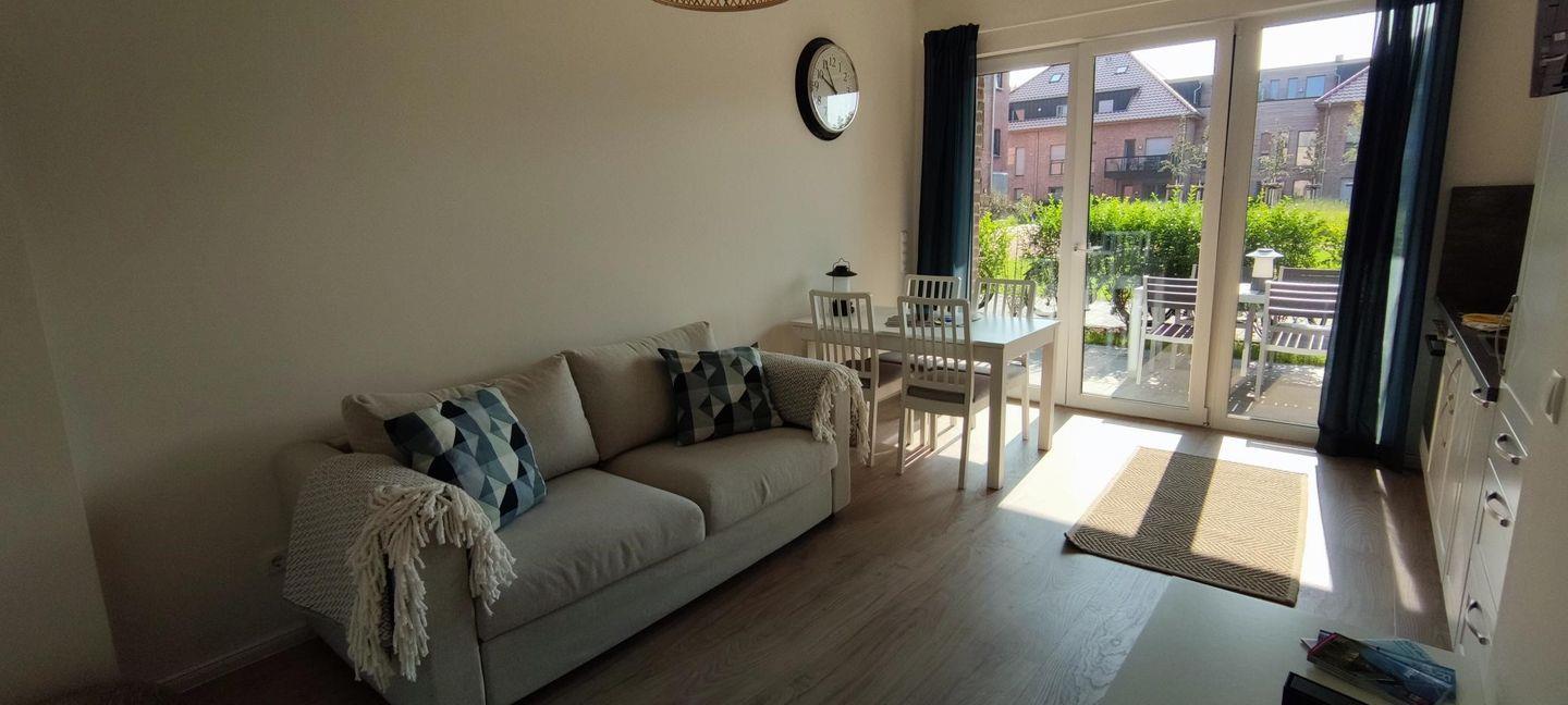 Die helle Ferienwohnung Elso befindet sich ebenerdig in einem modernen Gebäudekomplex auf einem 1,03h großen, grünen Gelände und lädt zu erholsamen Urlauben ein – perfekt für Paare oder kleine Familien. Sie ist liebevoll skandinavisch eingerichtet und bietet auf 53 m² Platz für bis zu 4 Pers. plus Baby. Kurze Wege zum Strand, zur Promenade und zu Restaurants machen sie zur idealen Basis für entspannte Tage. Die gemütliche Terrasse mit kleinem Garten ist schön von einer Hecke eingefriedet.