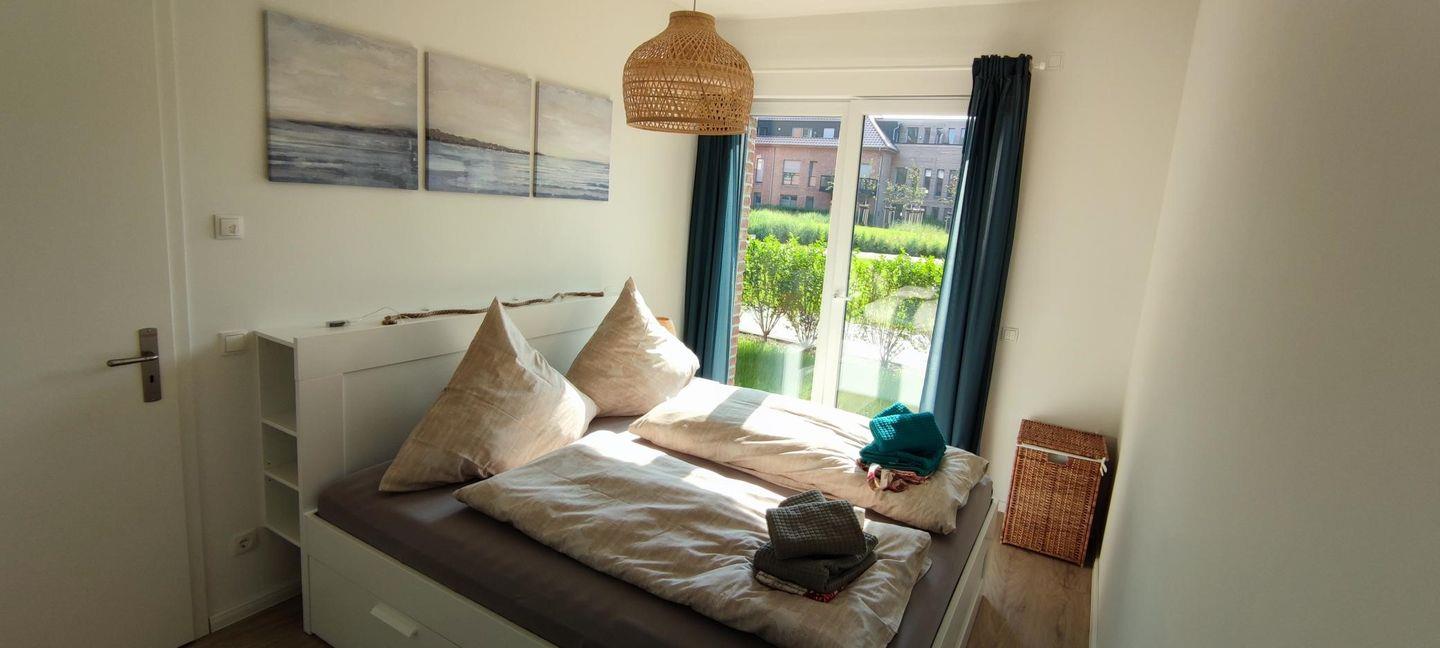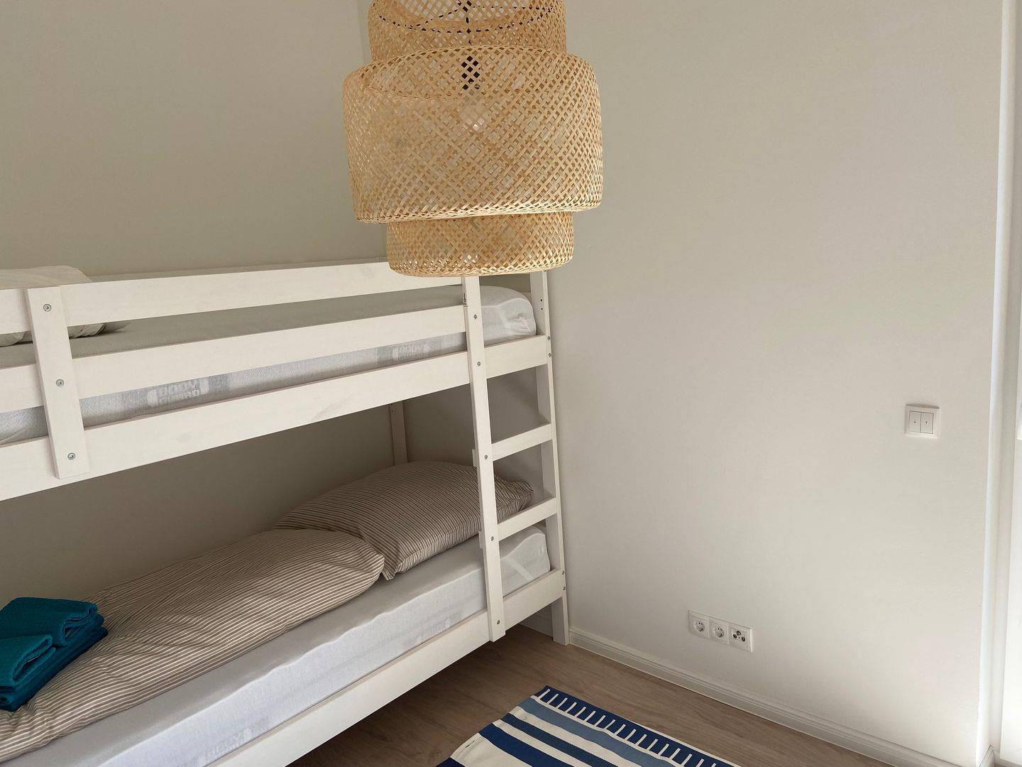 In den beiden Schlafzimmern finden bis zu 4 Personen bequem Platz. Das eine Schlafzimmer ist mit einem gemütlichen Doppelbett (180*200) ausgestattet, während das andere Schlafzimmer über ein Etagenbett (2*90*200) verfügt. Das Duschbad ist hell und modern gestaltet und verfügt über eine ebenerdige Dusche, die für barrierefreies Duschen sorgt.