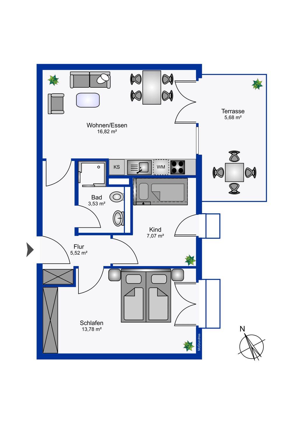 Wohnfläche 52 m²