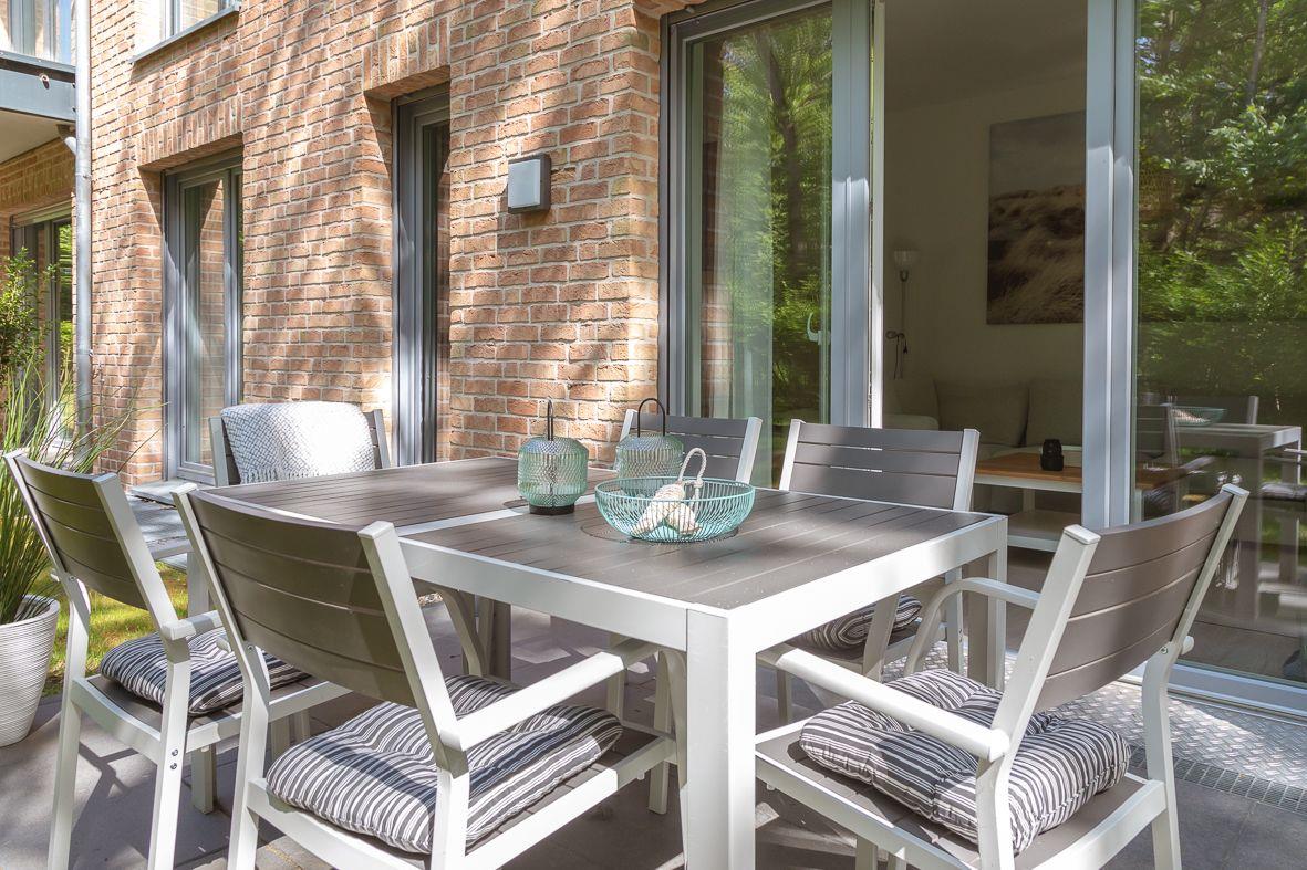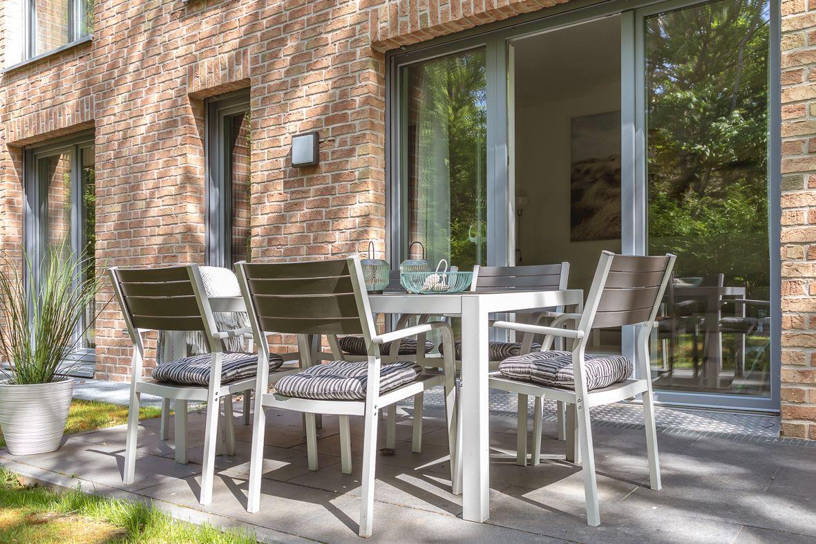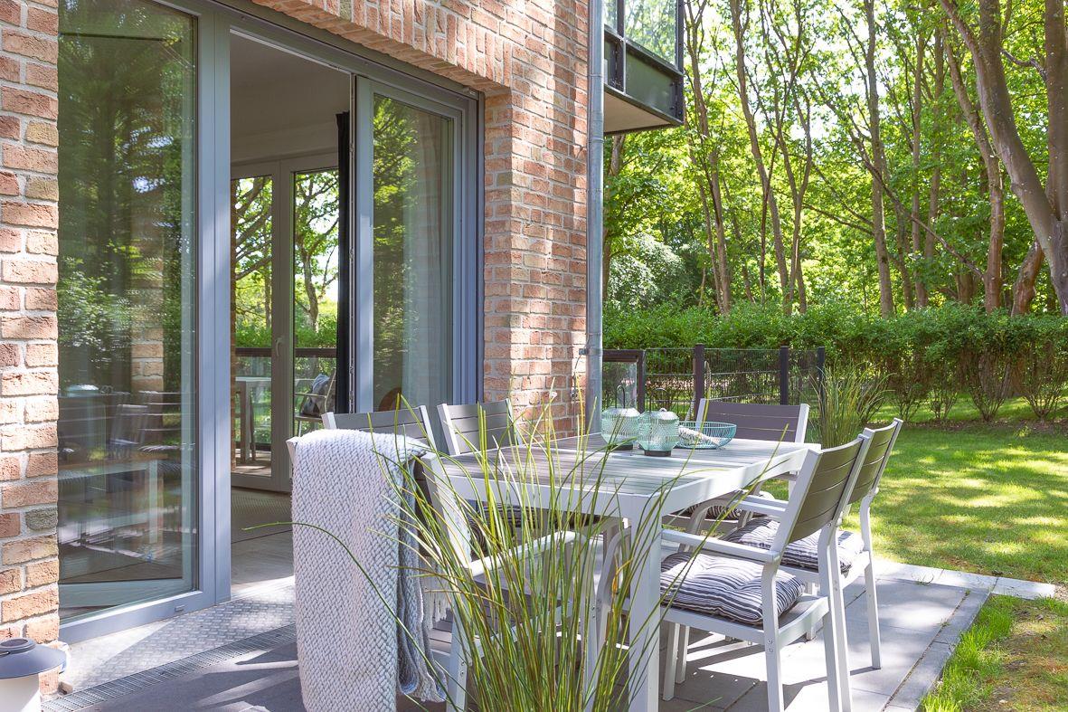 Moderne, helle Ferienwohnung Enno mit Terrasse und Garten, nur 350 m vom Südstrand in Wyk auf Föhr entfernt.