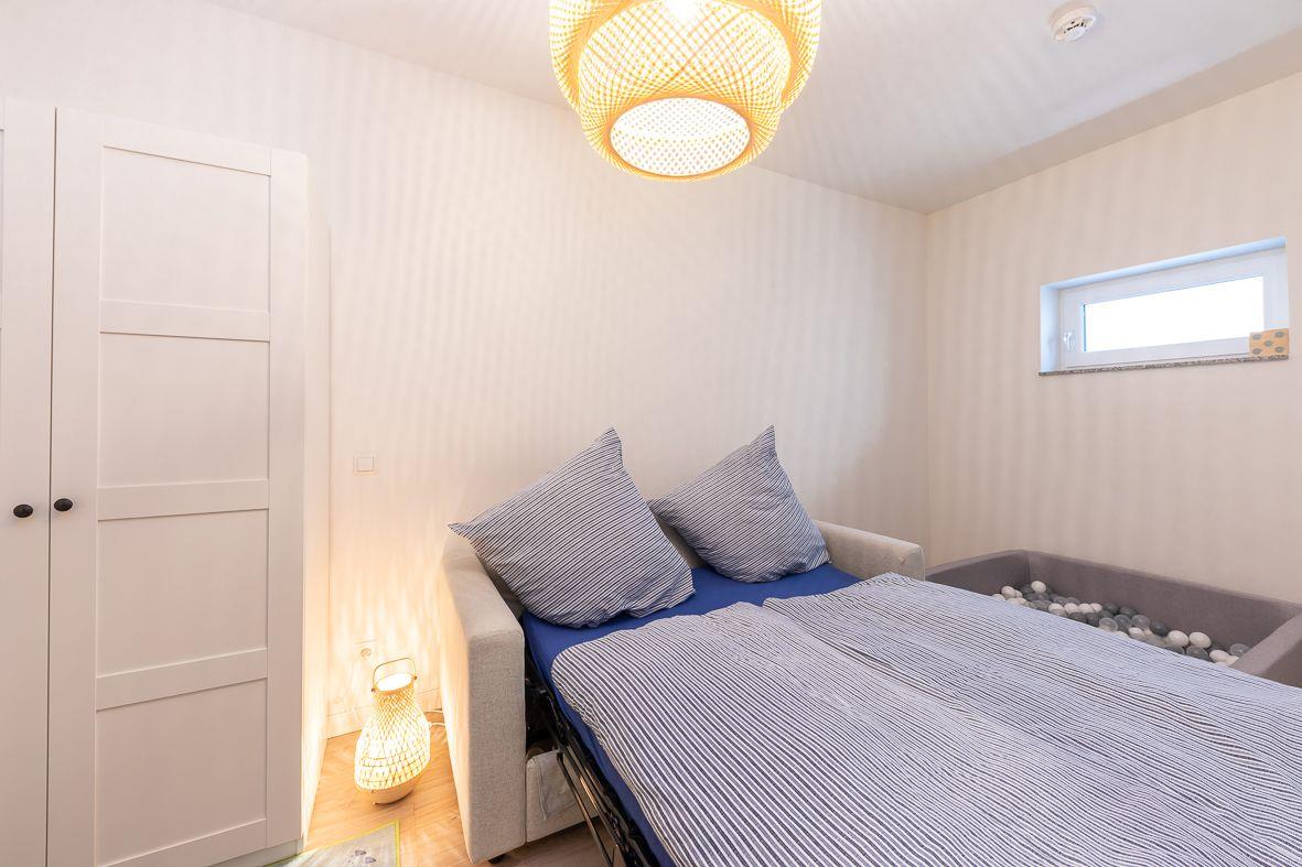 Über eine Treppe gelangen Sie ins Souterrain, wo sich die beiden Schlafzimmer mit jeweils einem bequemen Doppelbett (180*200), das Spielzimmer mit einer Ausziehcouch (140*200) und das moderne Duschbad befinden. Die Wohnung ist ideal für Familien oder Paare, die viel Platz und Privatsphäre suchen.
