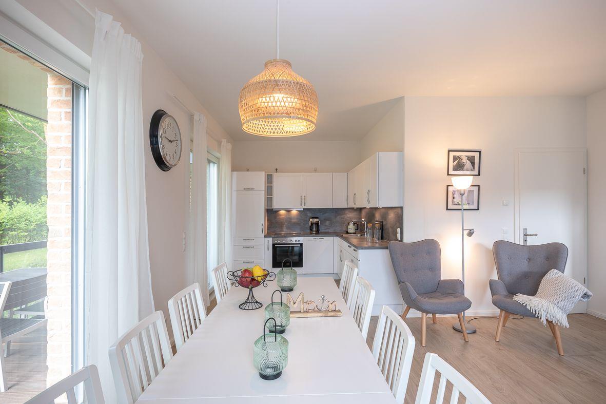 Die helle Ferienwohnung Erck befindet sich ebenerdig in einem modernen Gebäudekomplex auf einem 1,03h großen, grünen Gelände und lädt zu erholsamen Urlauben ein – perfekt für Paare, Freunde oder die Familie. Sie ist liebevoll skandinavisch eingerichtet und bietet auf 119 m² reichlich Platz für bis zu 6 Pers. Kurze Wege zum Strand, zur Promenade und zu Restaurants machen sie zur idealen Basis für entspannte Tage. Die gemütlichen Terrasse mit kleinem Garten sind schön von einer Hecke eingefriedet.