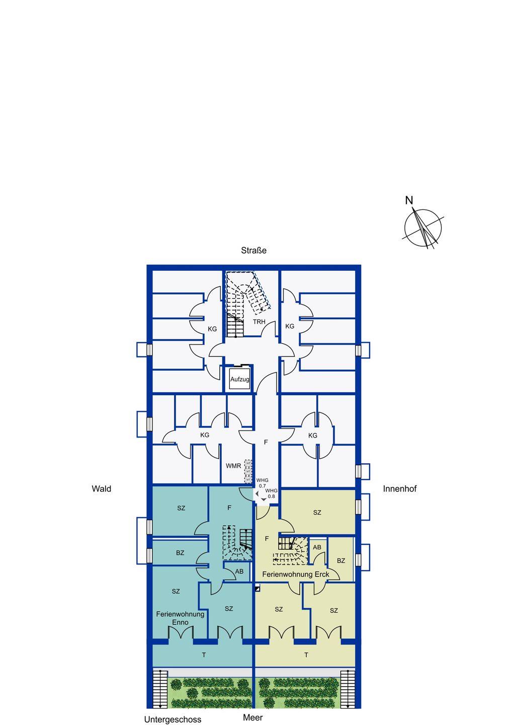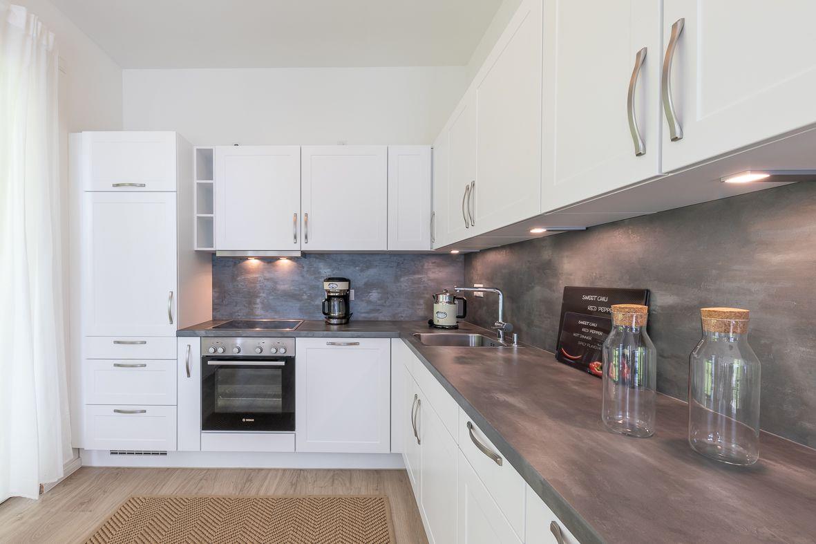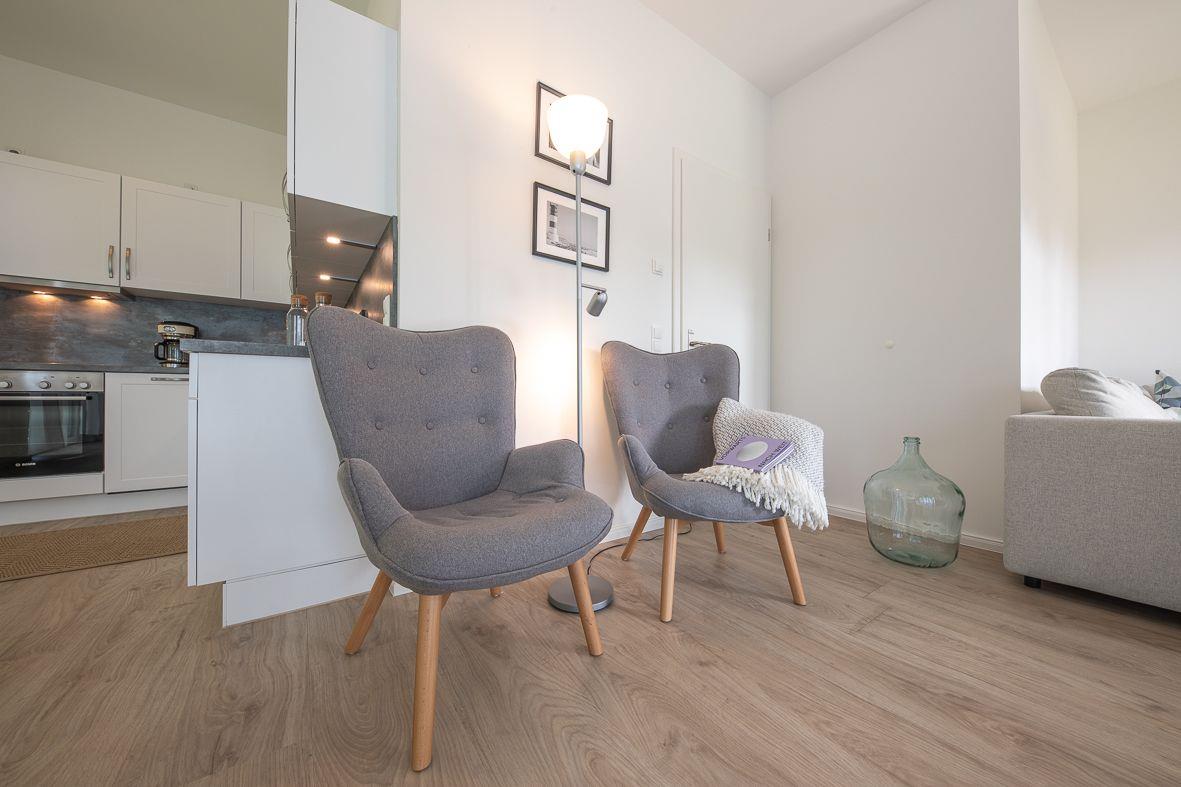 Die Wohnung erstreckt sich über zwei Etagen (Erdgeschoss und Souterrain) und bietet auf insgesamt 120 m² genügend Platz für bis zu 6 Personen und 3 Babys. Der Eingang im westlich gelegenen Neubau führt Sie direkt in die Wohnung, die mit vier gemütlichen Zimmern zum Entspannen einlädt. Im Erdgeschoss befindet sich ein Gäste-WC, eine modern ausgestattete, offene Küche mit Ceranfeld, Backofen und Kaffeemaschine sowie der angrenzende Wohn-/ Essbereich, der den skandinavischen Stil mit der Moderne verbindet. Hier können Sie es sich auf der gemütlichen Couch oder am Esstisch bequem machen und den Flachbildfernseher und den Internetzugang nutzen.