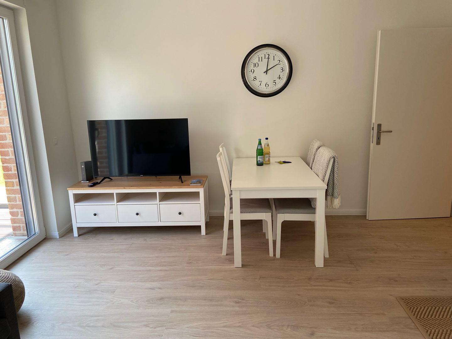Die Küche ist mit hochwertigen Geräten wie Ceranfeld, Backofen und Kaffeemaschine ausgestattet, so dass Sie sich kulinarisch austoben können. Der Wohn- und Essbereich ist liebevoll eingerichtet und bietet Platz für gemütliche Stunden mit der Familie oder Freunden. Hier finden Sie auch einen Flachbildfernseher und einen Internetzugang vor.