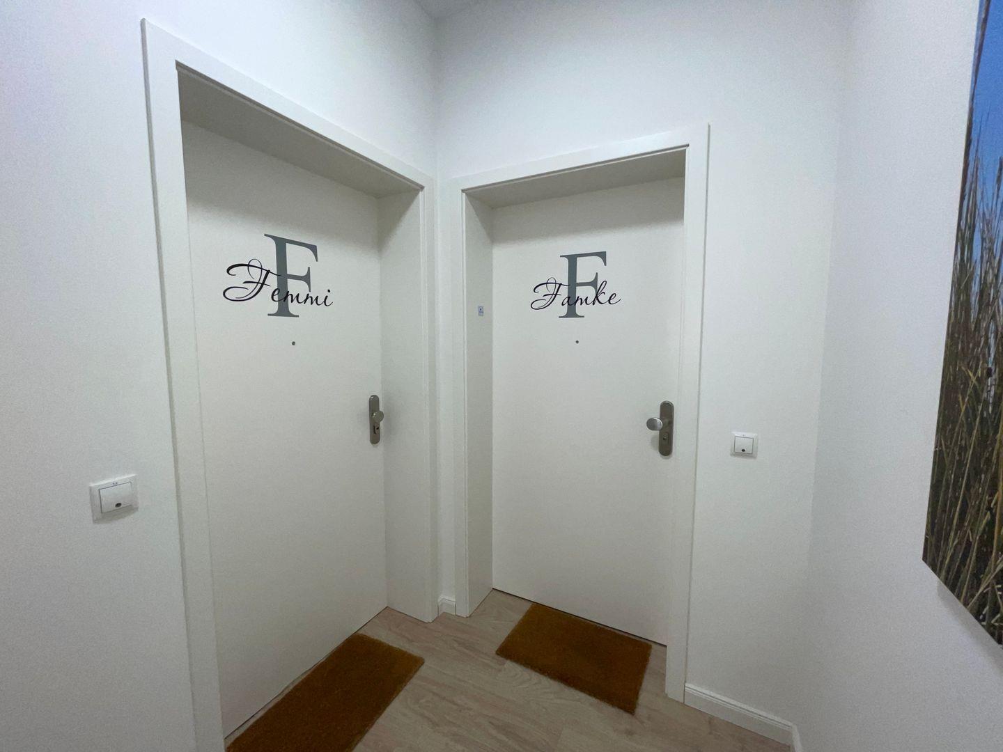 In der Ferienwohnung Famke haben Sie außerdem die Möglichkeit, im Gästezimmer fernzusehen, dank des zweiten Flachbildfernsehers. Die beiden Schlafzimmer bieten Platz für bis zu 4 Personen und ein Baby. Das eine Schlafzimmer verfügt über ein Doppelbett (180*200) und das andere über eine Ausziehcouch (140*200). Das Duschbad ist mit einer ebenerdigen Dusche versehen und rundet das Angebot ab.