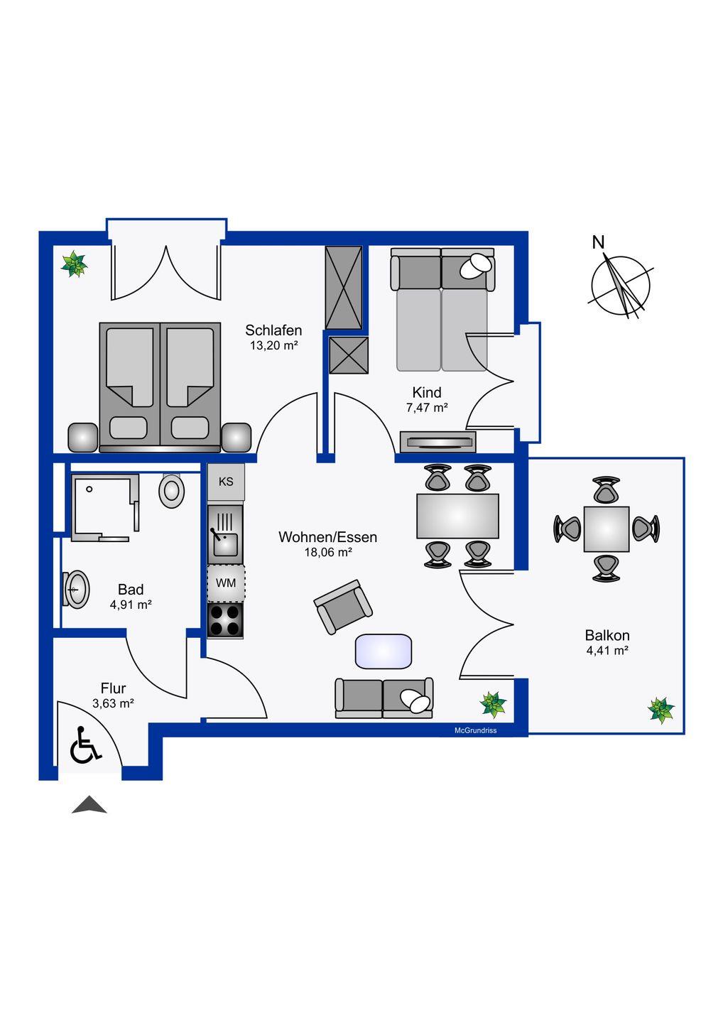 Wohnfläche 52 m²
