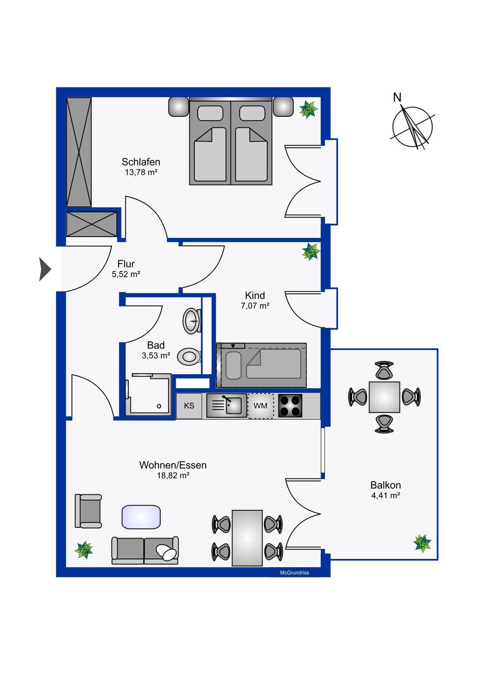 Wohnfläche 51 m²