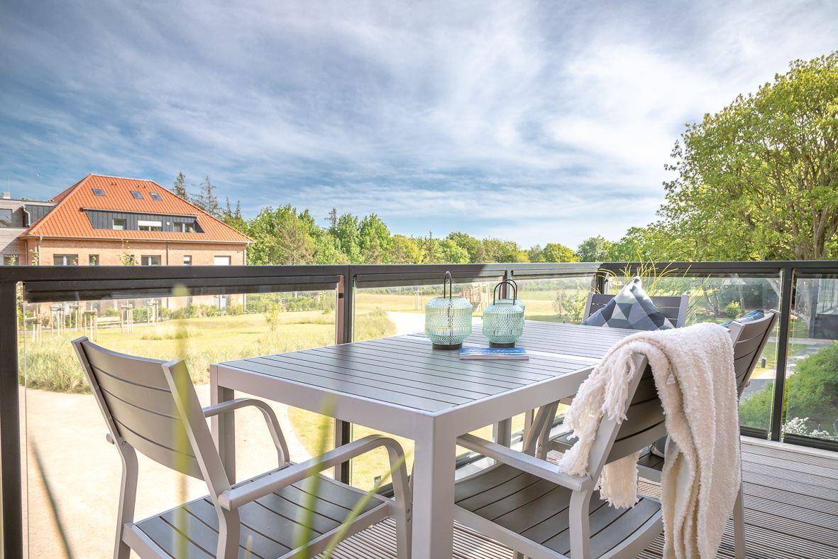Vom Wohn-Ess-Küchenbereich aus haben Sie Zugang zu Ihrem eigenen Balkon, der nach Osten ausgerichtet ist und perfekt zum Frühstücken in der Morgensonne geeignet ist. Auf dem Gelände selbst gibt es zahlreiche Möglichkeiten, um den Urlaub zu genießen. Ein kurzer Spaziergang führt Sie zum 350 m entfernten Strand mit barrierefreiem Zugang, wo Sie die Sonne und das Meer genießen können. Für Abenteuerlustige ist die Föhrer Kartbahn "Föhrring" in der Nähe und auch der Föhrer Flugplatz ist in unmittelbarer Nähe. Wenn Sie Lust auf einen Spaziergang im Wald haben, müssen Sie nur die Straße überqueren. Der Spielplatz "Piratennest" wartet dort schon auf unsere jüngeren Gäste.