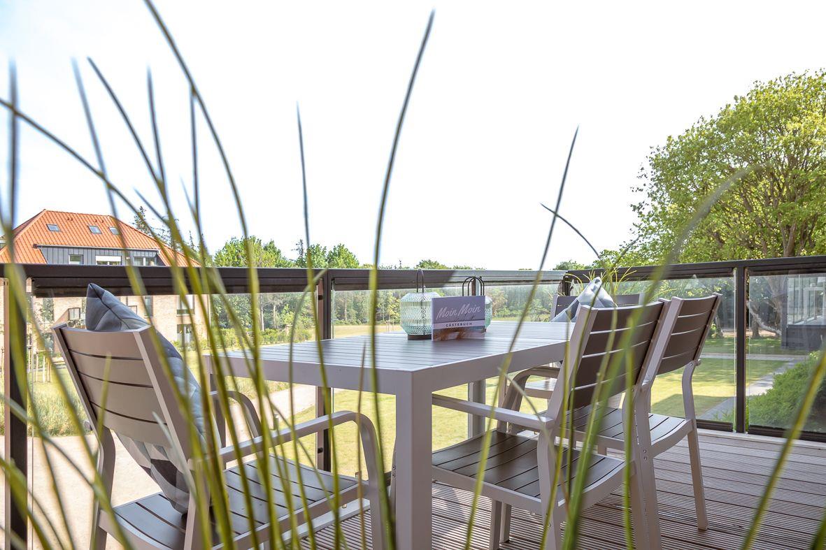 Moderne, barrierearme Ferienwohnung Fieta am Südstrand von Wyk auf Föhr mit Balkon und kurzer Strandnähe.