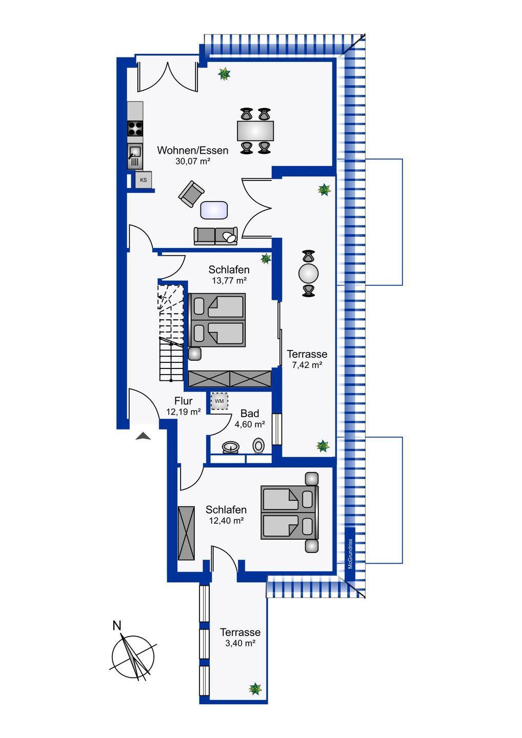 Moderne, helle Ferienwohnung mit Dachterrasse, nahe Südstrand und Promenade in Wyk auf Föhr.
